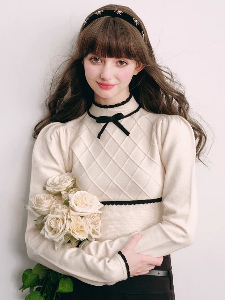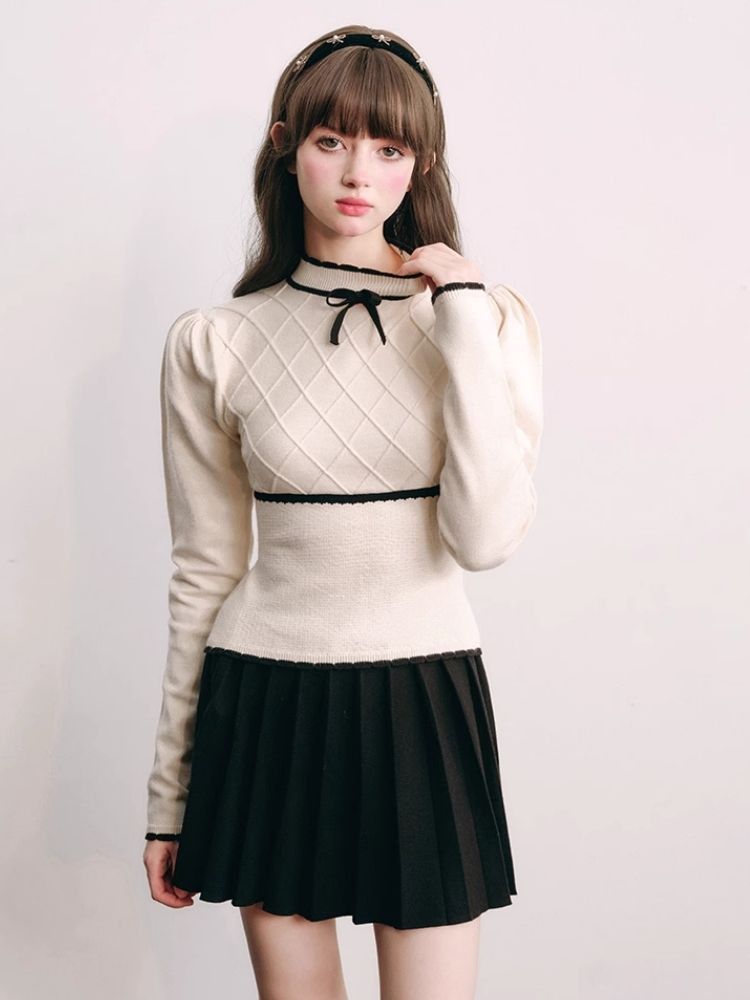French Chambray Sweater Top Knit Bottoms【s0000004445】