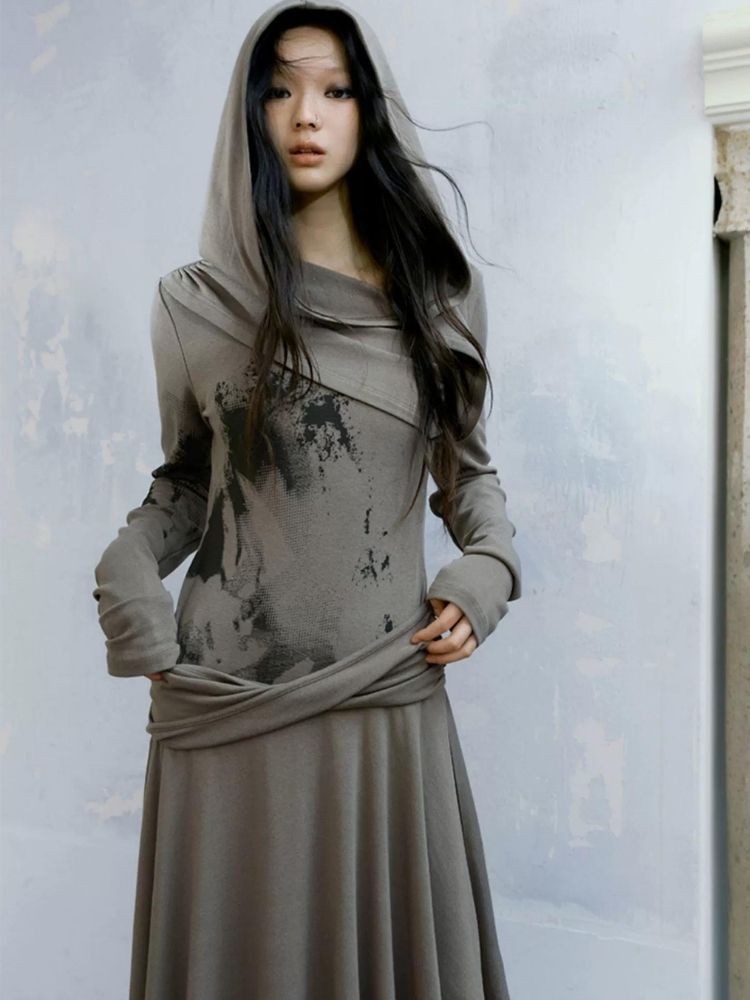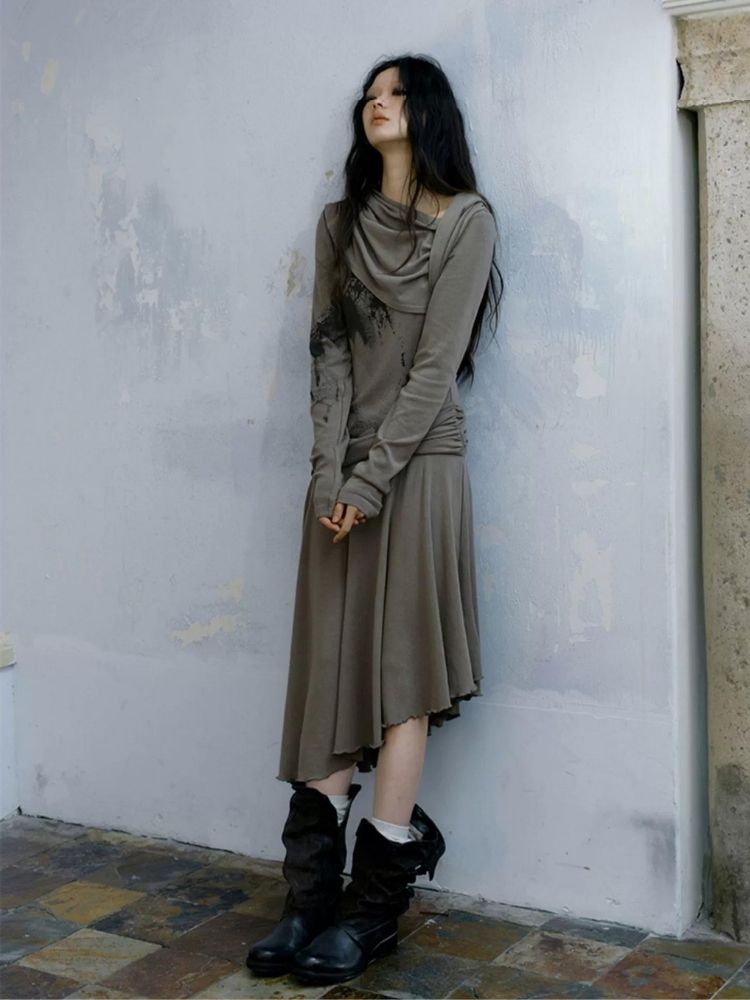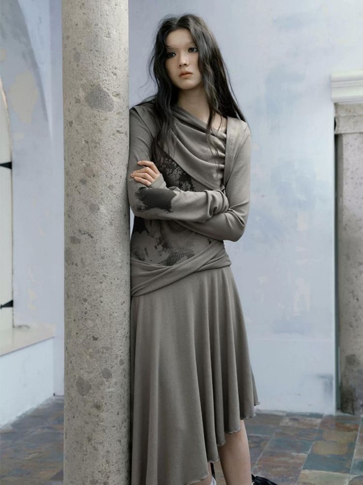 Gray Wandering wind pleated dresses【s0000004520】