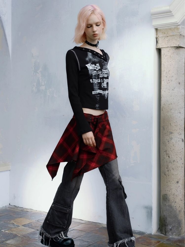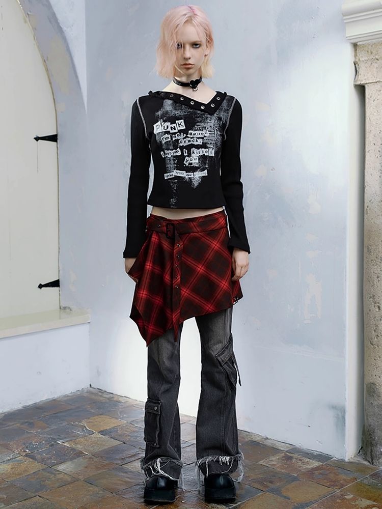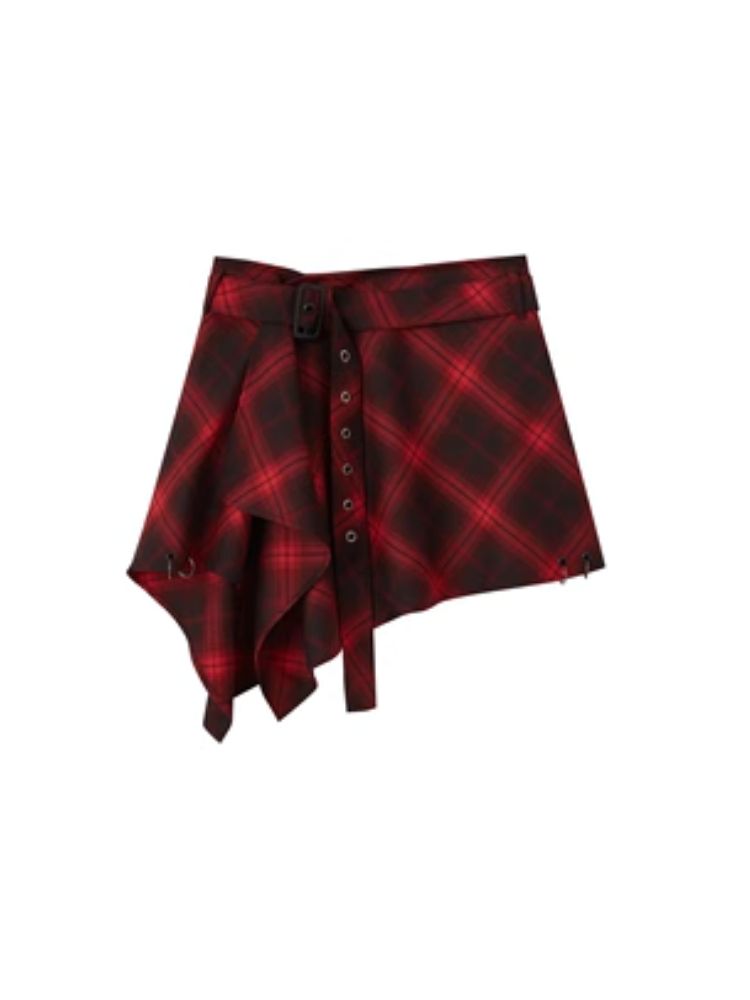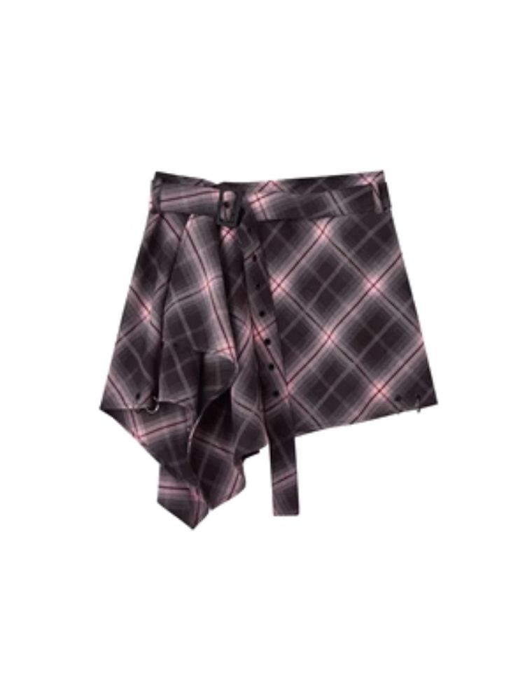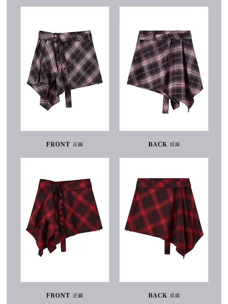 Street punk plaid irregular skirt piece【s0000004523】
