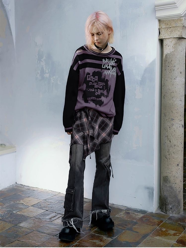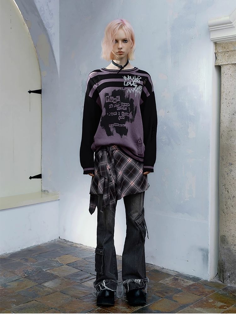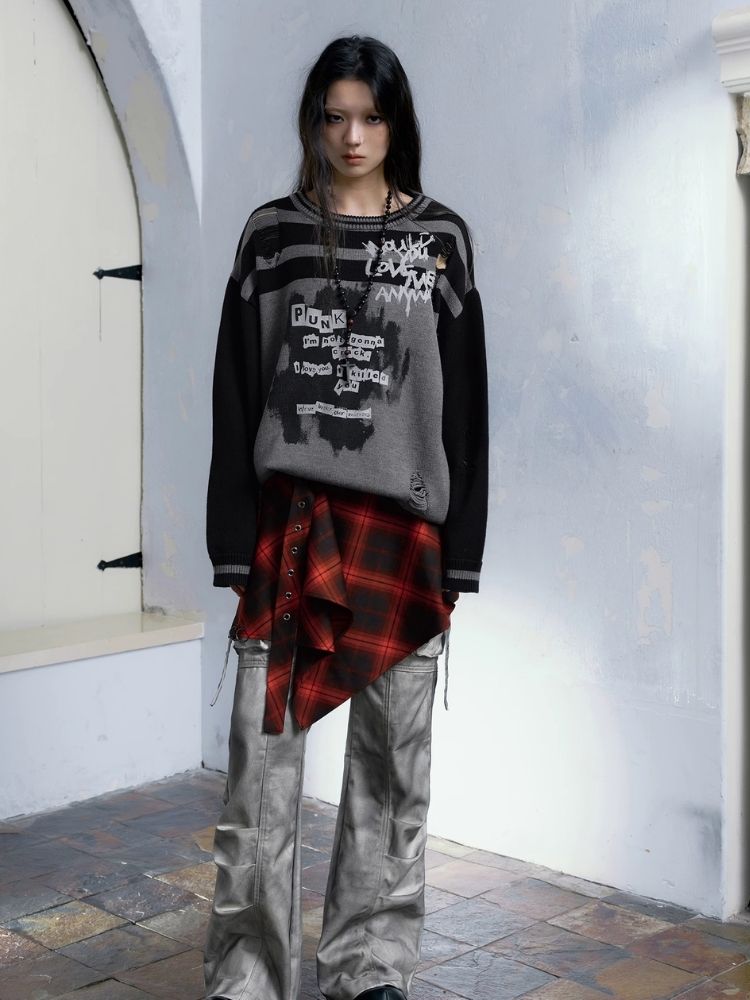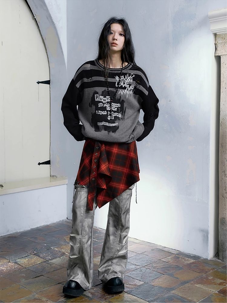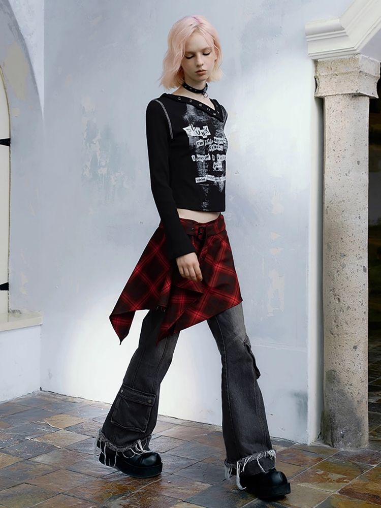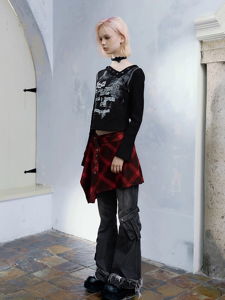 Street punk plaid irregular skirt piece【s0000004523】