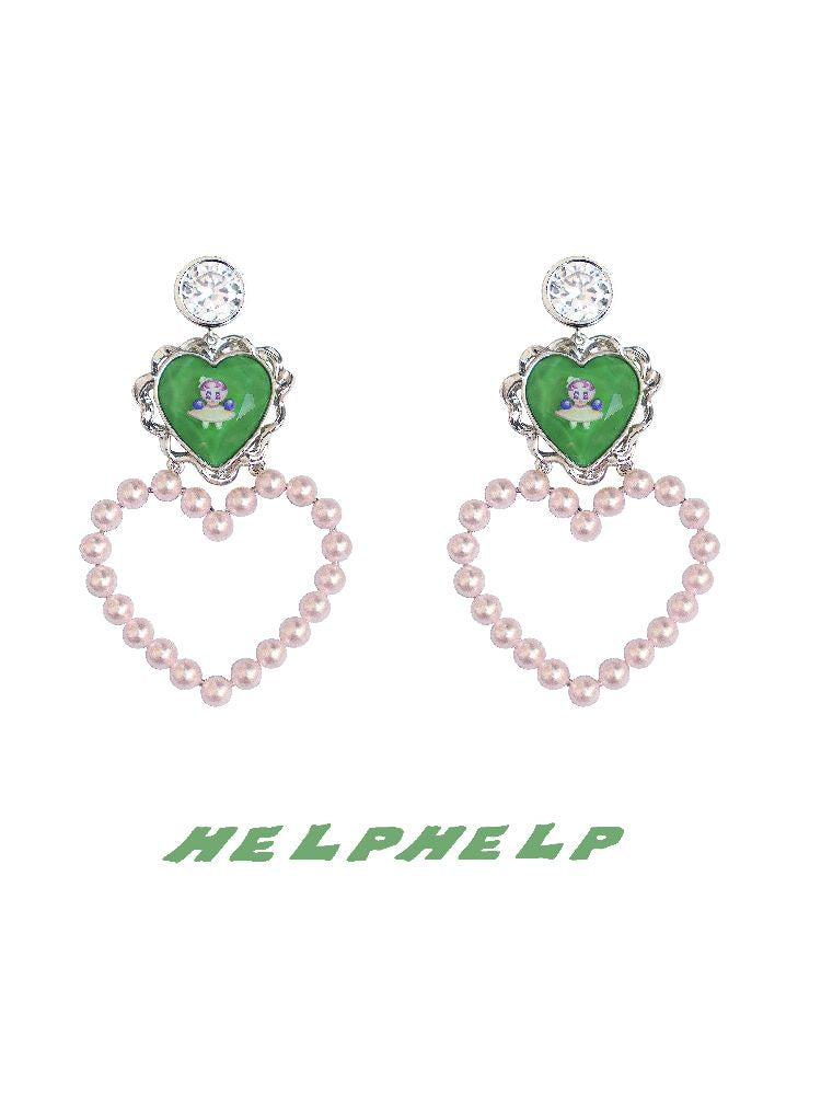 Peach Heart Resin Pearl Zirconia Printed Metal Earrings【s0000004637】