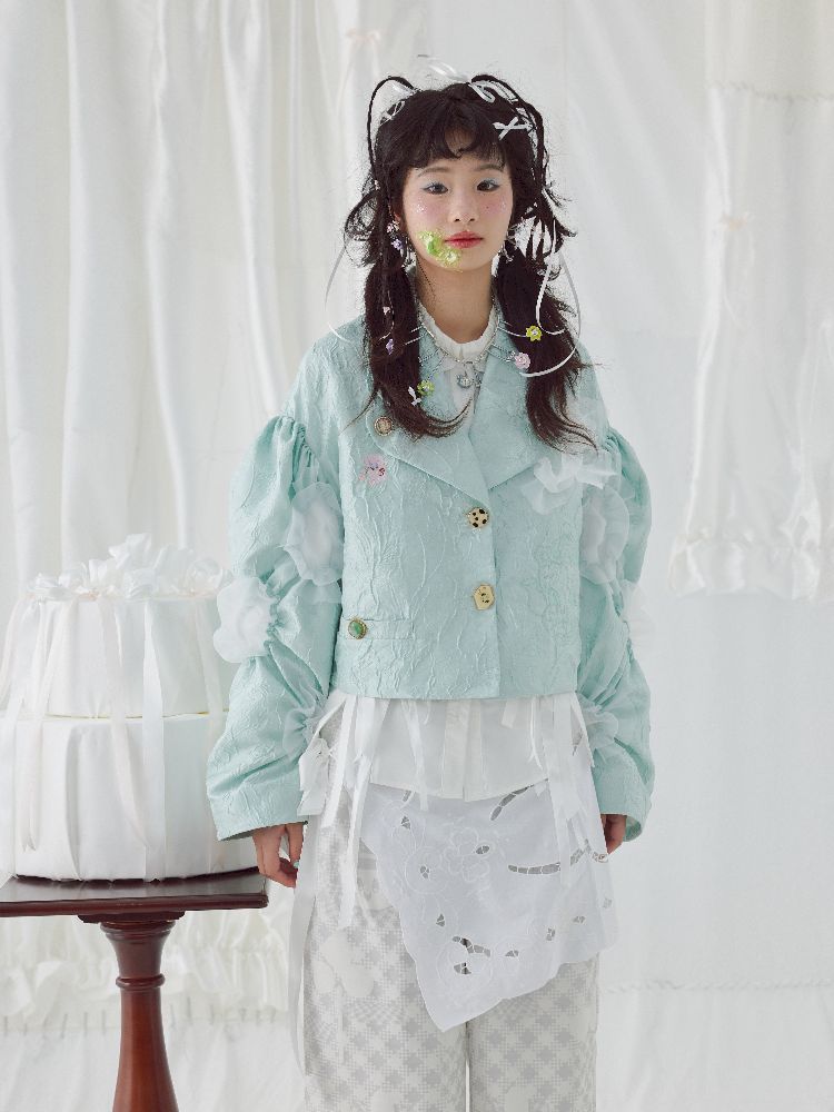 Embroidered jacquard fabric organza short jacket【s0000004638】