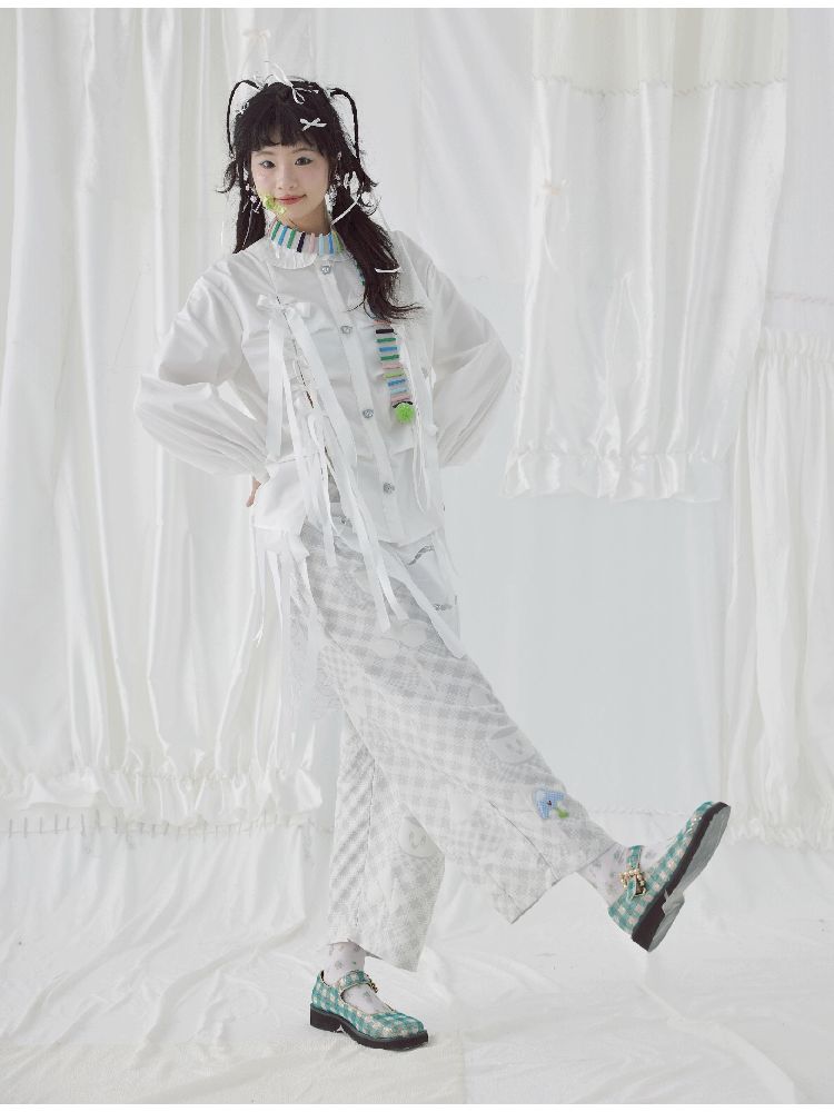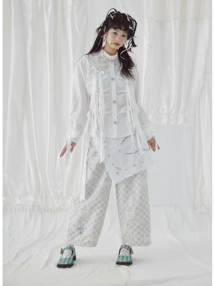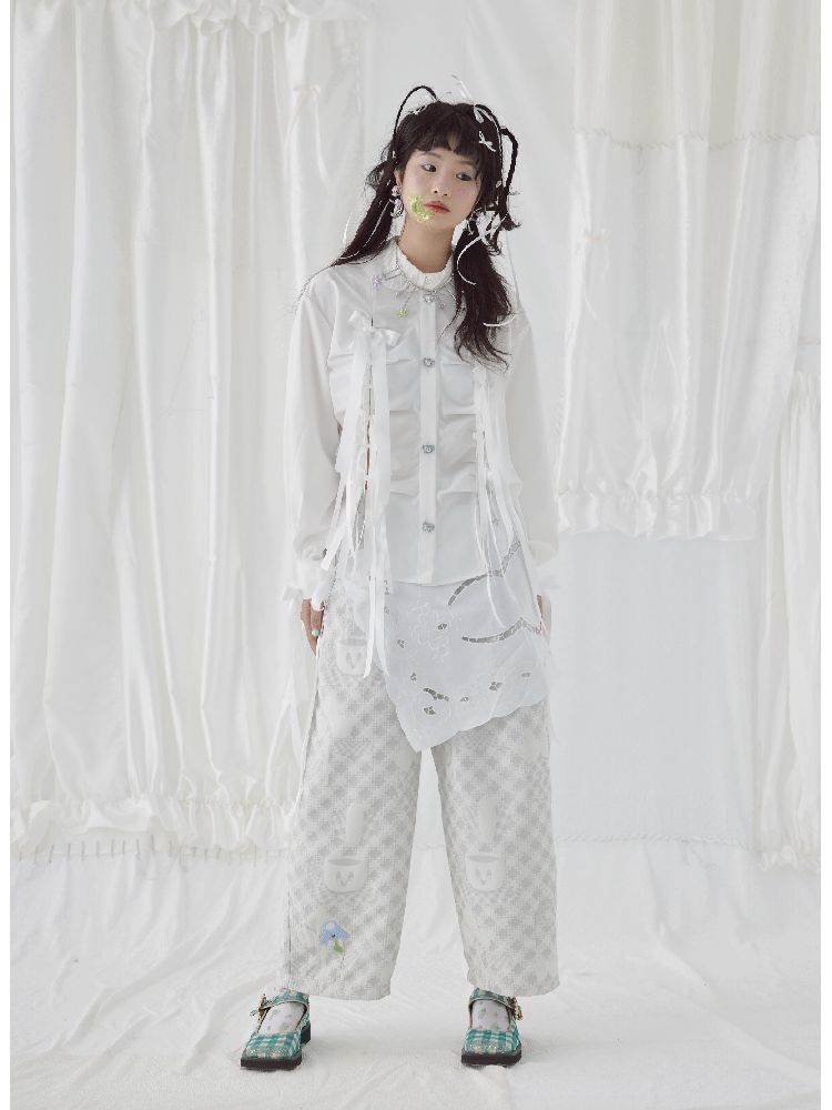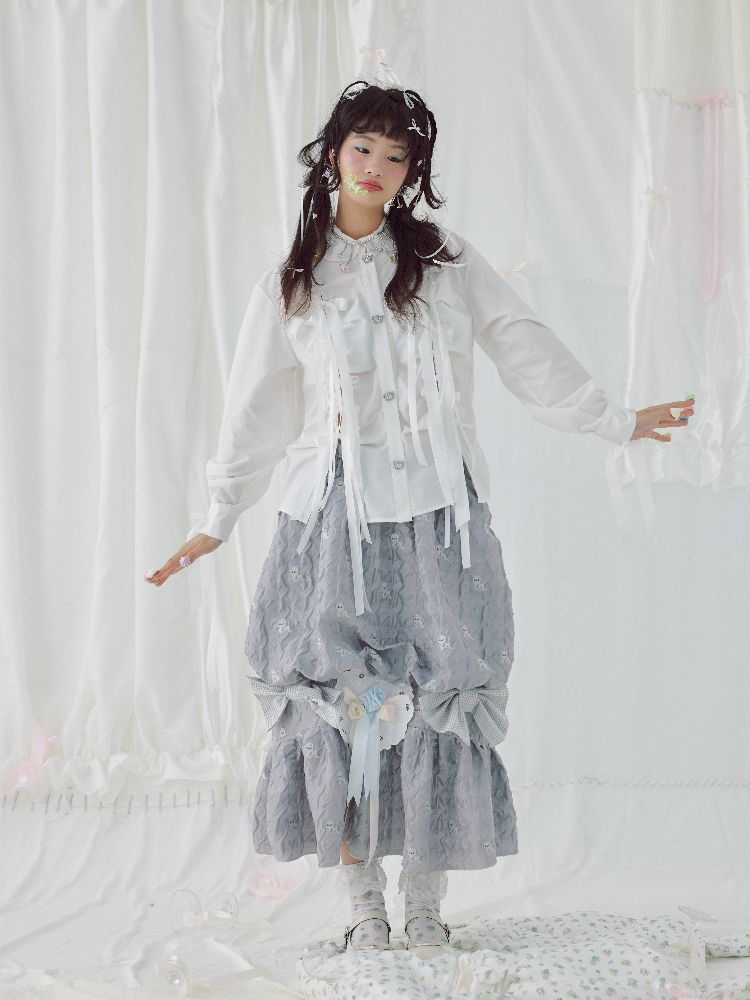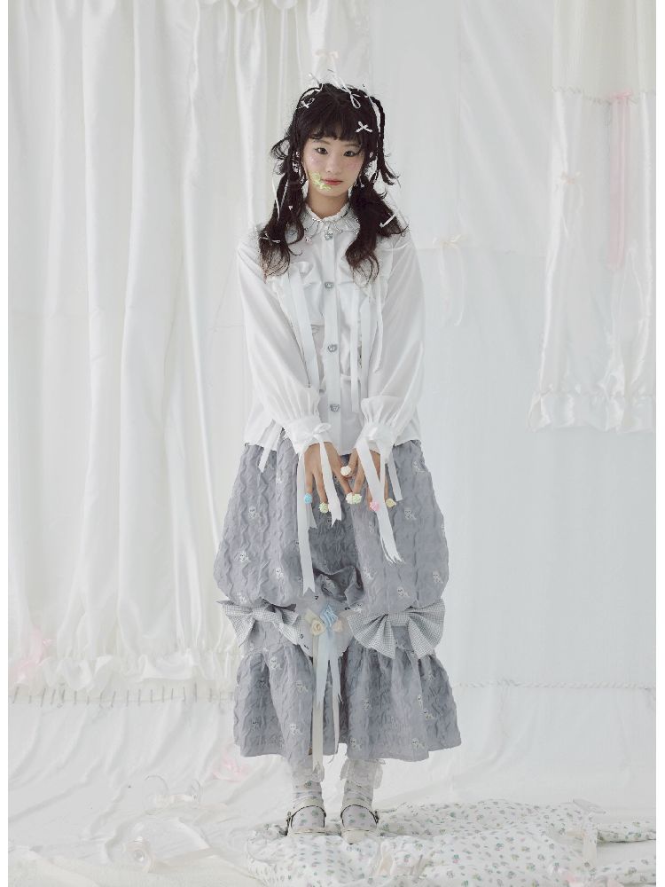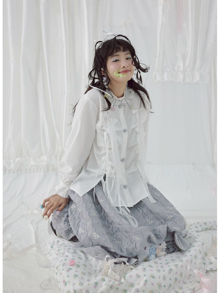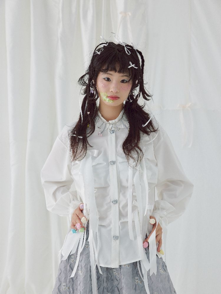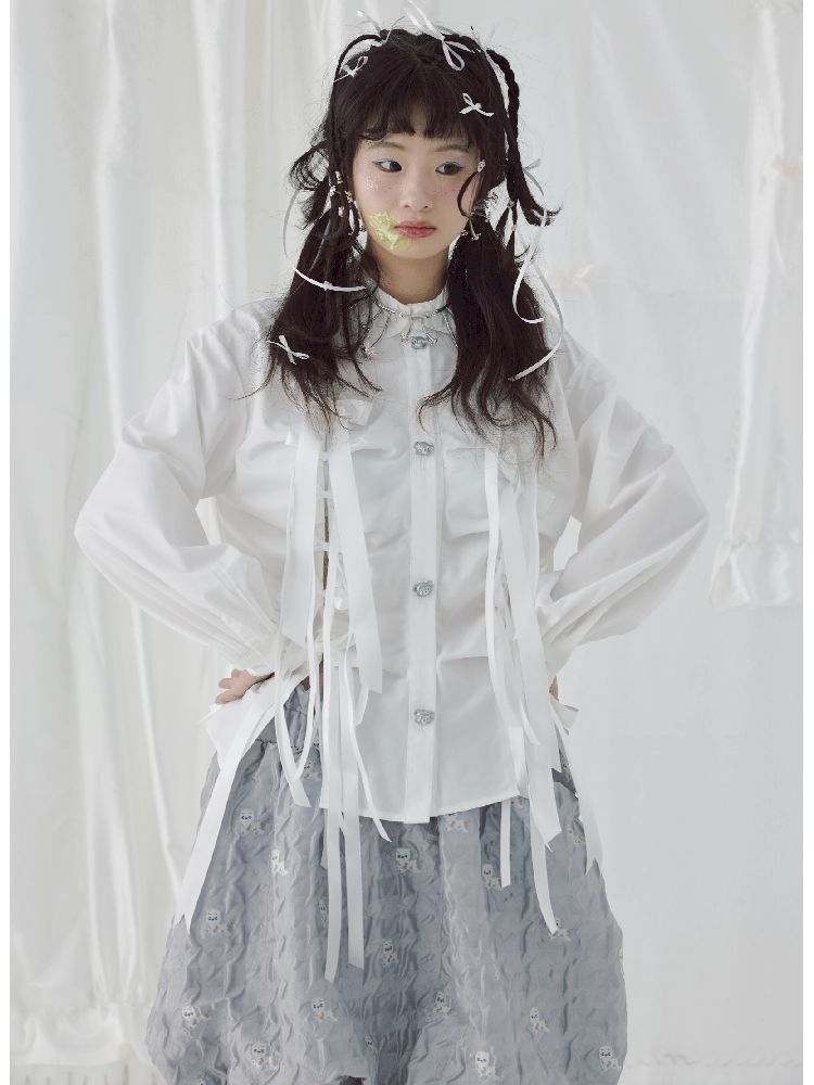 Bow Ribbon Pleated Cute Metal Button Blouse【s0000004650】