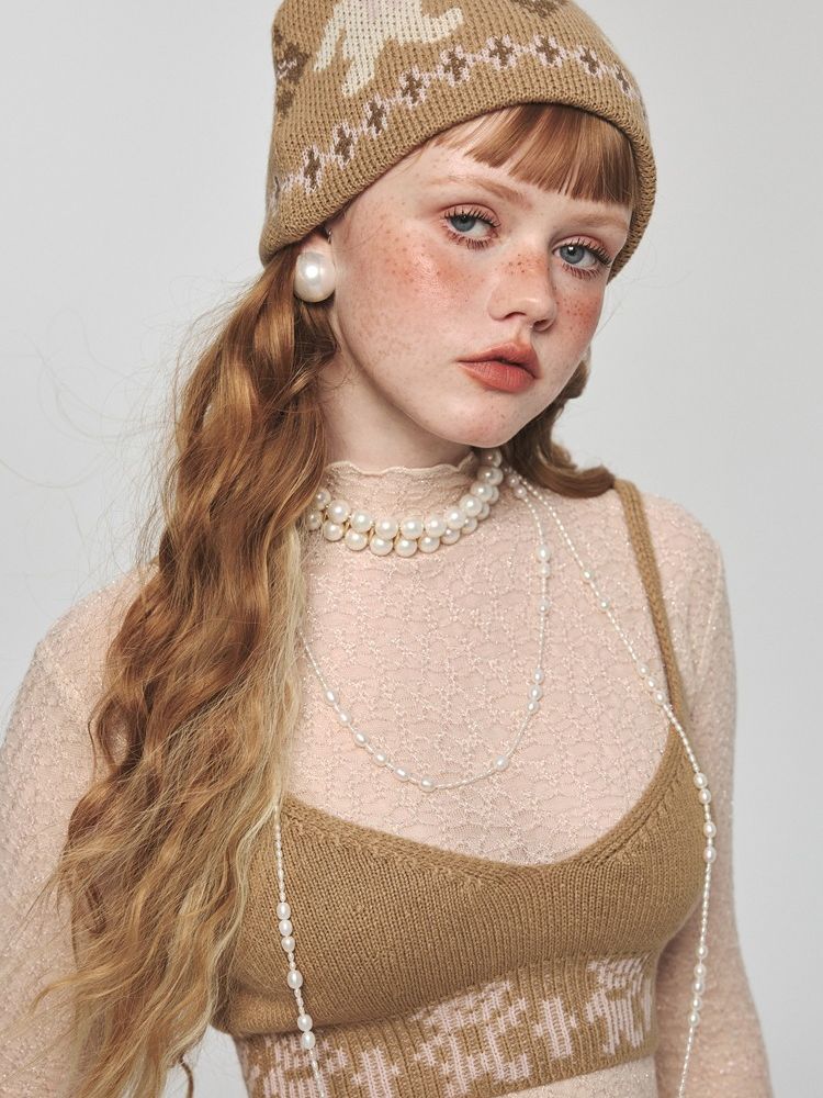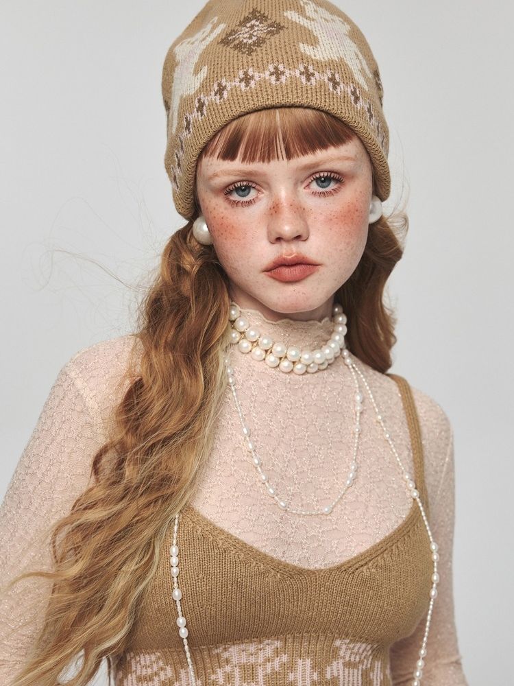 Niche retro jacquard bear knit cap【s0000004736】