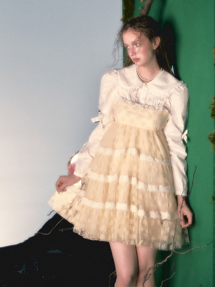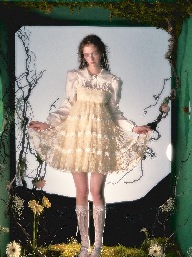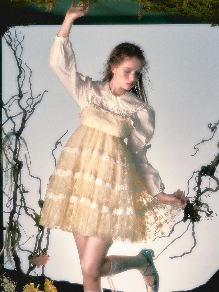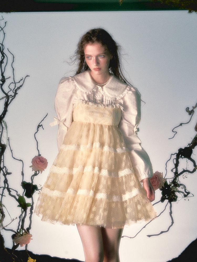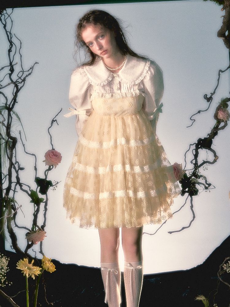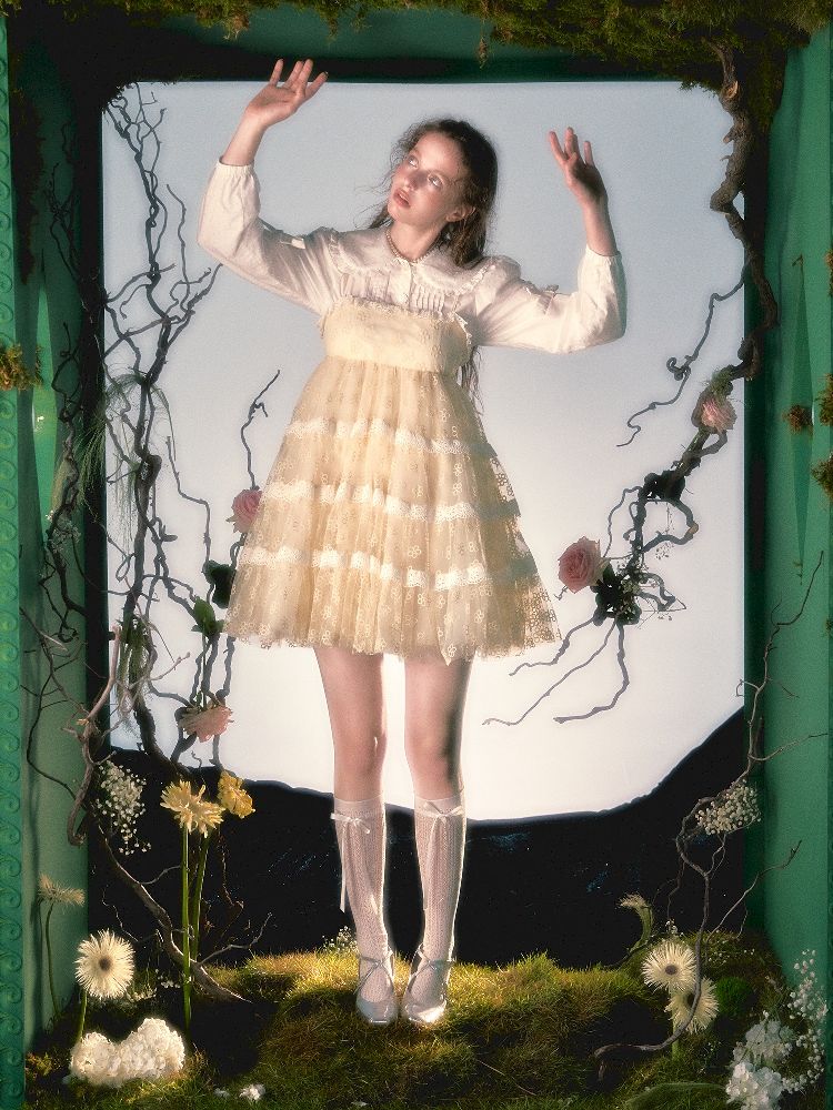 Flocked Floral Mesh Sling Dress【s0000004806】