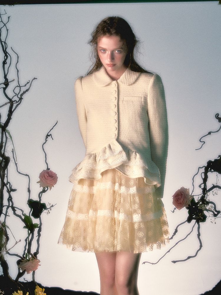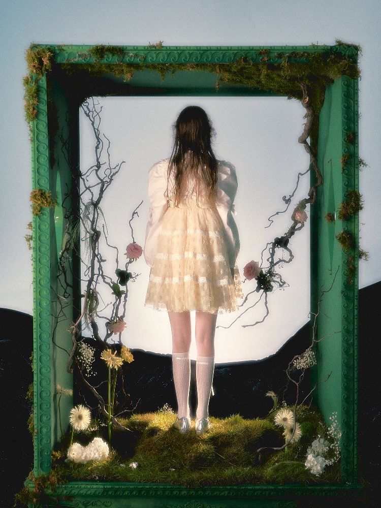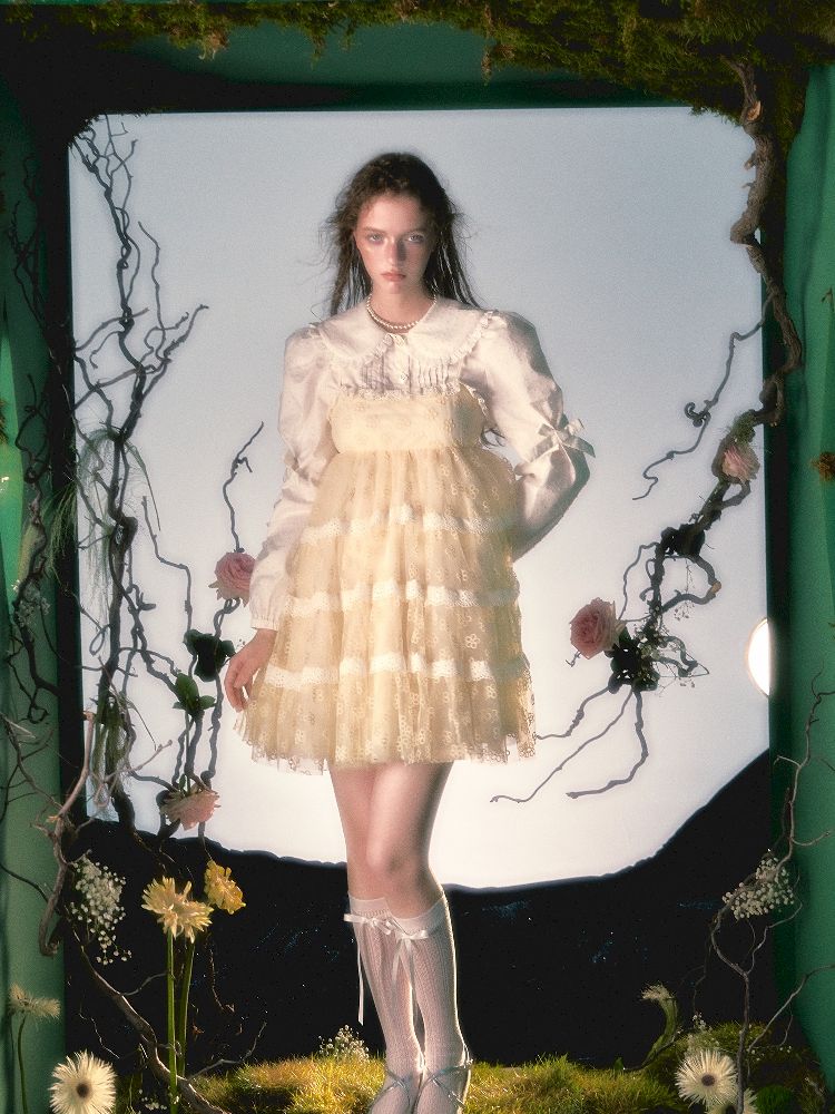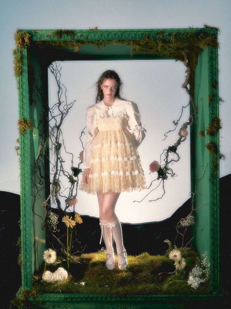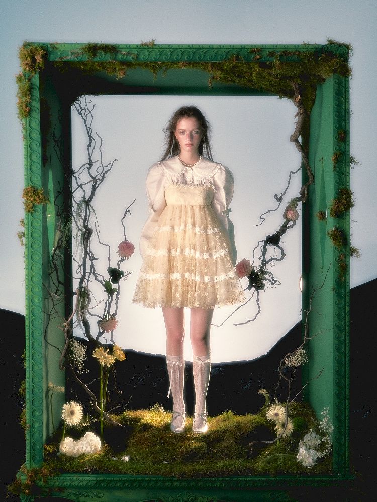 Flocked Floral Mesh Sling Dress【s0000004806】