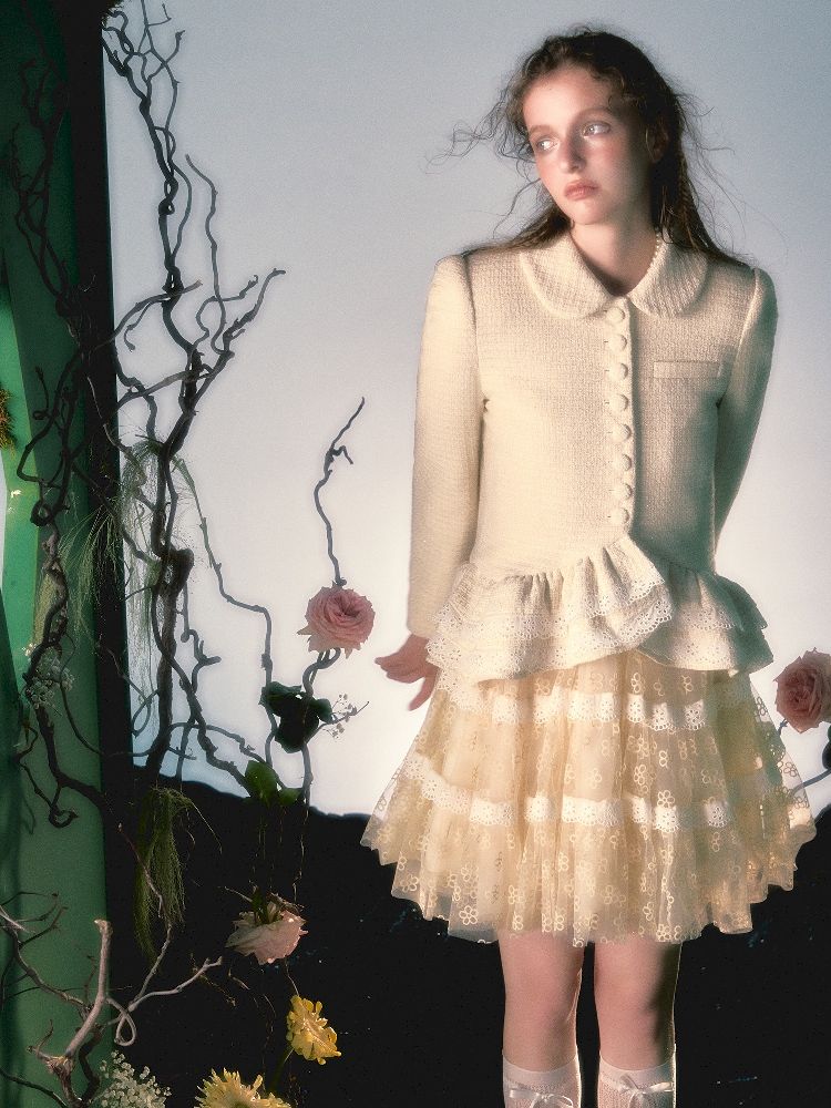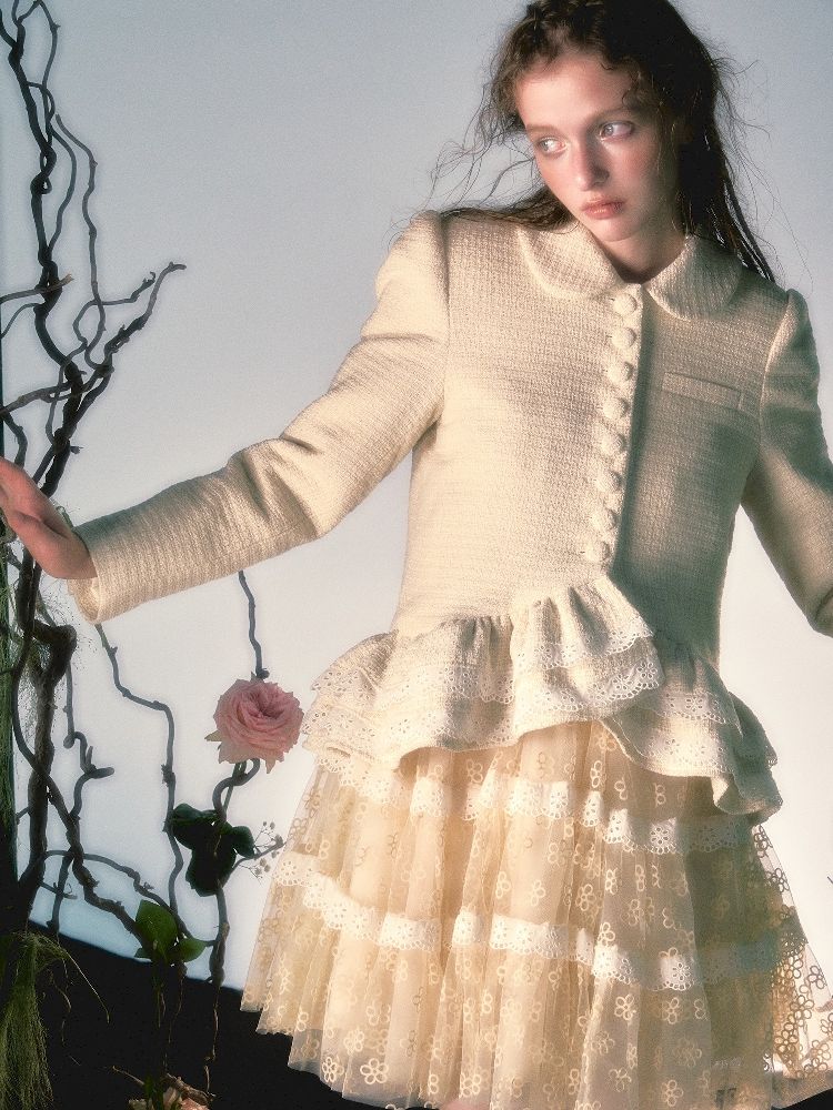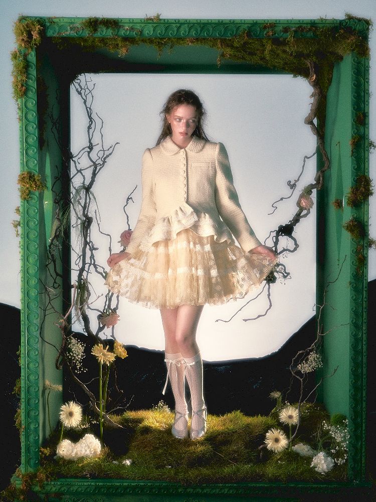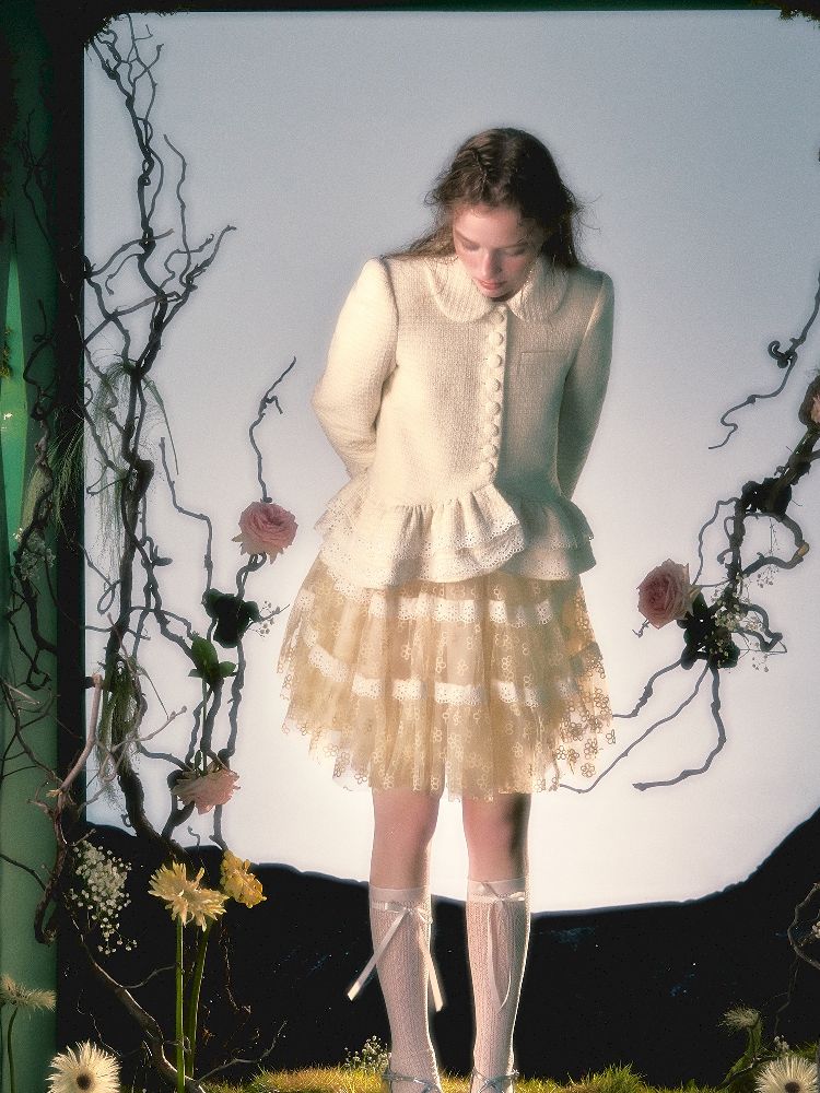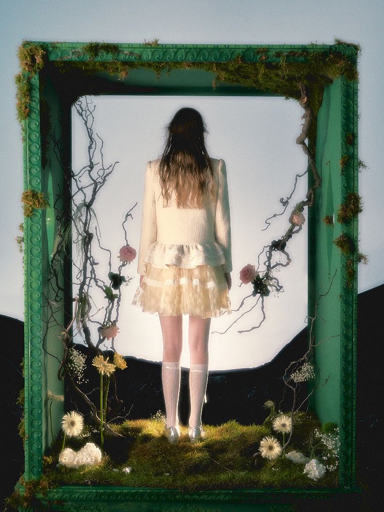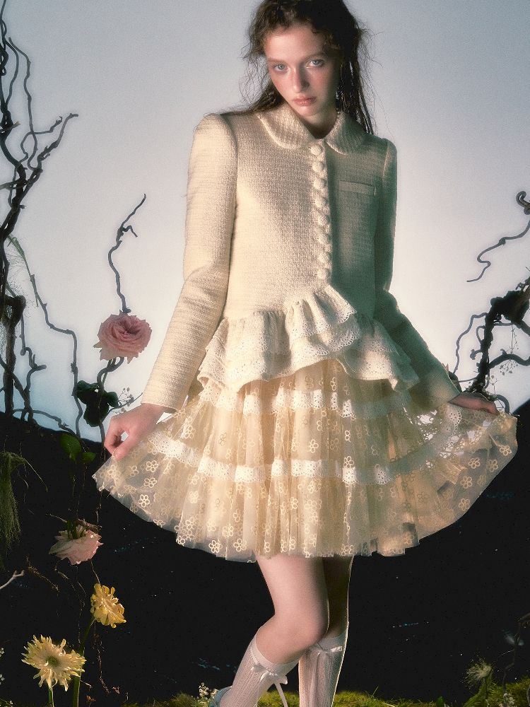 Flocked Floral Mesh Sling Dress【s0000004806】