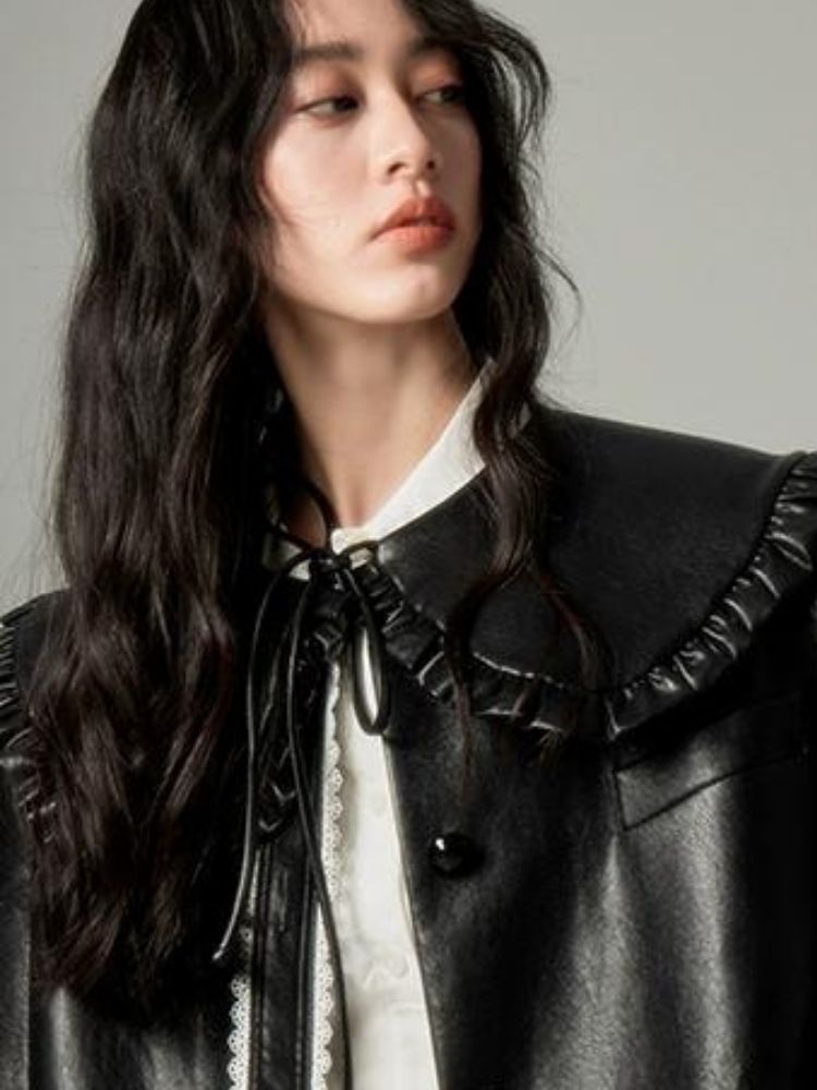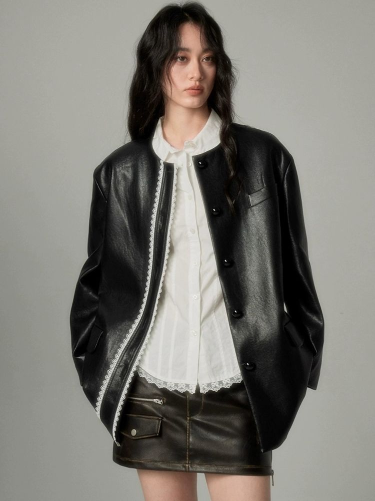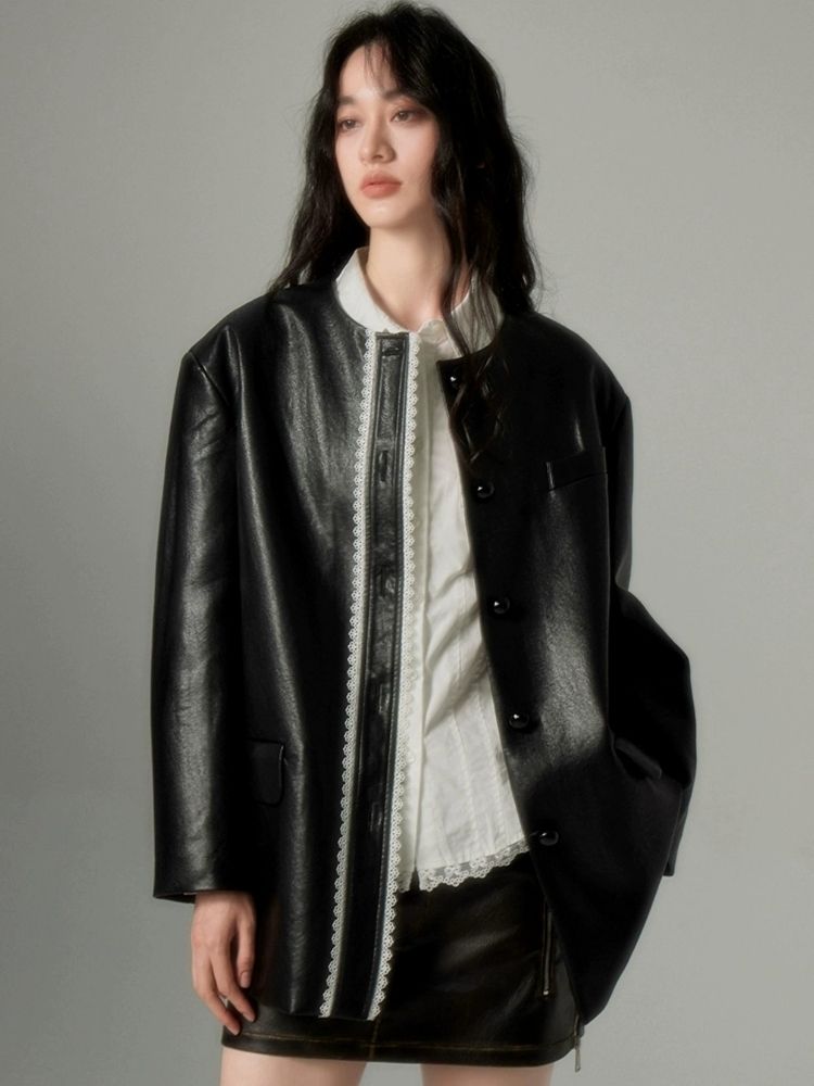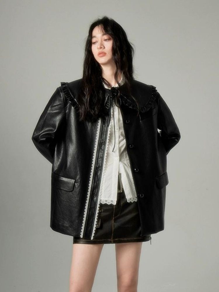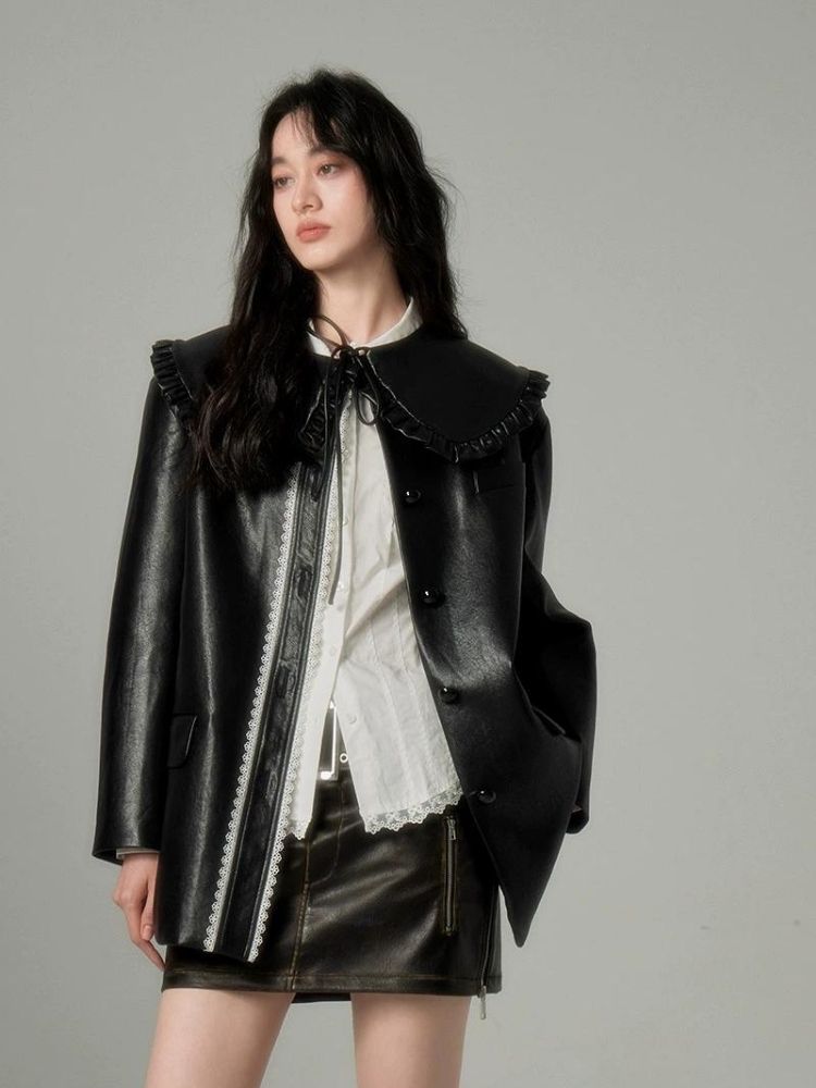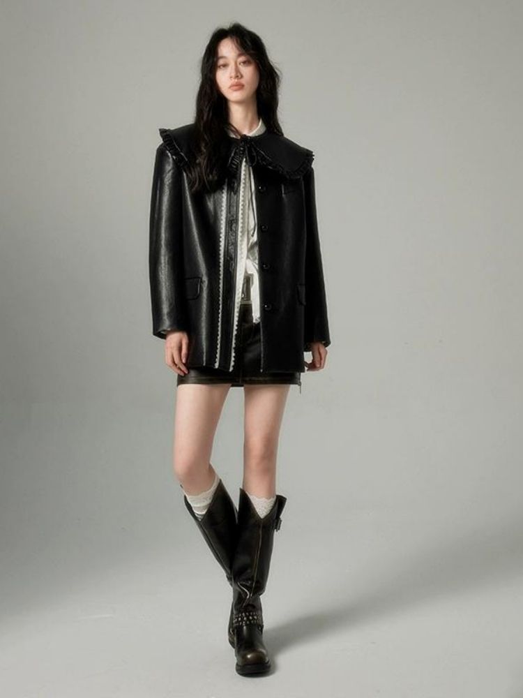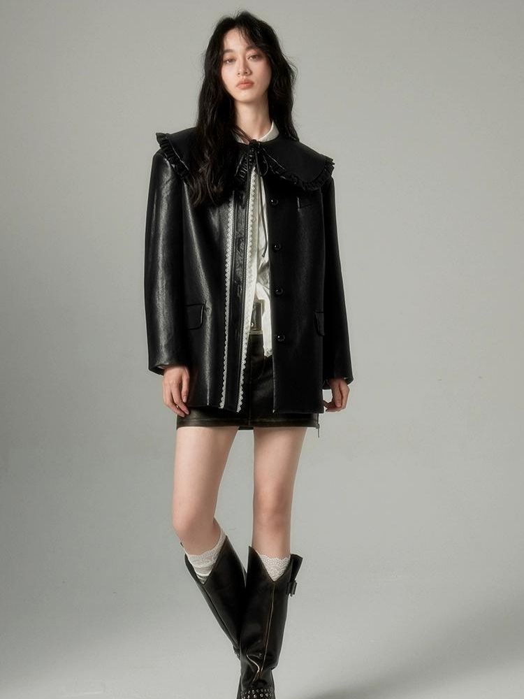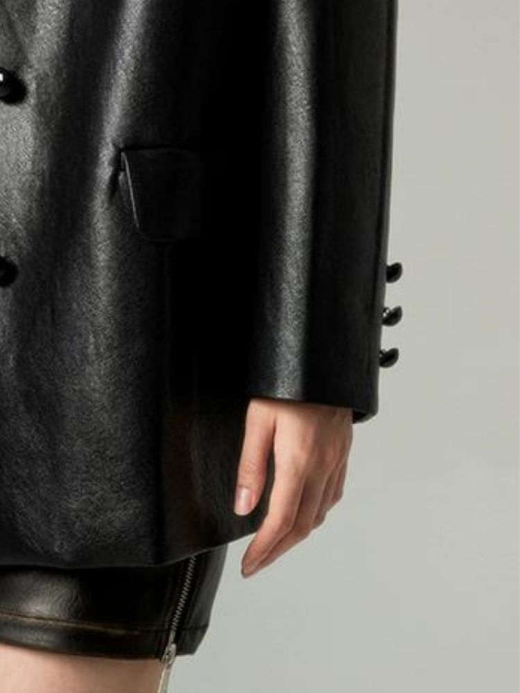 Black Leather Coat Jacket【s0000004850】