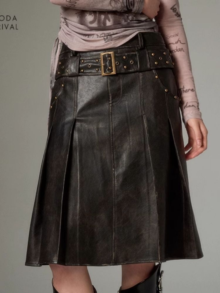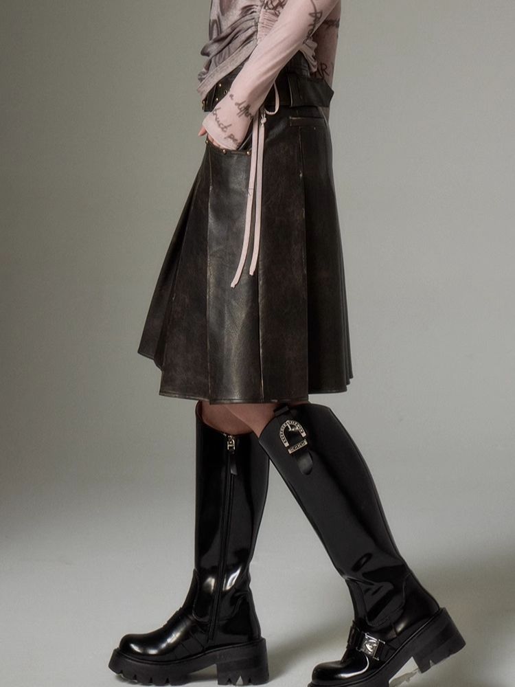 Vintage Murad rubbed color leather long skirt【s0000004872】