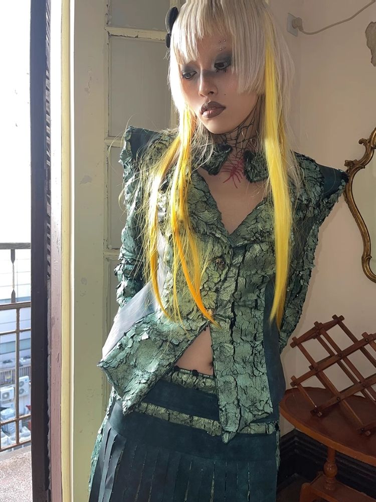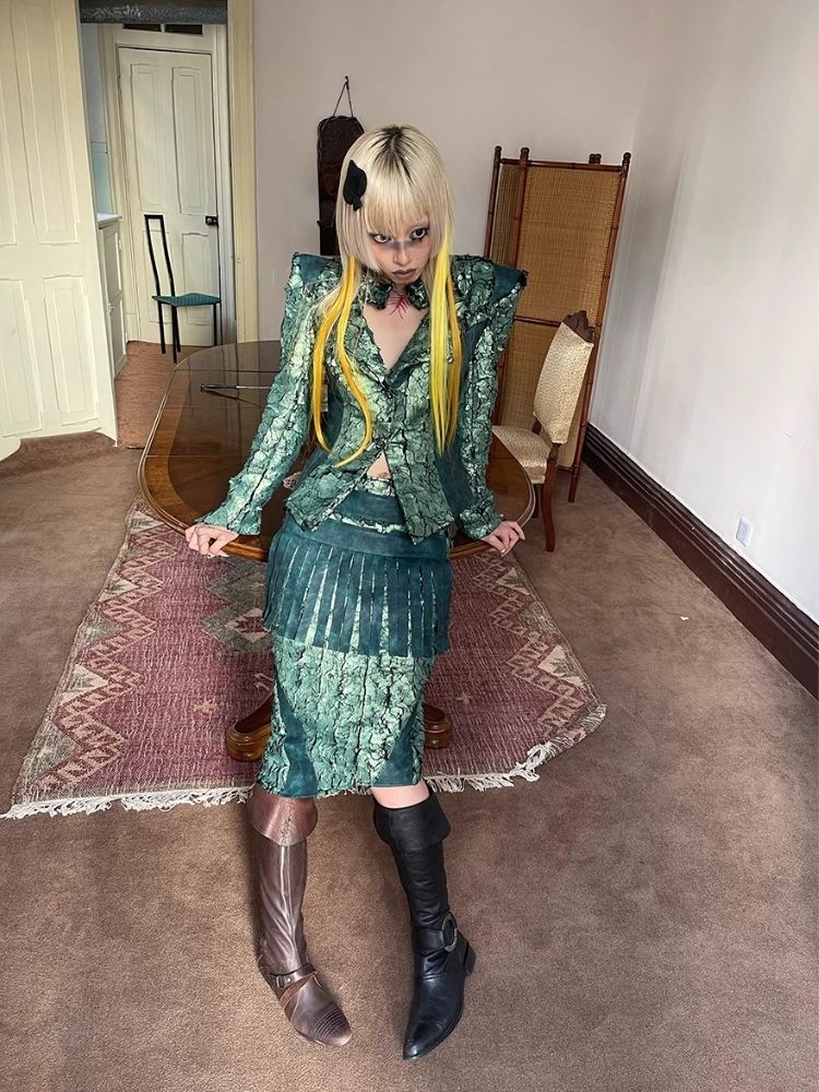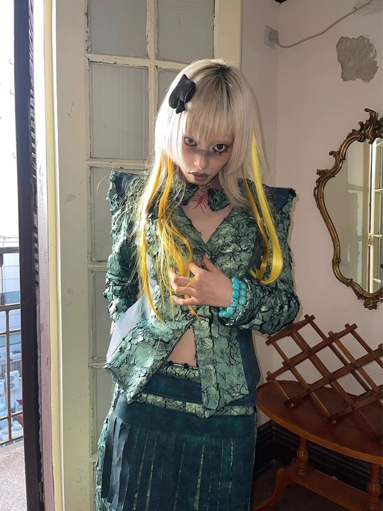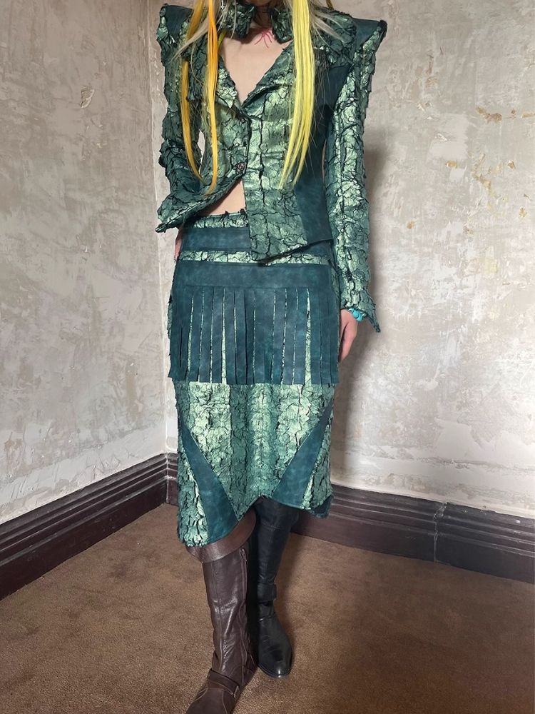 Feather Patchwork Shaped Leather Jacket【s0000004950】