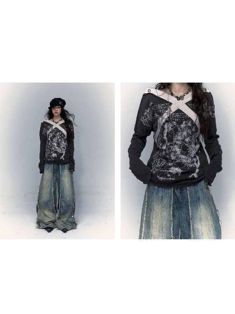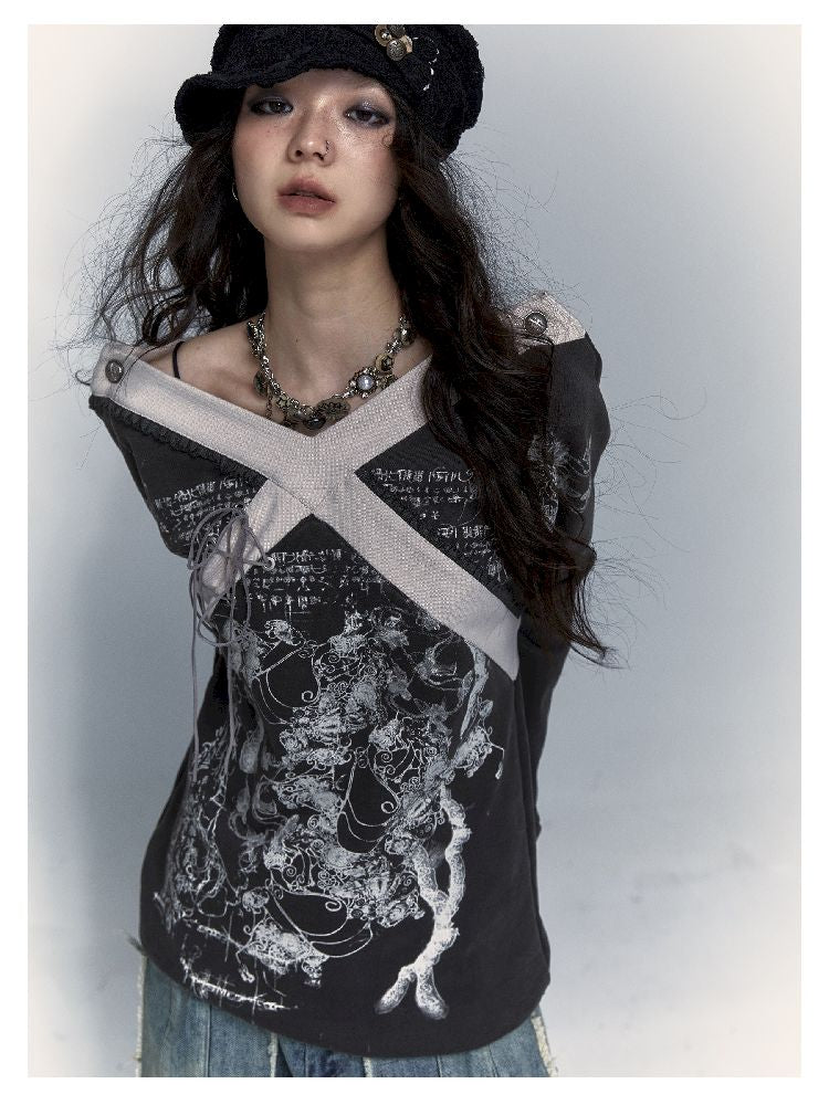 One Shoulder Long Sleeve T-Shirt Knit Top【s0000005007】
