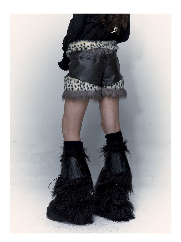 Leopard Patchwork Plush Leather Shorts【s0000005015】