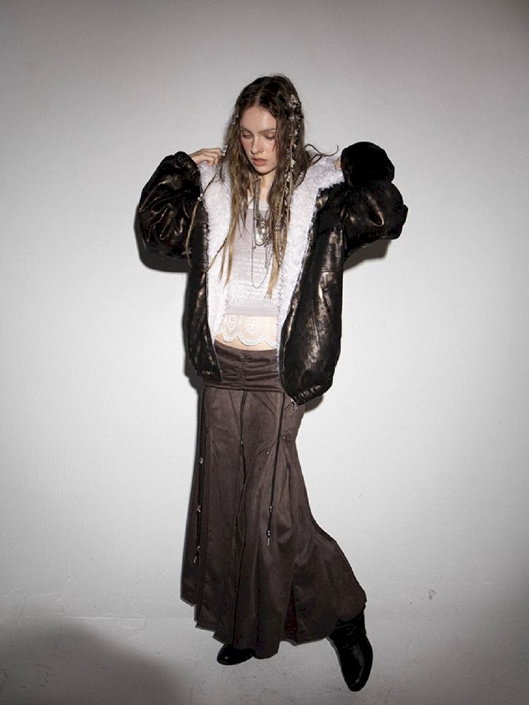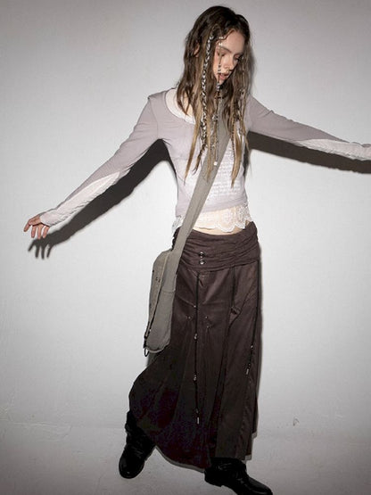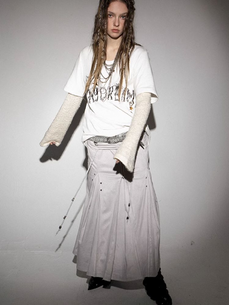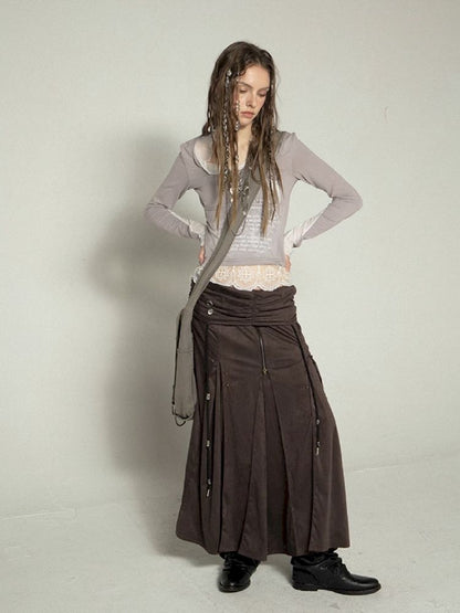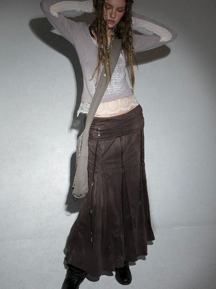 Low Waisted Pressure Pleated Midi Half Skirt【s0000005030】