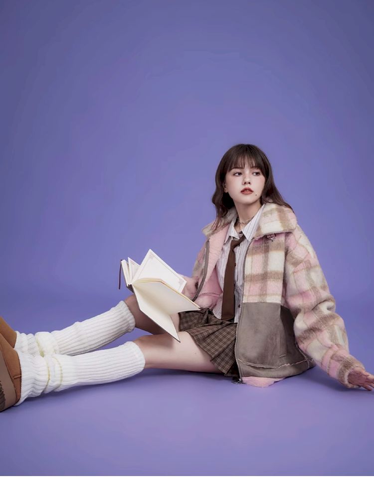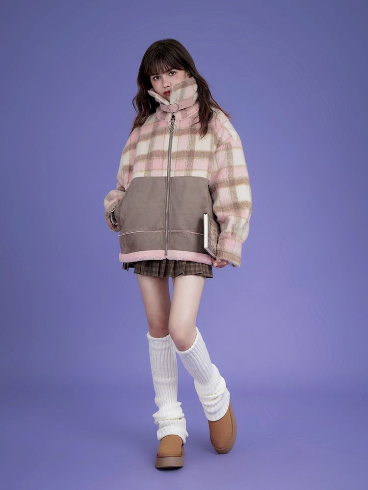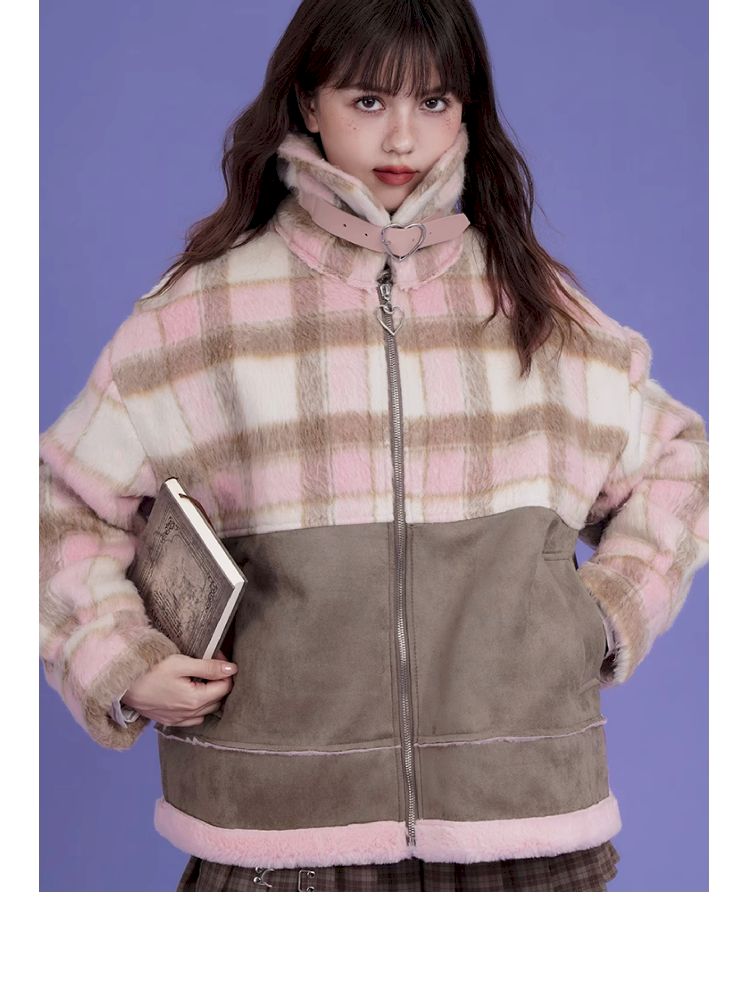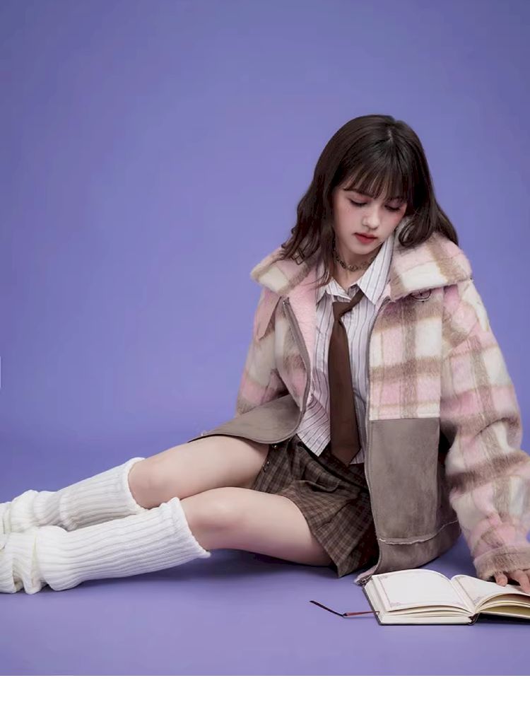 High Collar Fur Loose Tweed Jacket Coat【s0000005032】