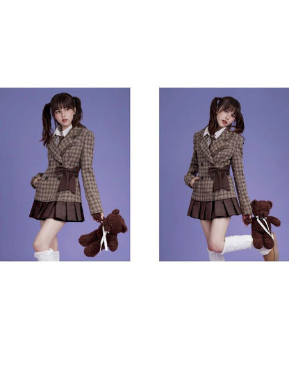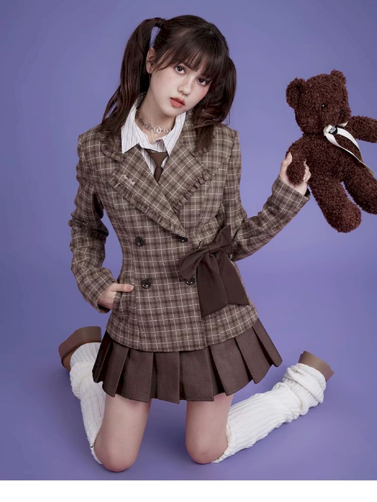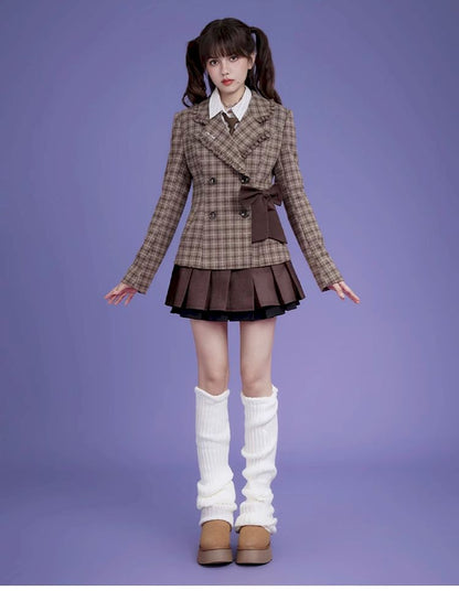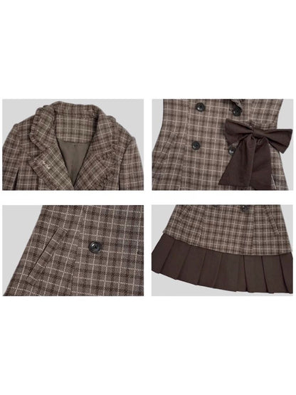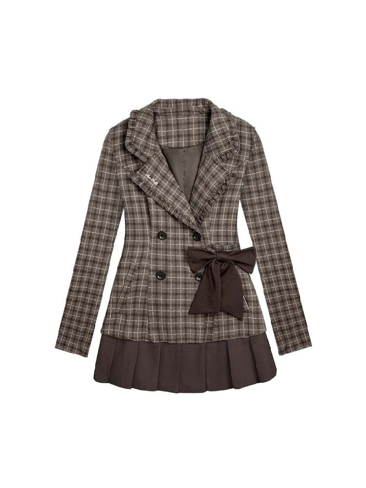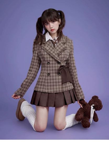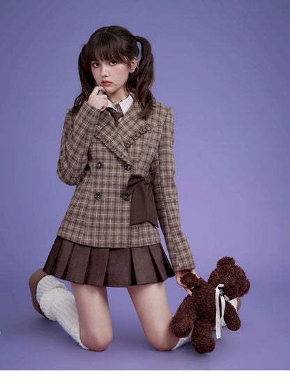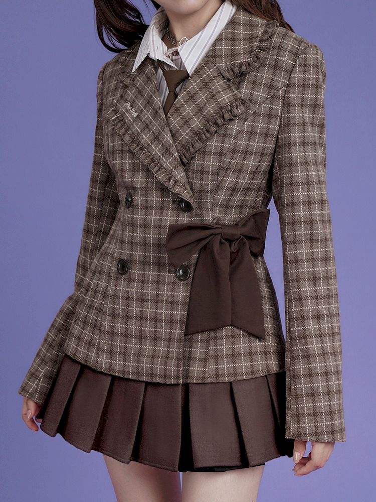 Sweet cool mocha plaid bow blazer【s0000005034】