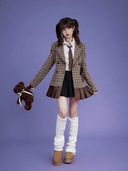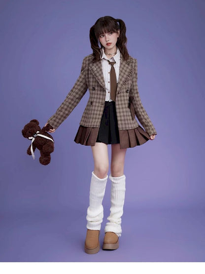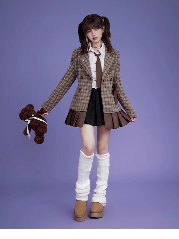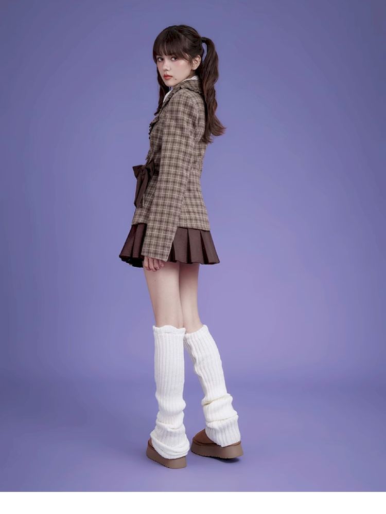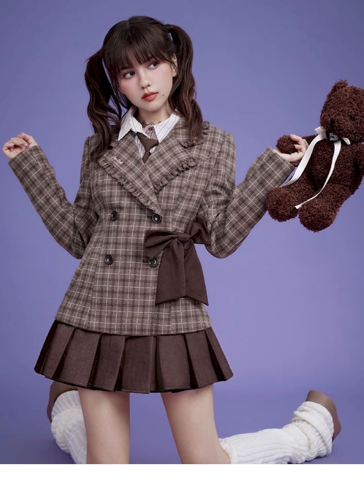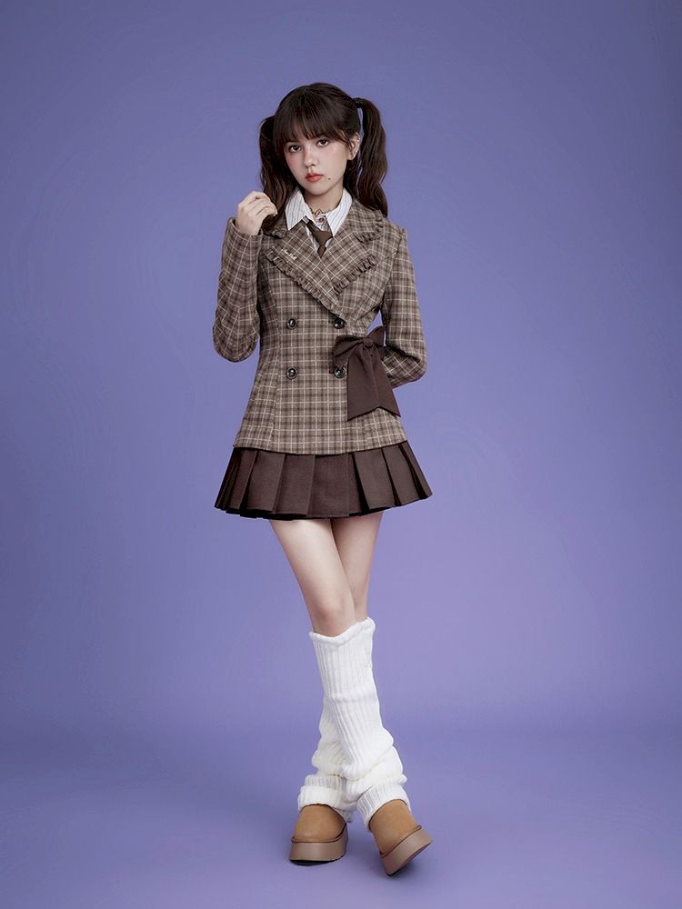 Sweet cool mocha plaid bow blazer【s0000005034】