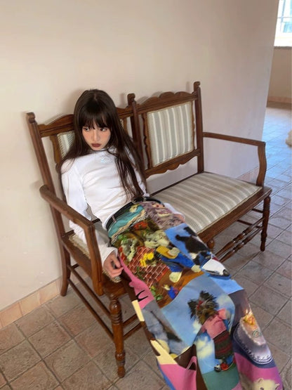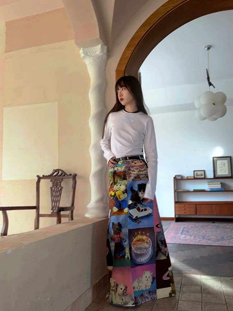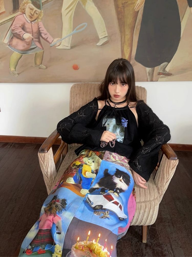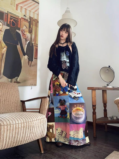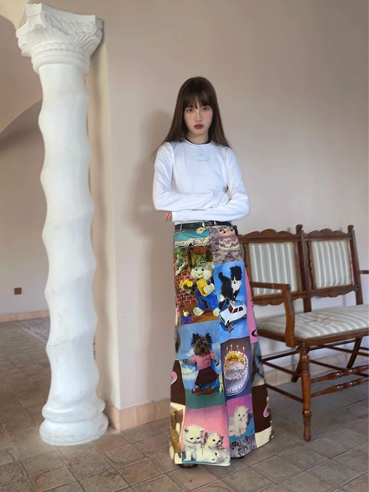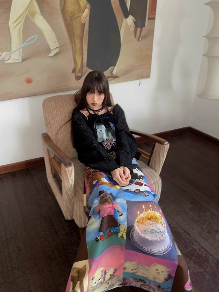 Cat Cake Birthday Print Casual Long Half Skirt【s0000005063】