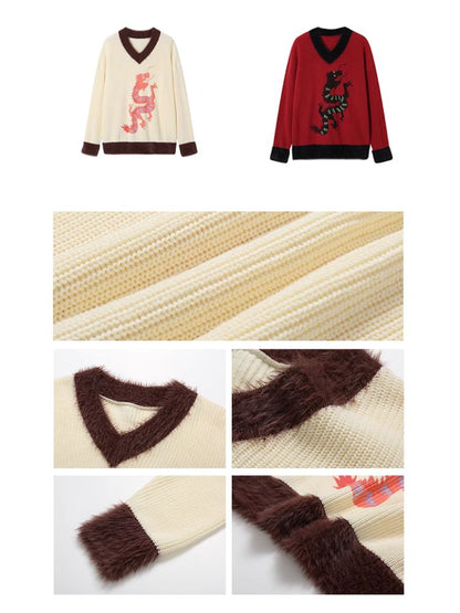 Loose Dragon Print Sweater【s0000005124】