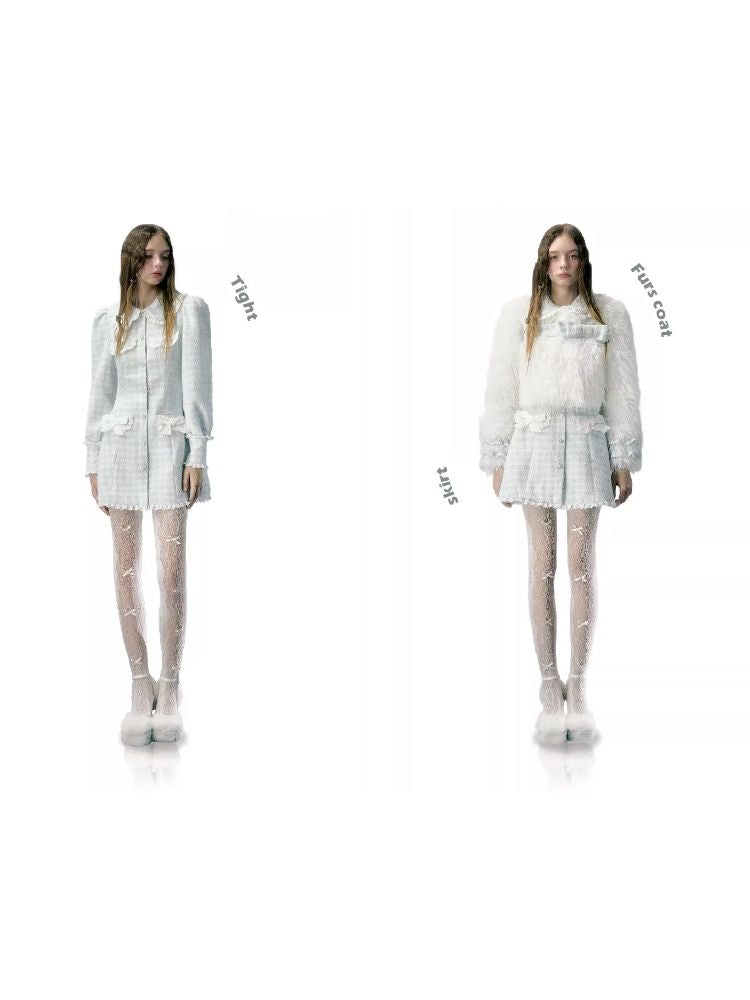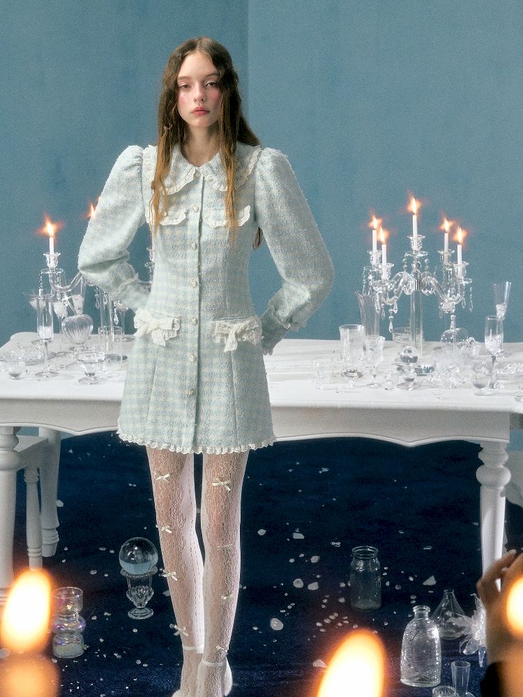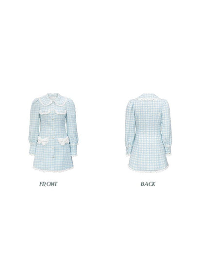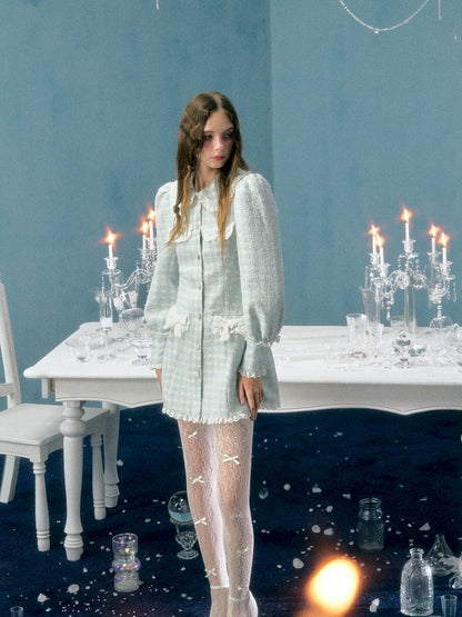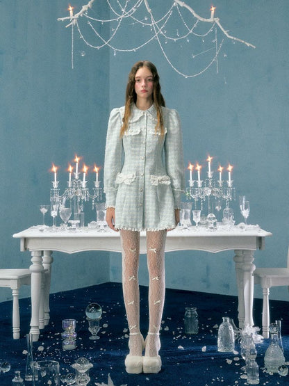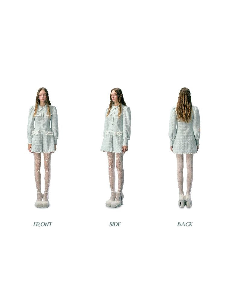 Lace Bow Bubble Sleeve Waist Cinching Dress【s0000005141】