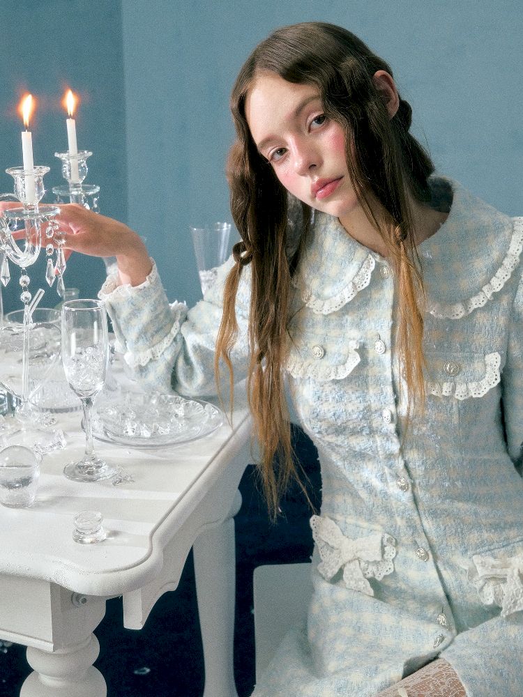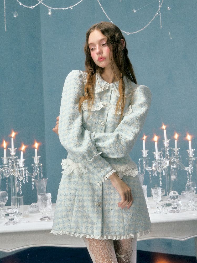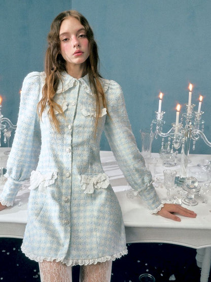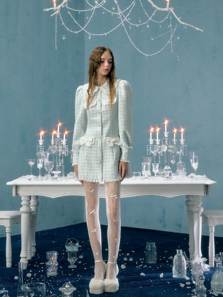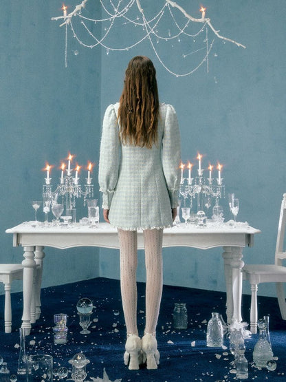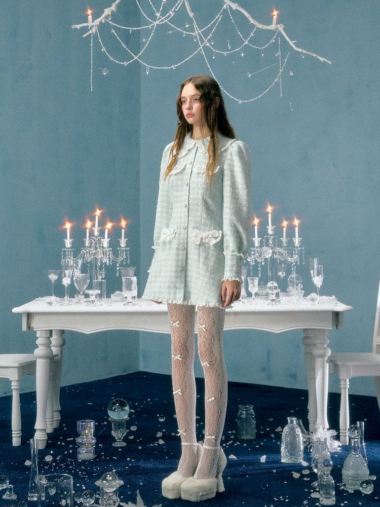 Lace Bow Bubble Sleeve Waist Cinching Dress【s0000005141】