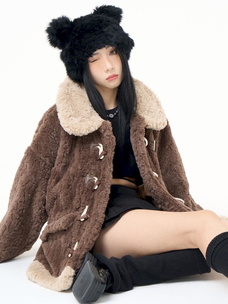 Crocheted Button Top Lamb Suede Jacket【s0000005156】