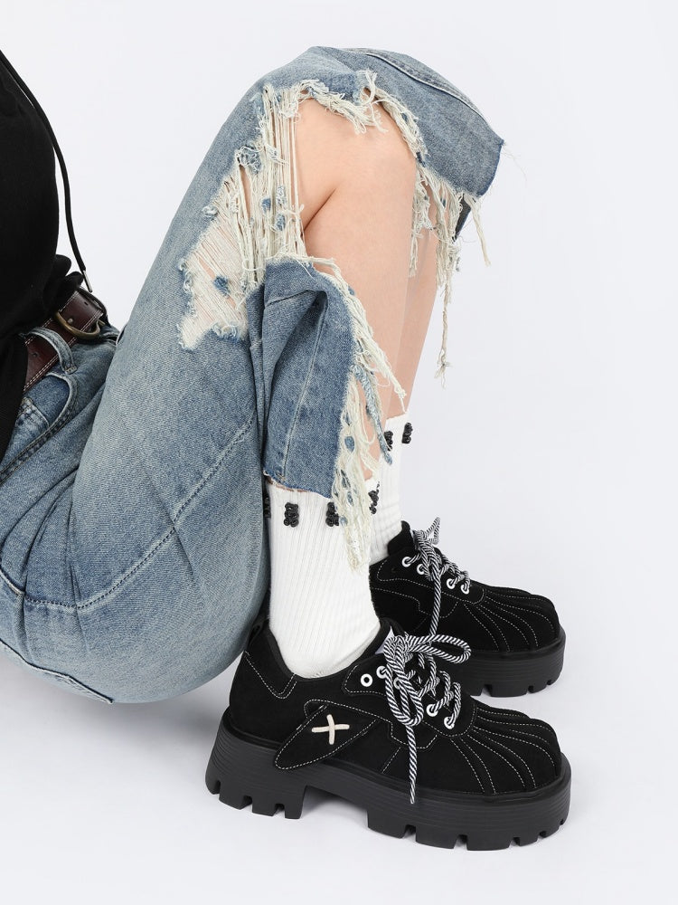 y2k Stitch Lace Up Platform Shoes【s0000005170】