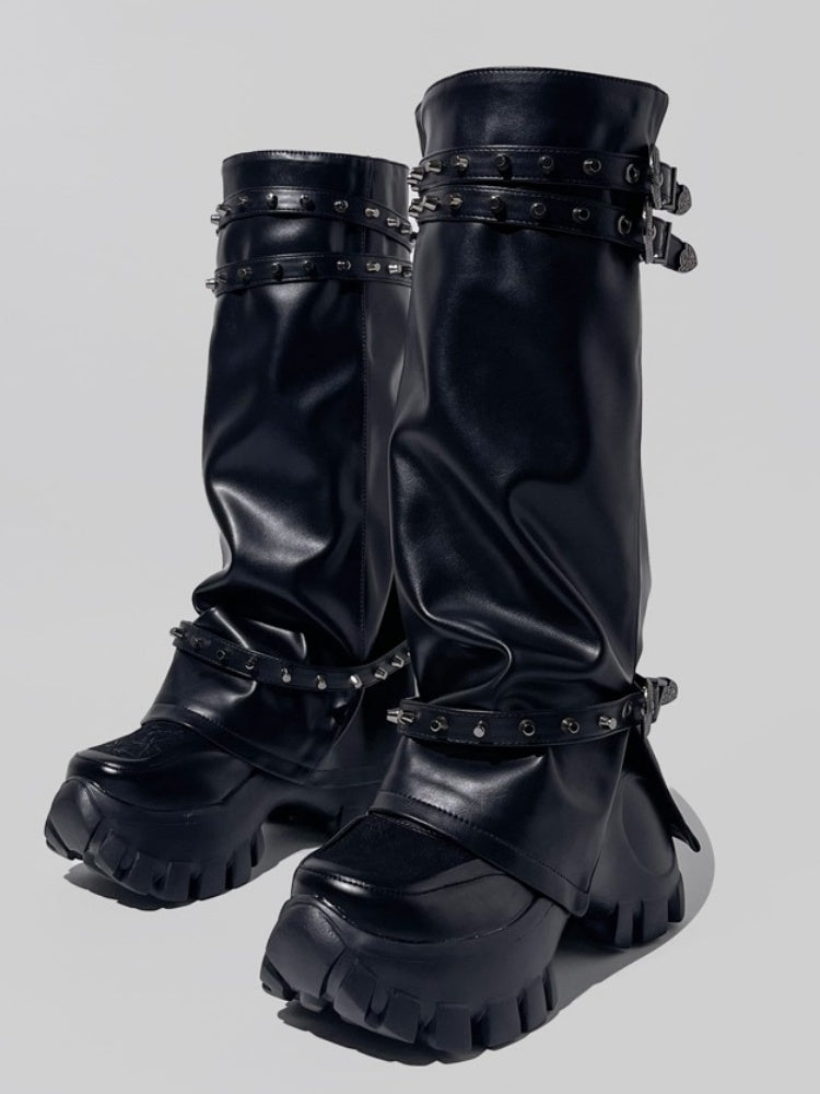 Y2K Punk Style Metal Rivets High Heel Long Boots【s0000005187】
