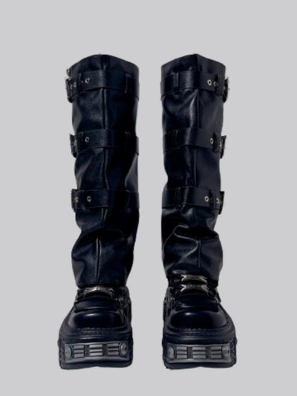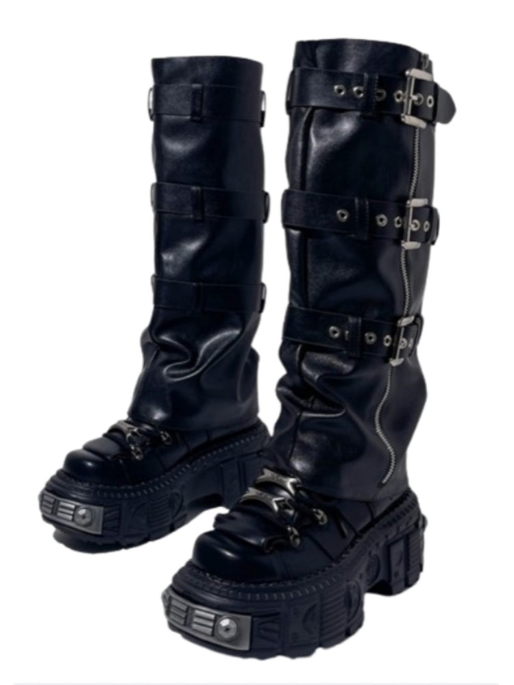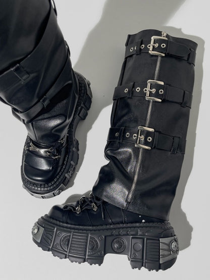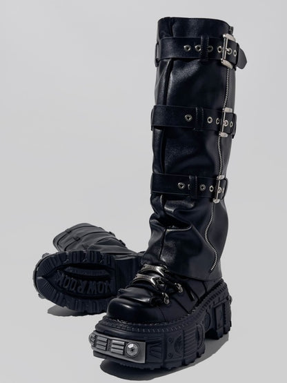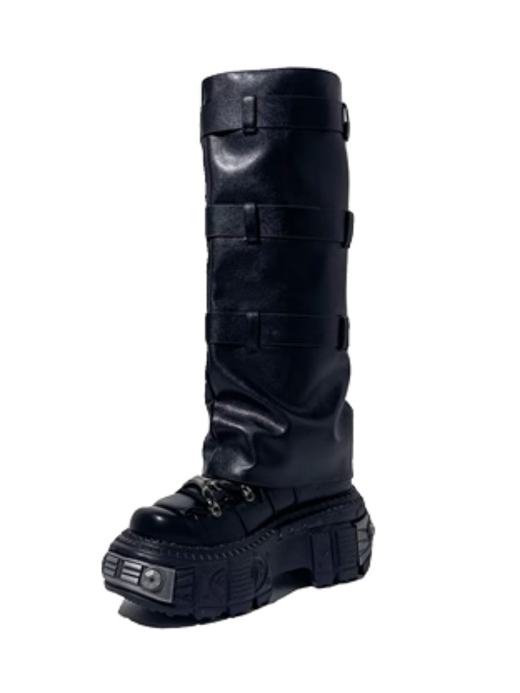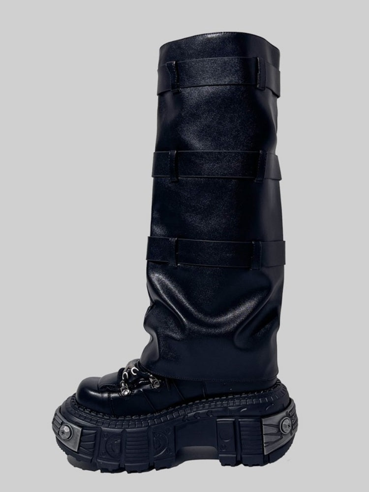 Y2K Punk Style Triple Belt Volume Sole Long Boots【s0000005190】