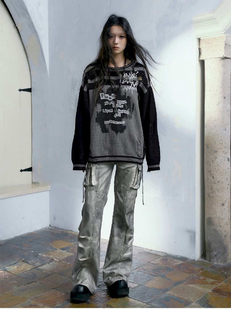 Vintage Dirty Wash Workwear Flared Pants【s0000005237】