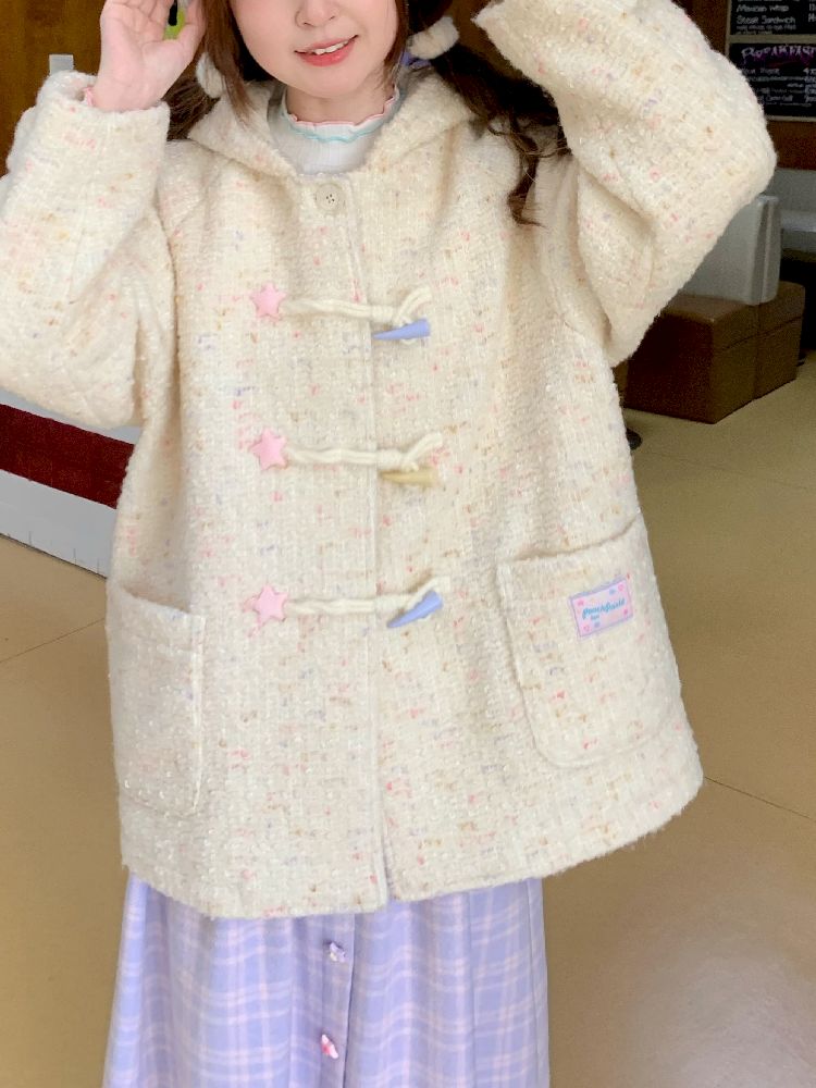 Hooded winter tweed coat【s0000005257】