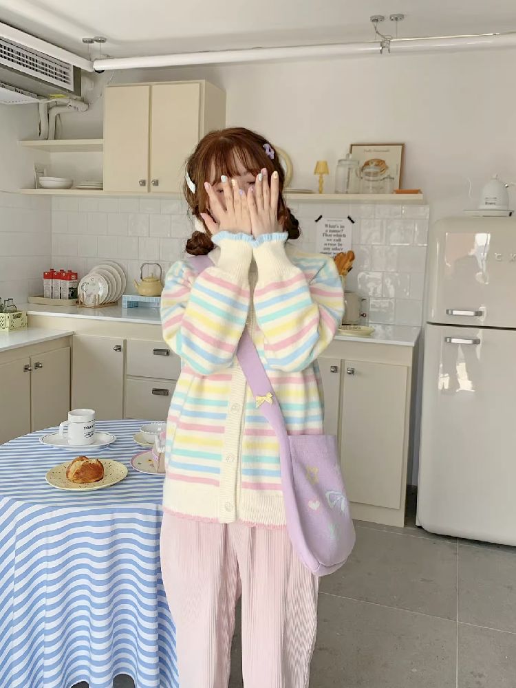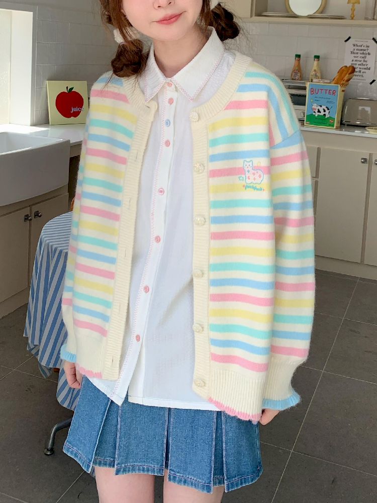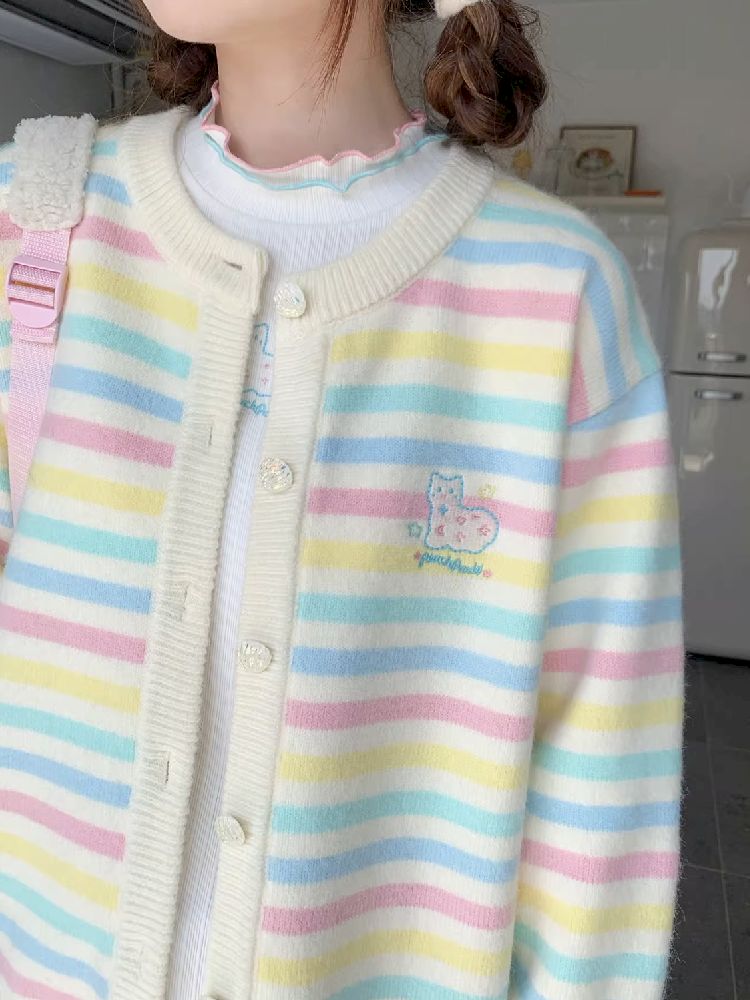 Rainbow colorful striped wool knit sweater【s0000005266】