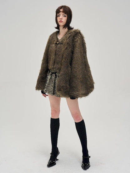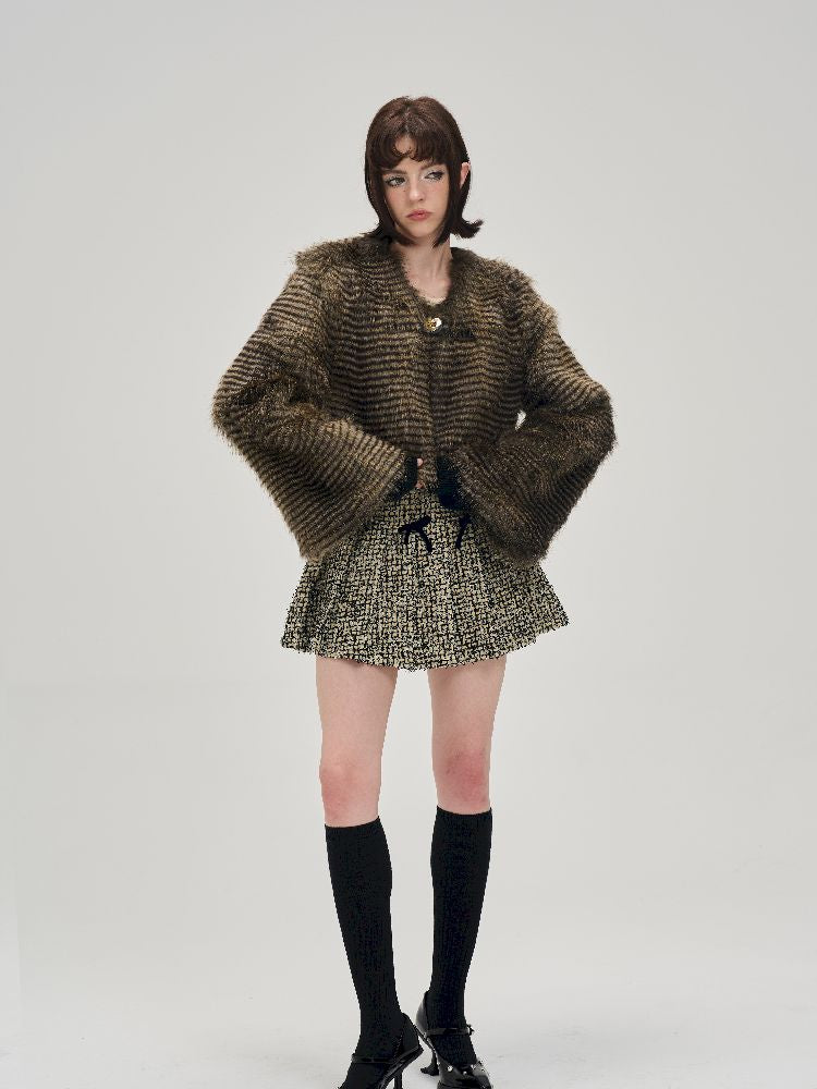 Flared Sleeve Eco Fur Short Jacket【s0000005290】