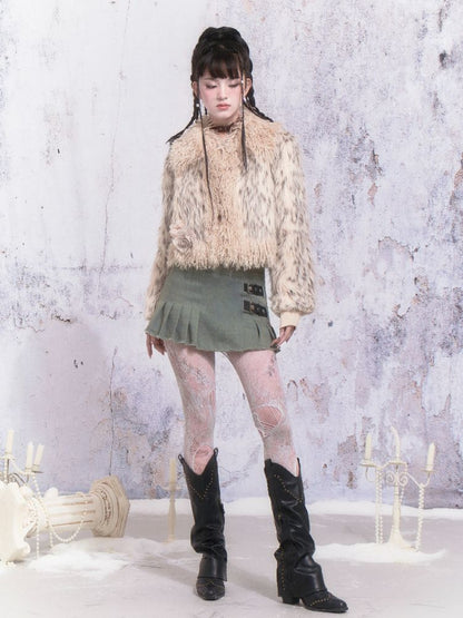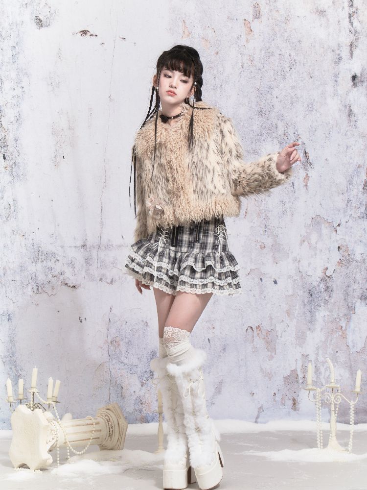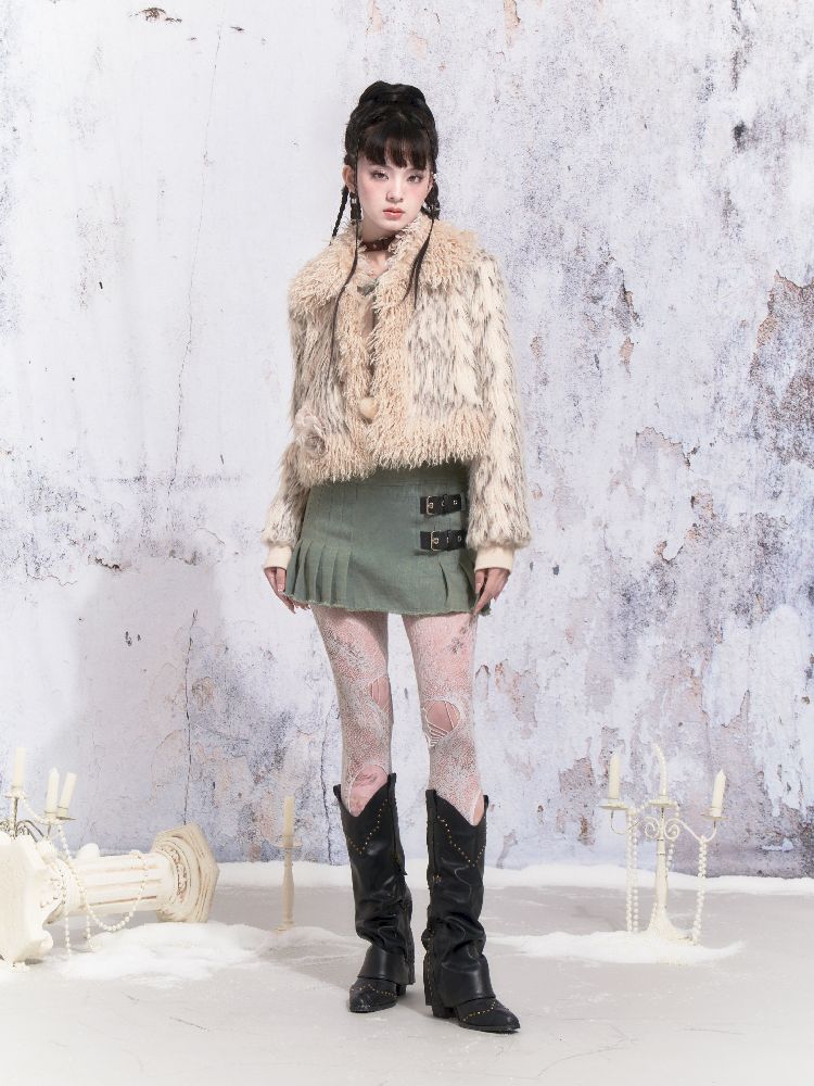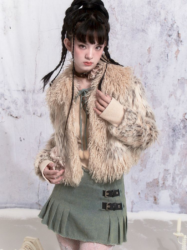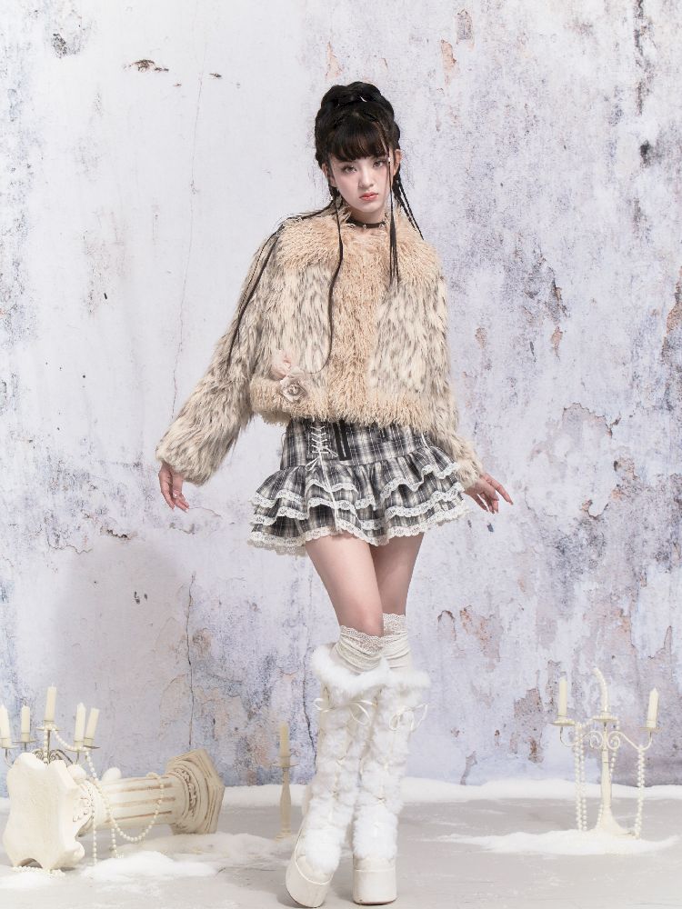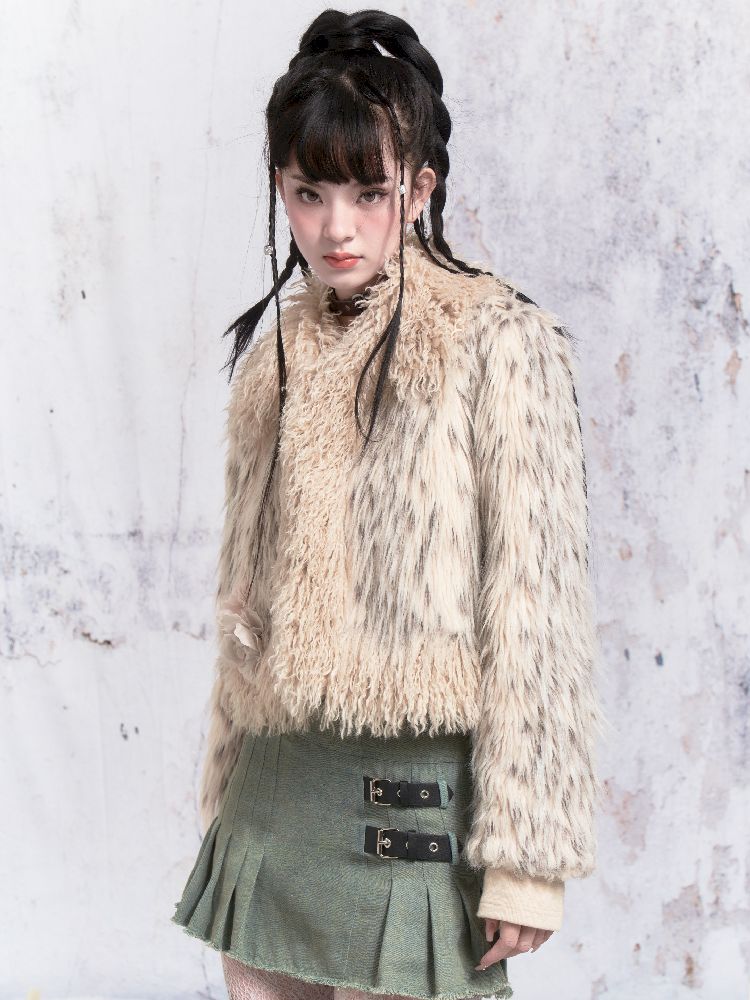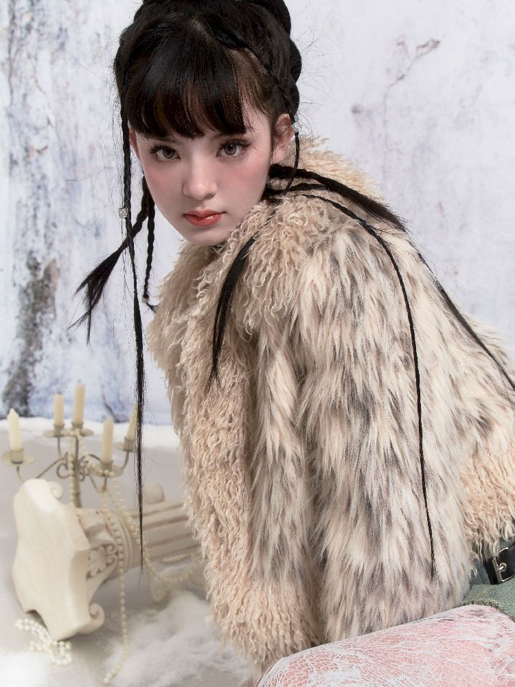 Beige Stripe Patchwork Fox Fur Coat【s0000005312】