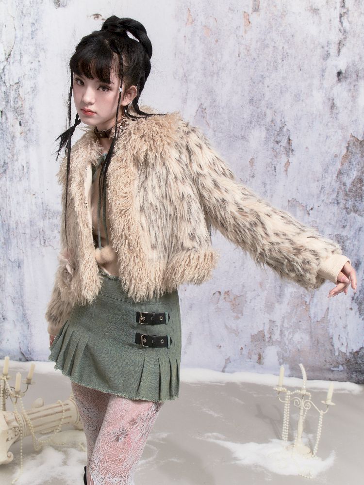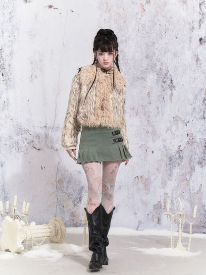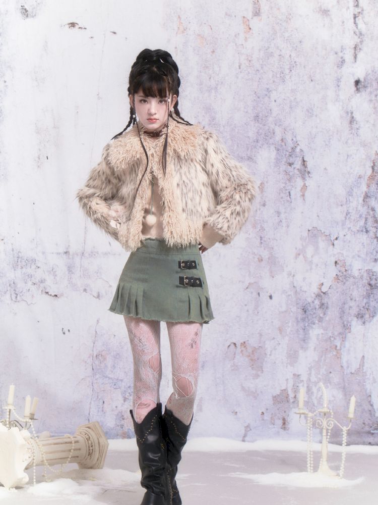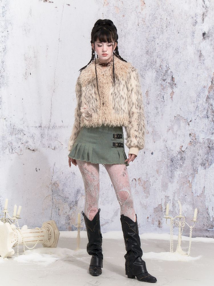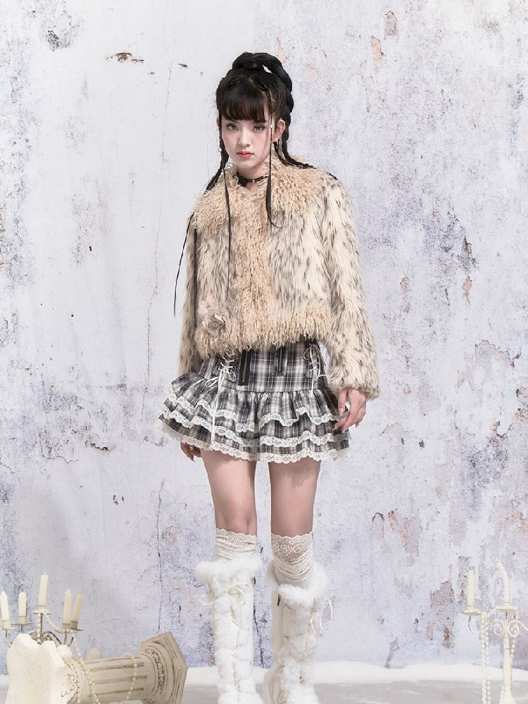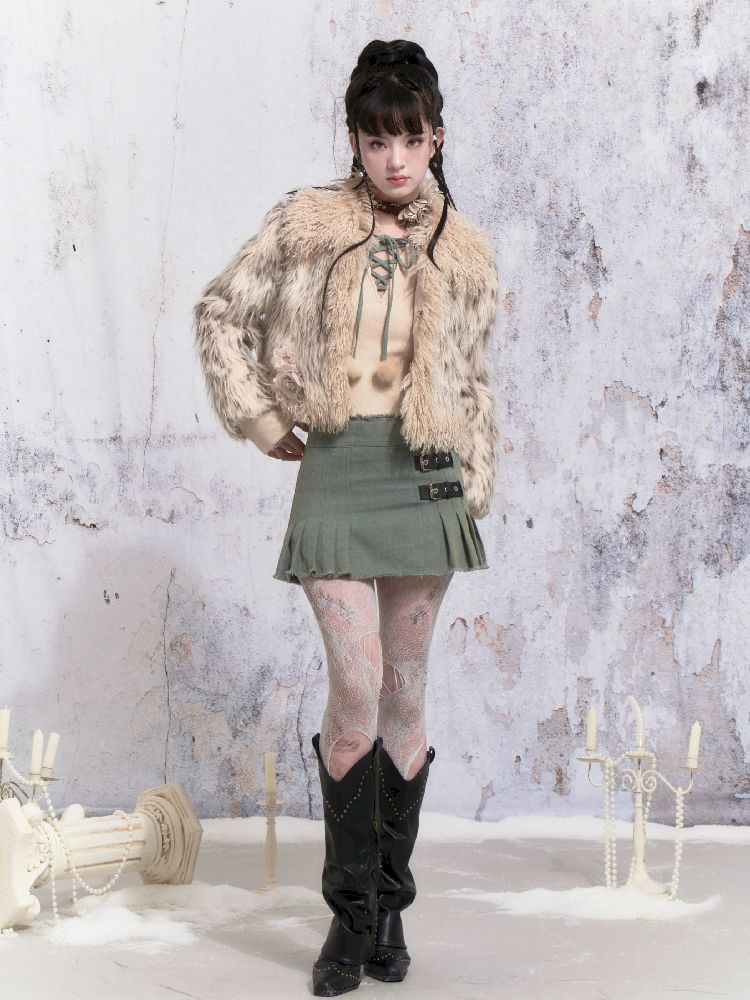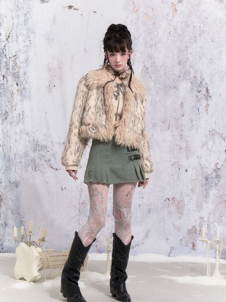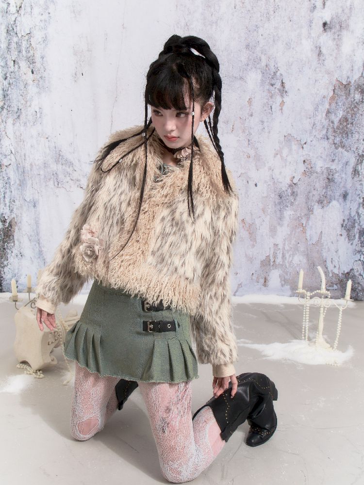 Beige Stripe Patchwork Fox Fur Coat【s0000005312】