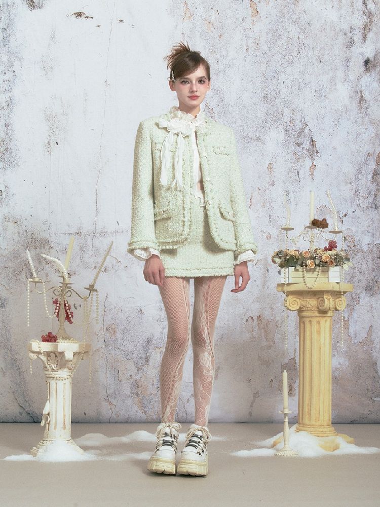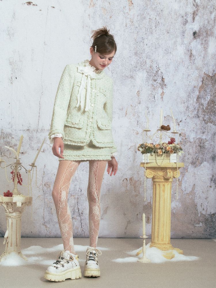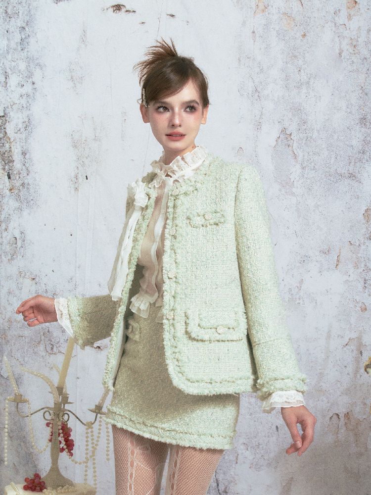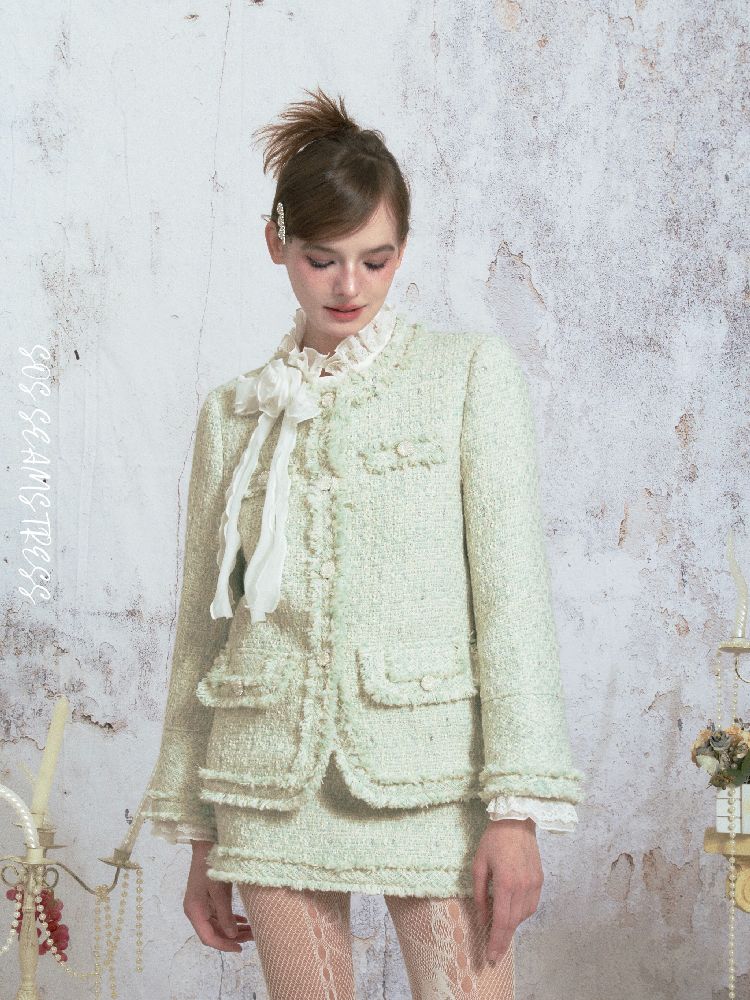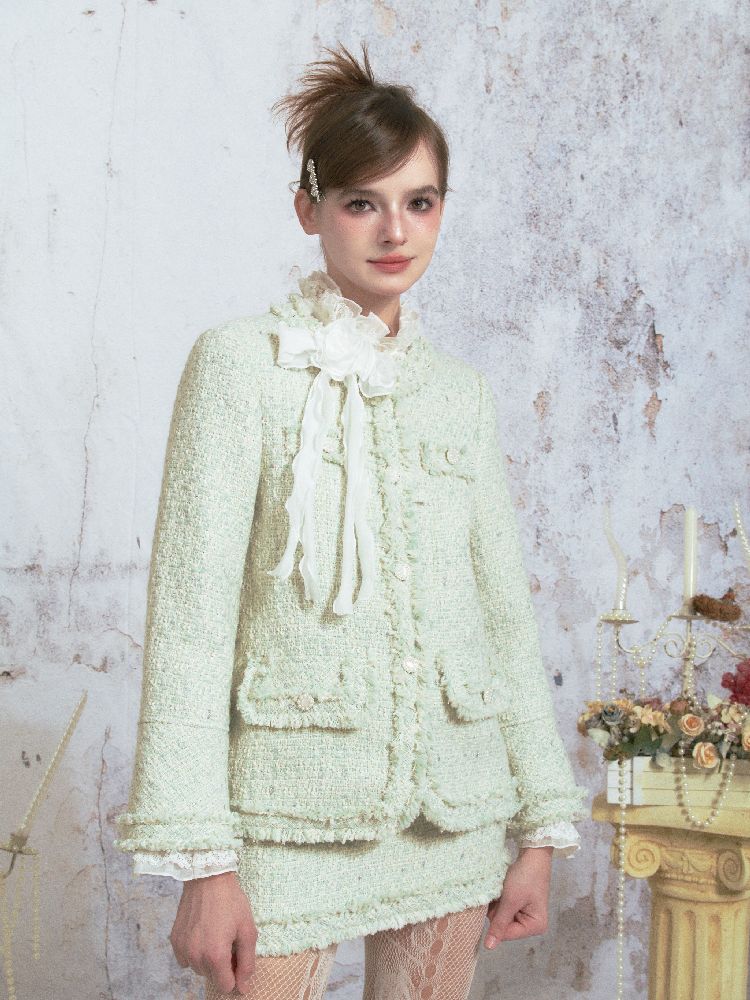 Raw Edge Camellia Jacket Half Skirt Set【s0000005314】