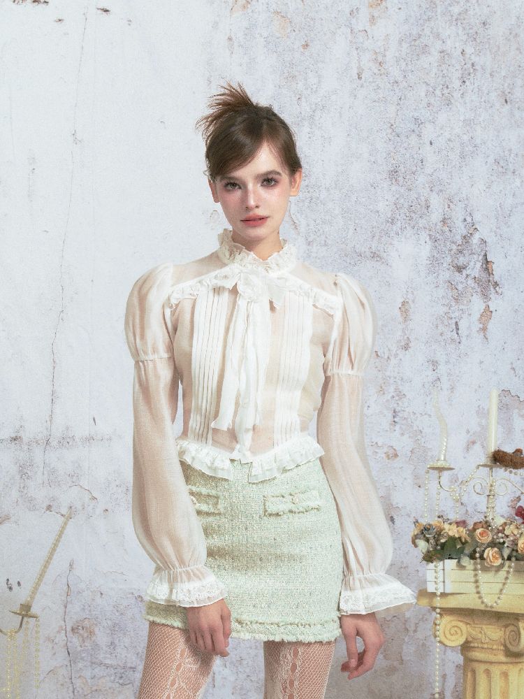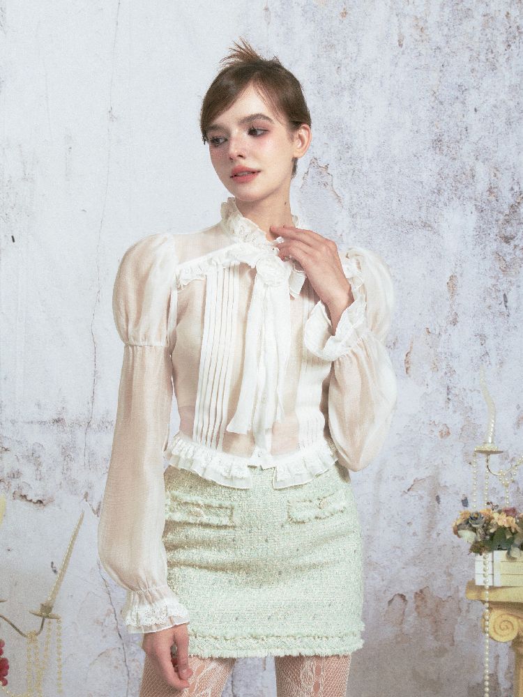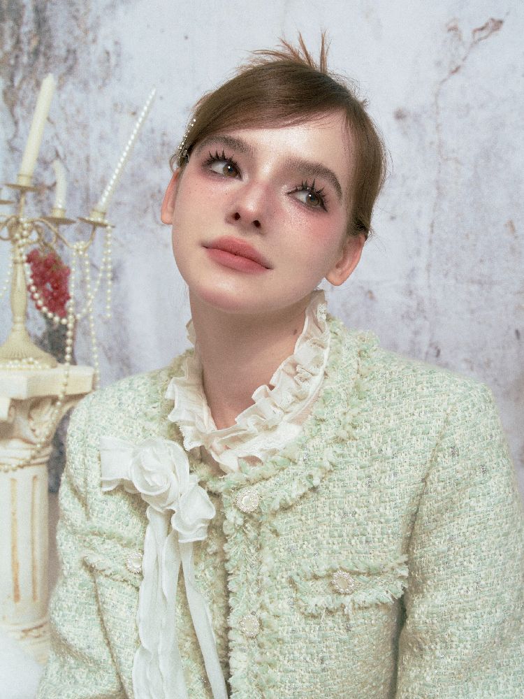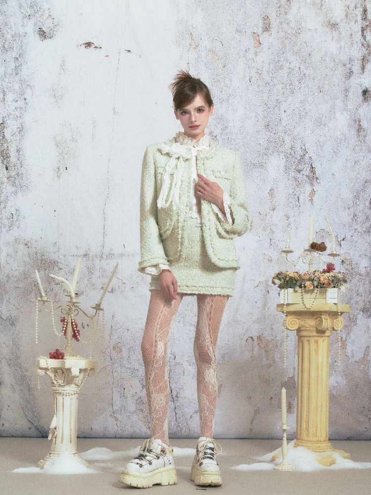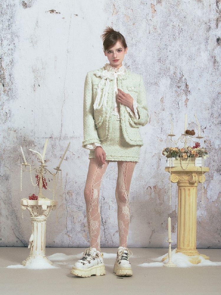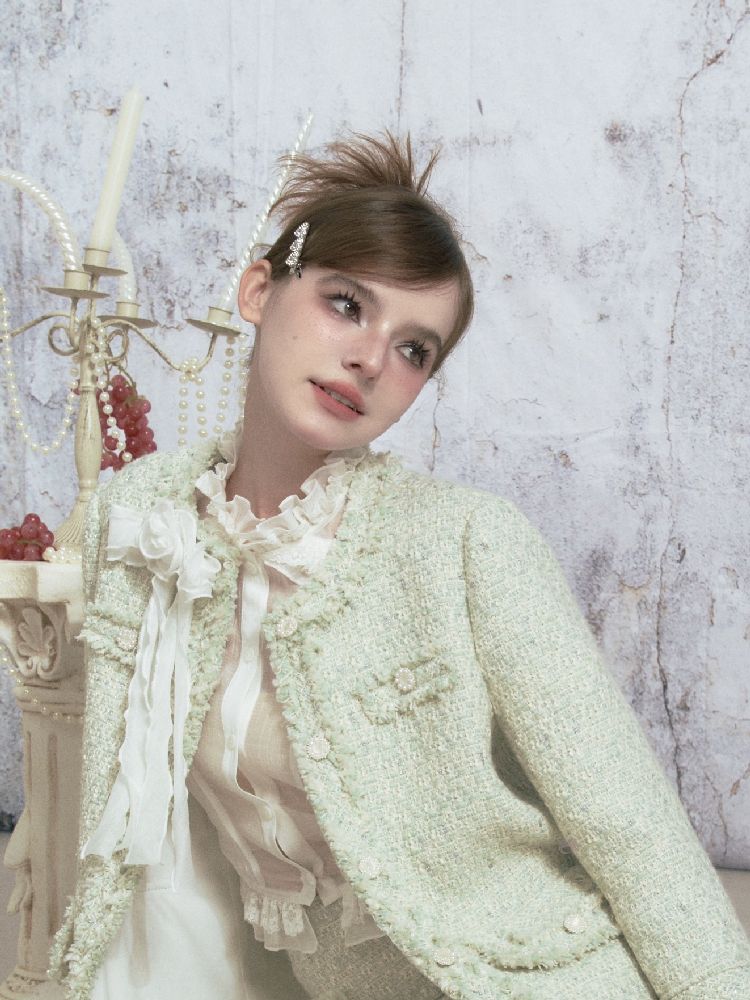 Raw Edge Camellia Jacket Half Skirt Set【s0000005314】