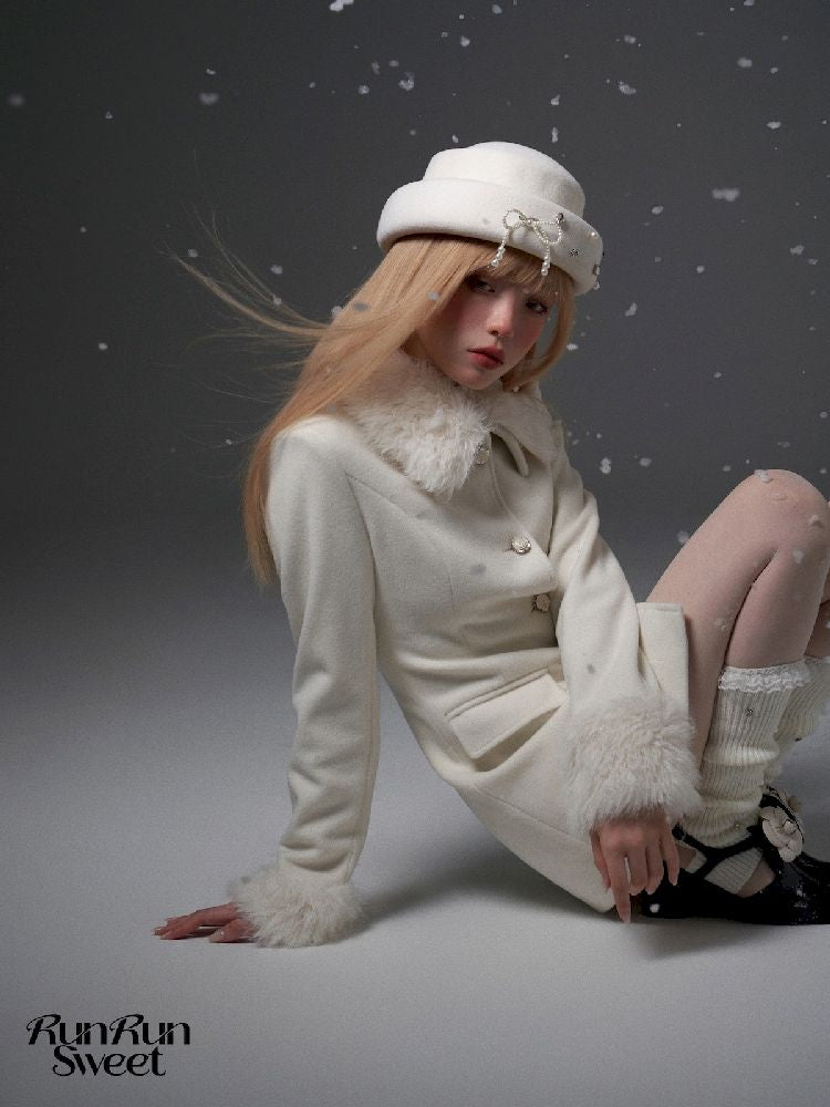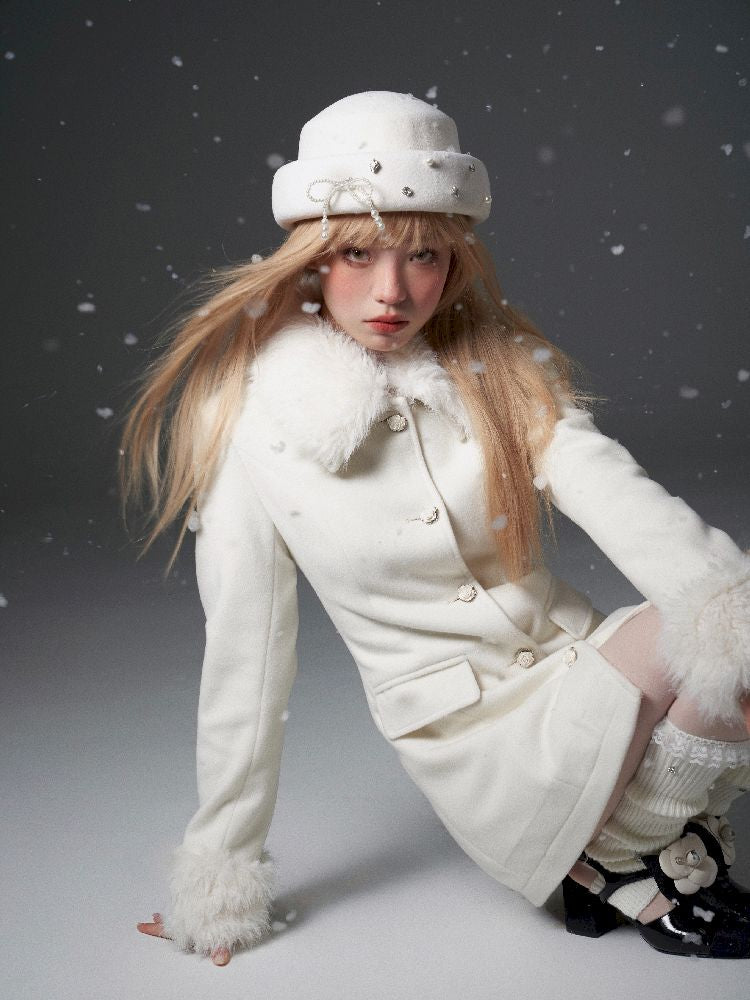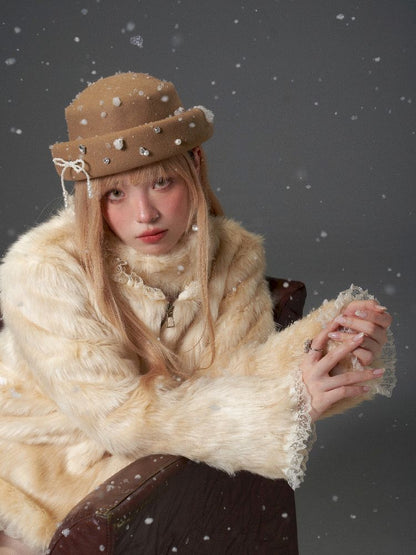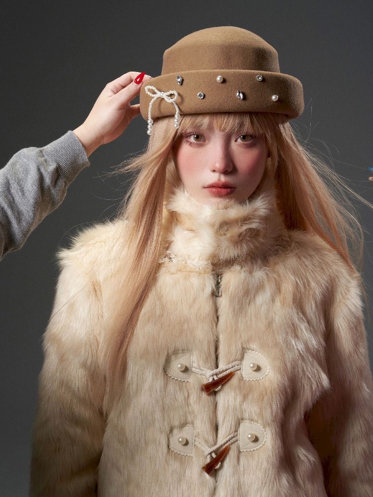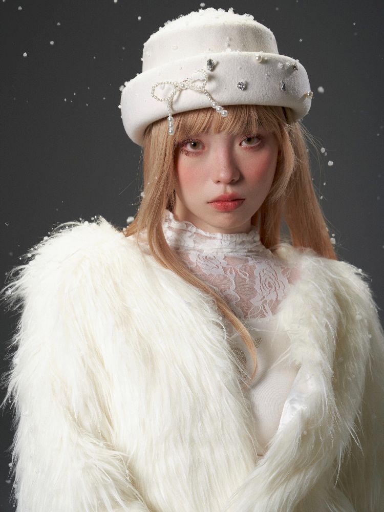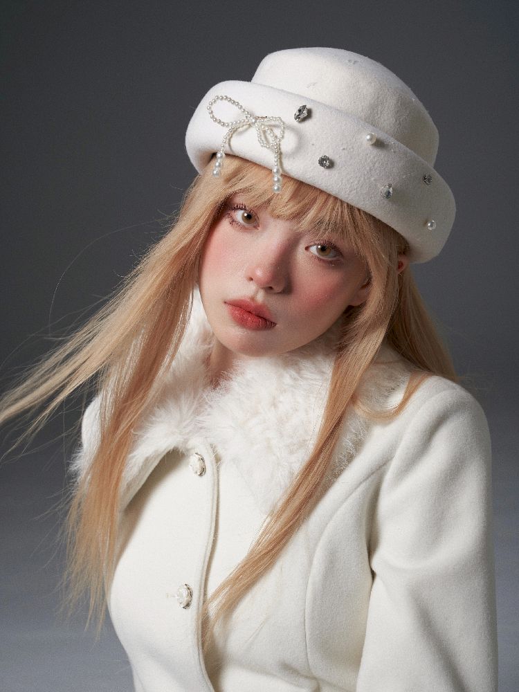 Bow tie pearl Wool Tweed Hat【s0000005329】