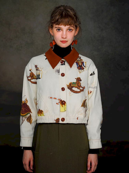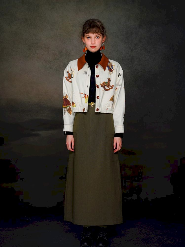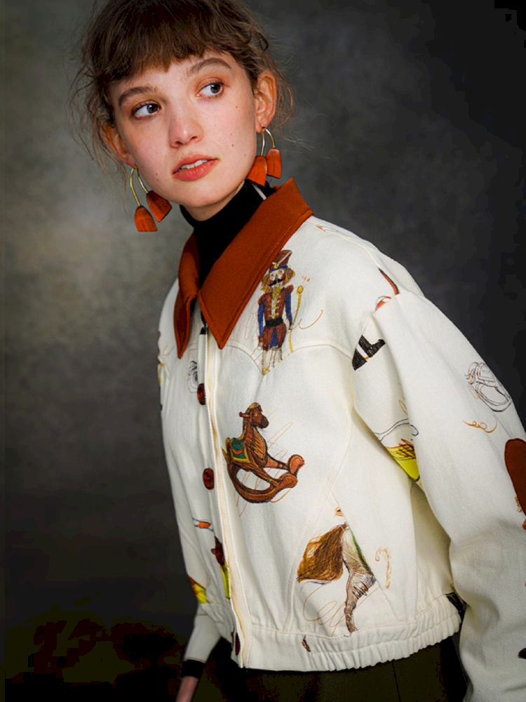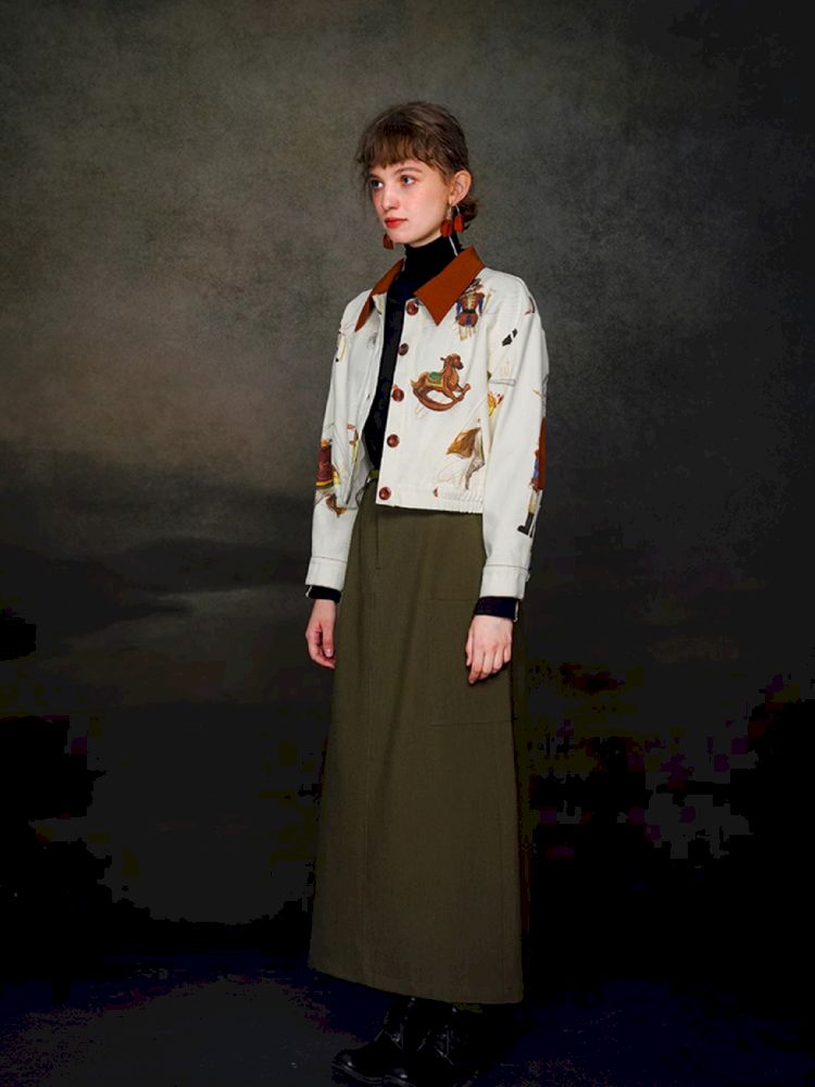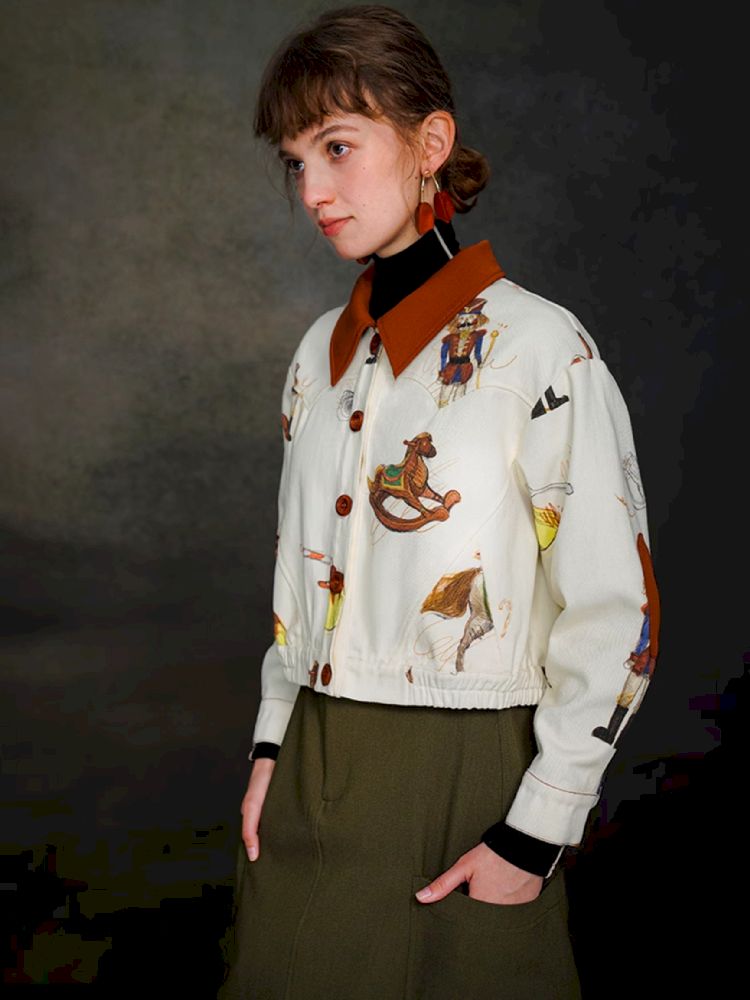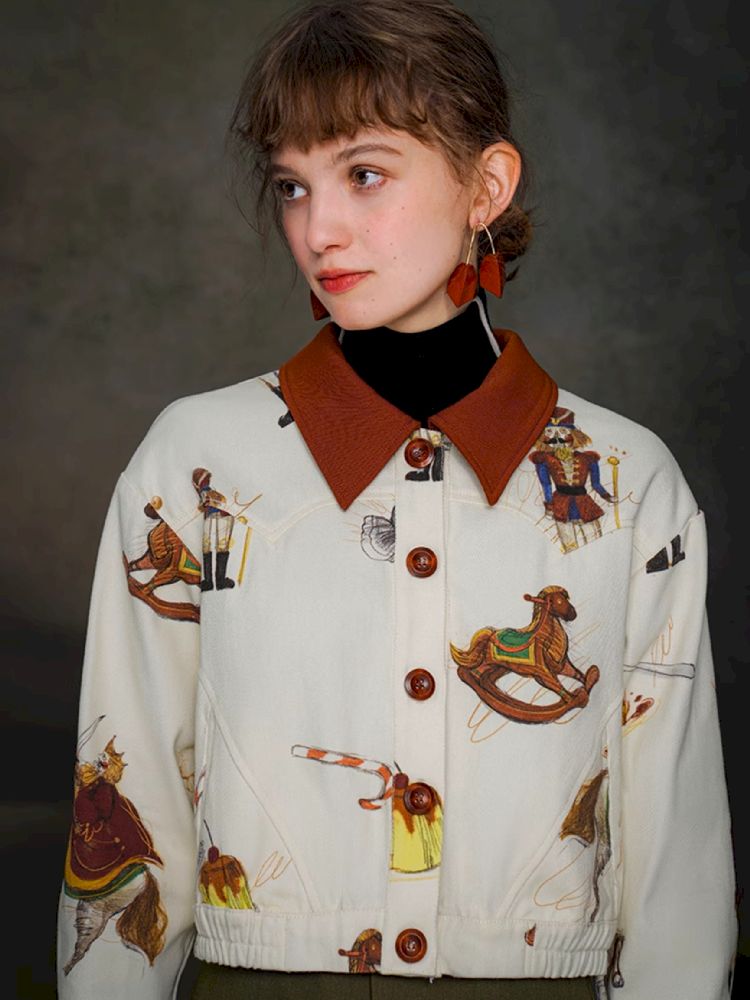 British retro brown red polo collar short jacket【s0000005372】
