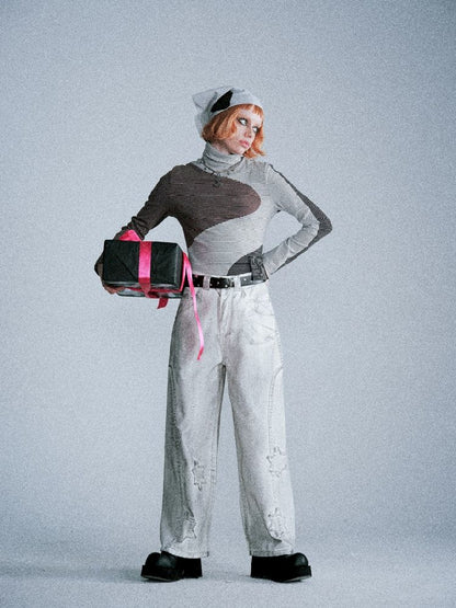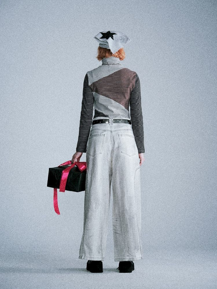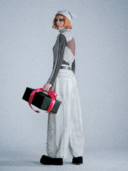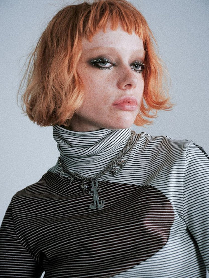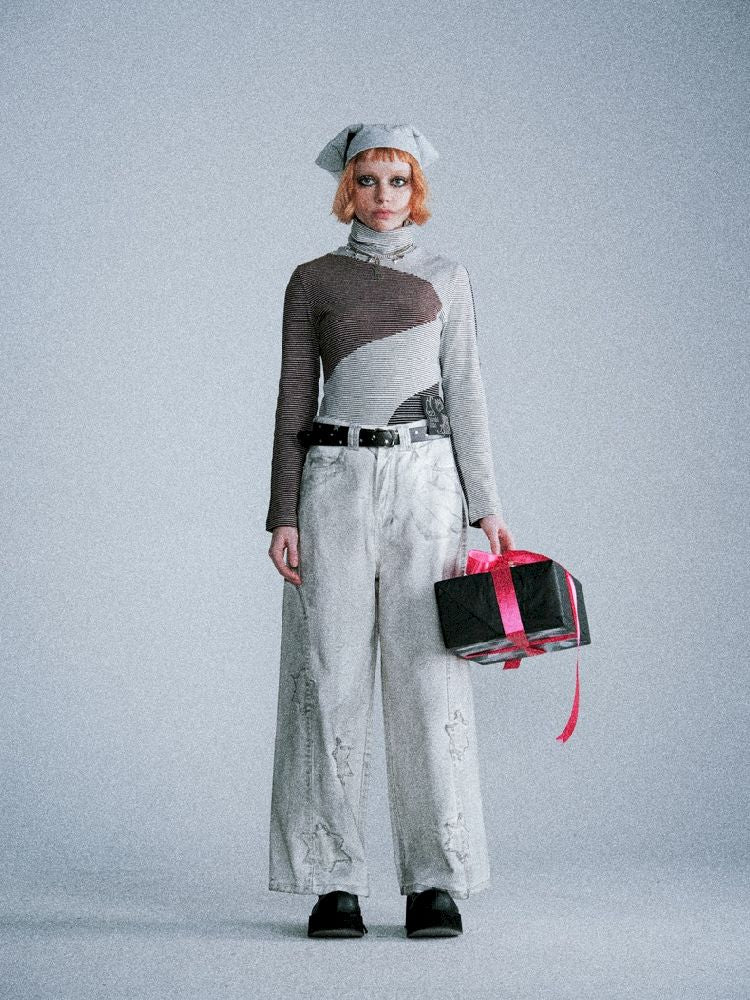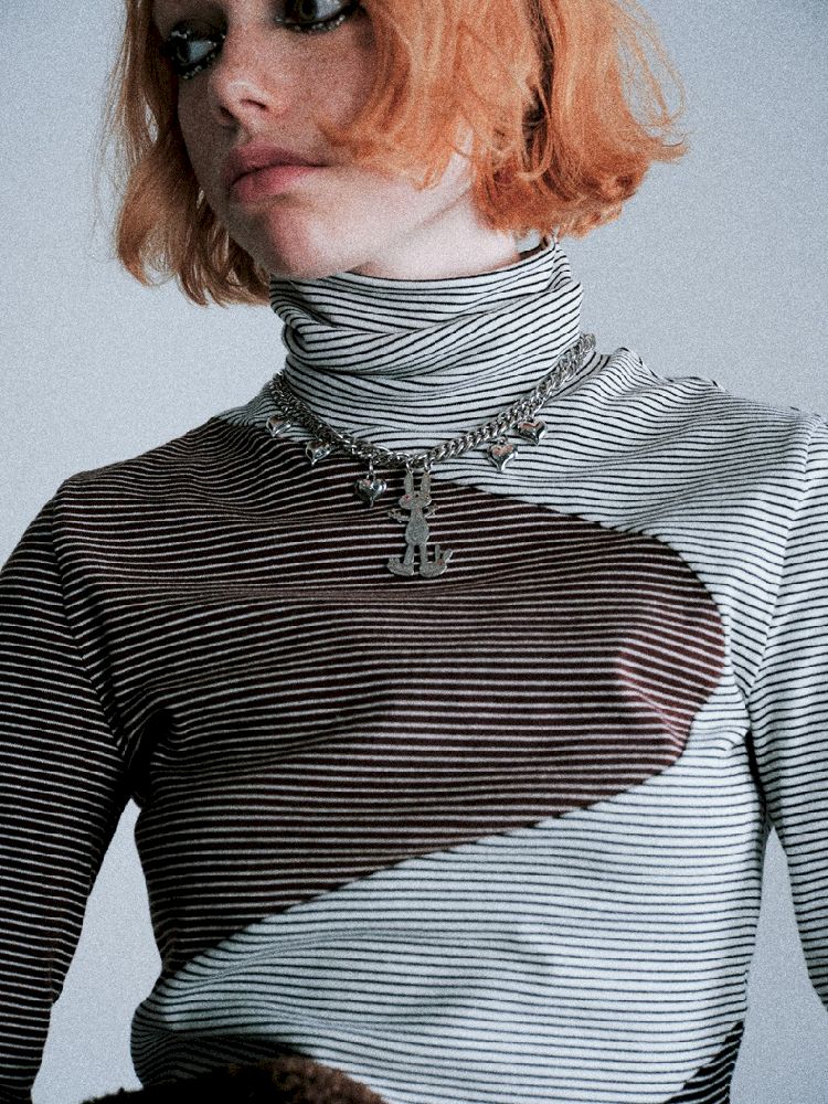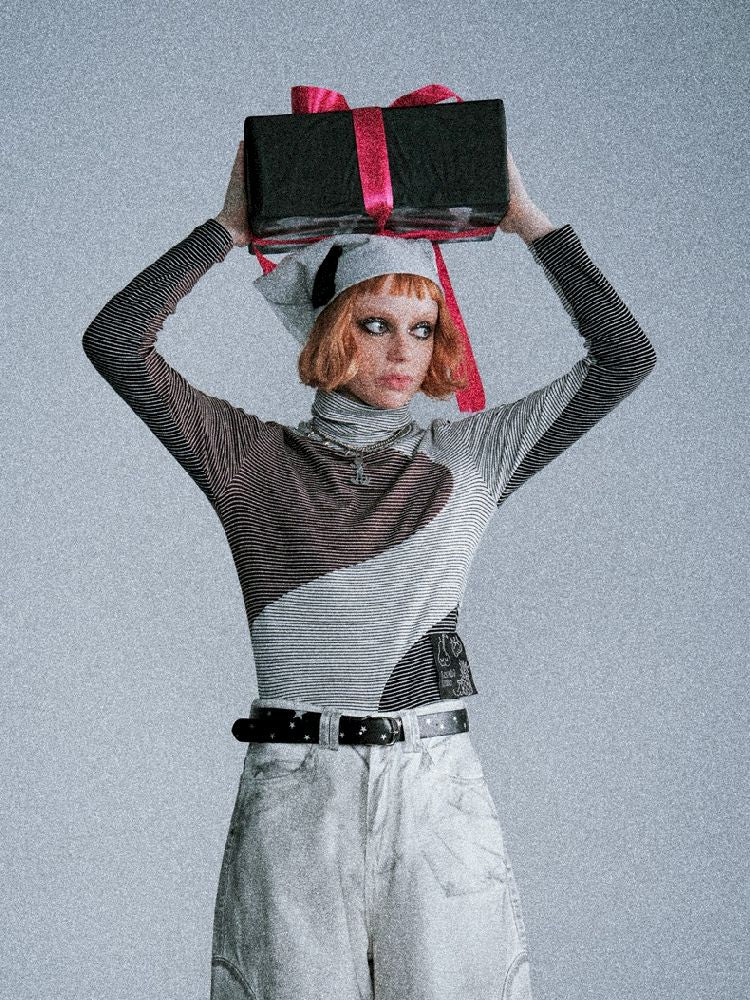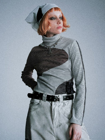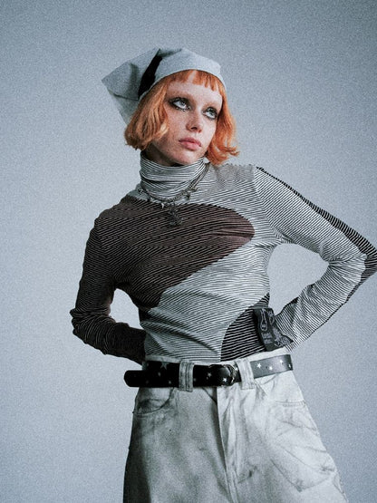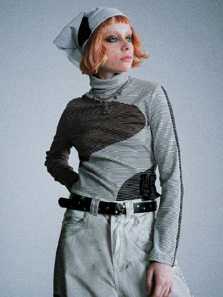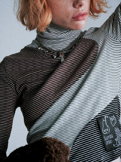 Irregular splicing of retro stripes bottom shirt【s0000005391】