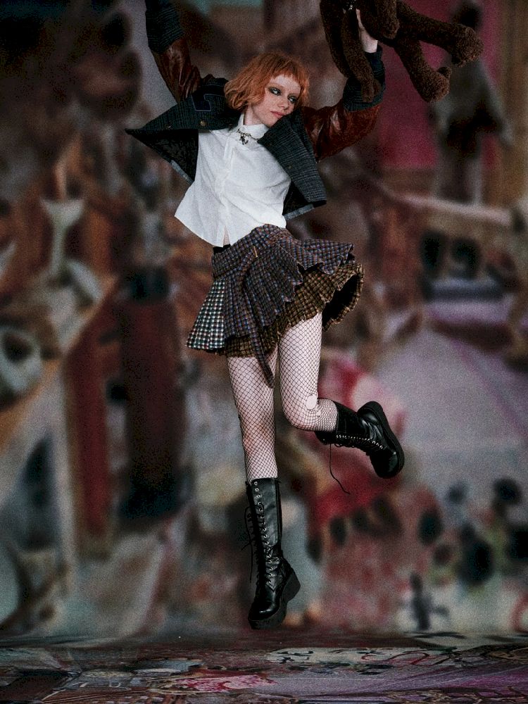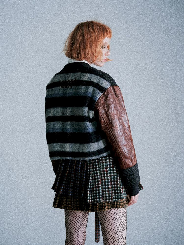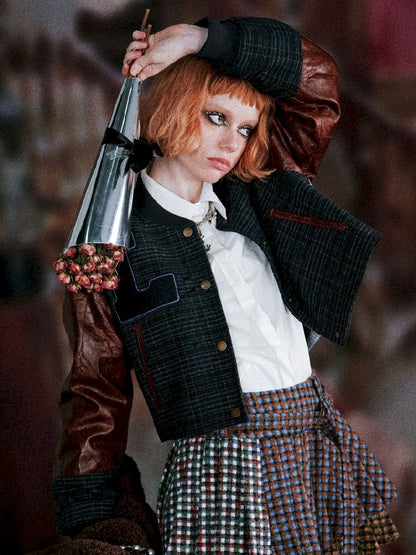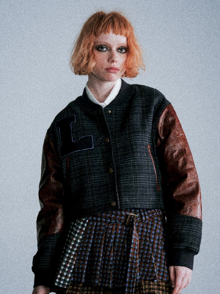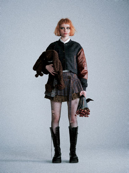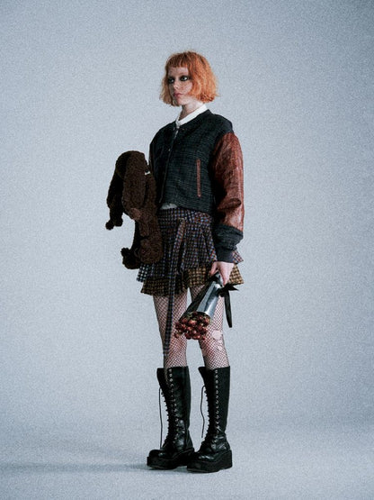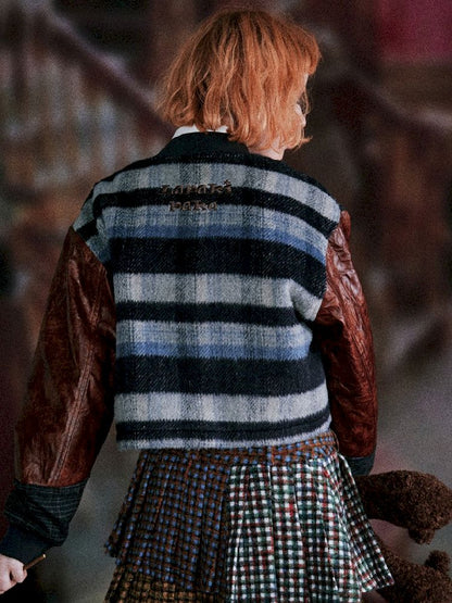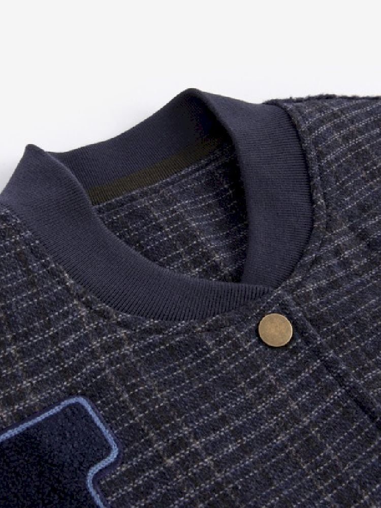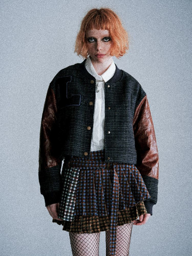 Checkered Patchwork Baseball Jacket【s0000005407】