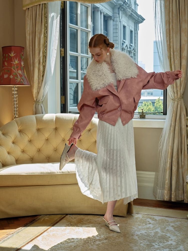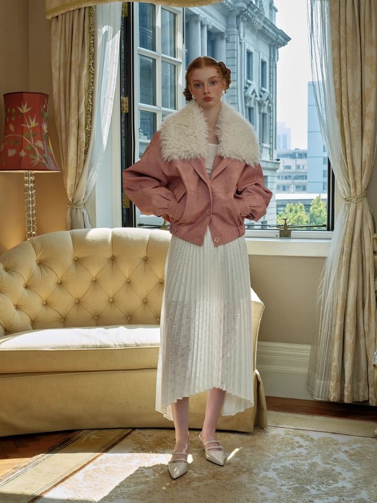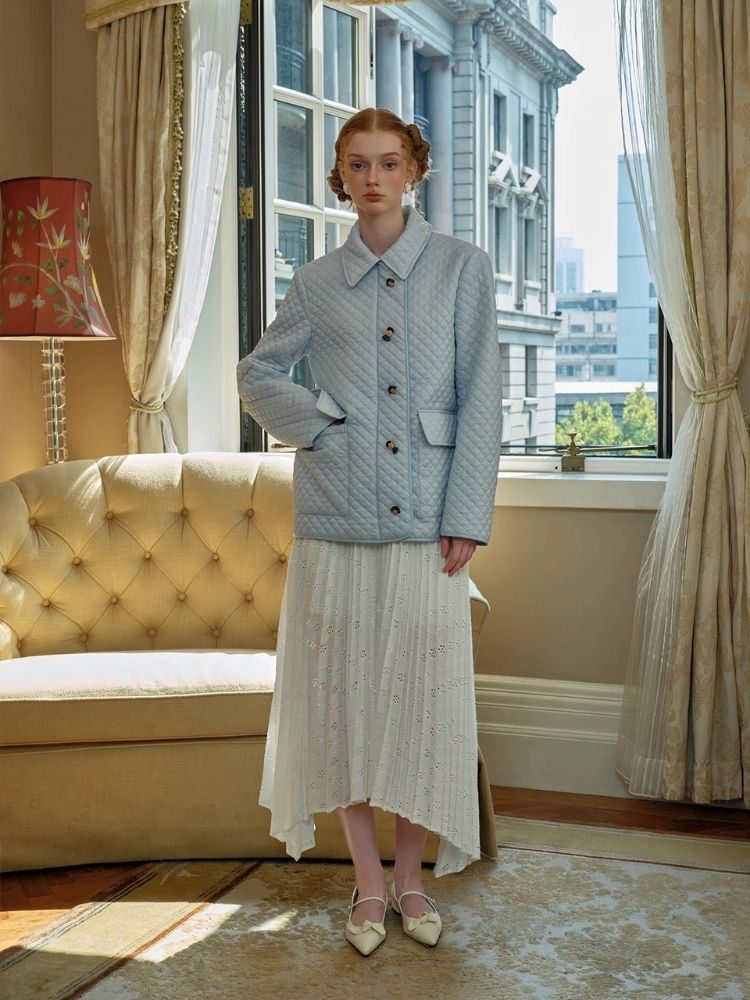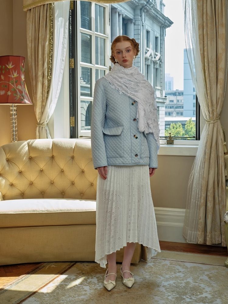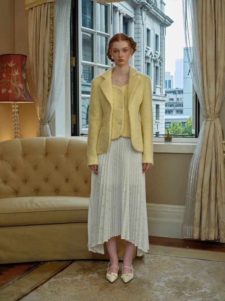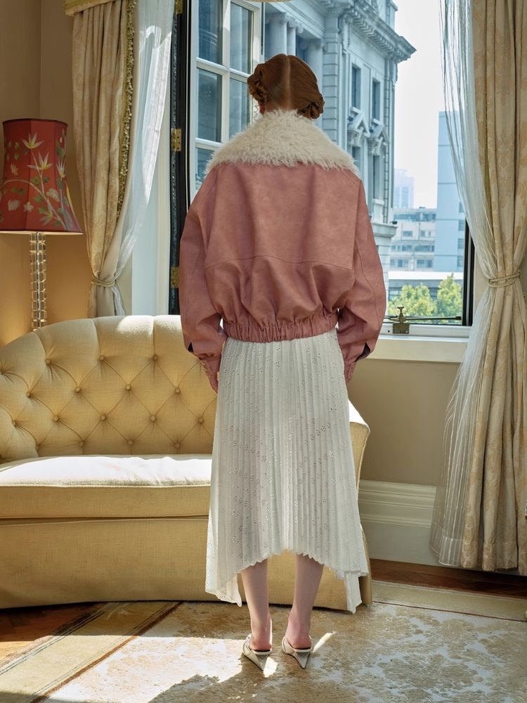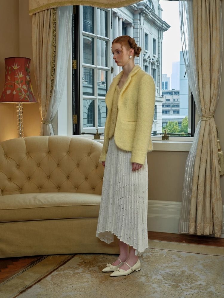 Skeleton Knit Pleated Irregular White Half-body Skirt 【s0000005413】