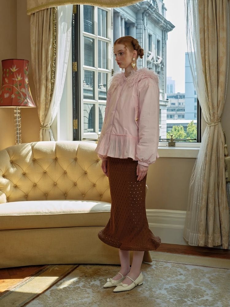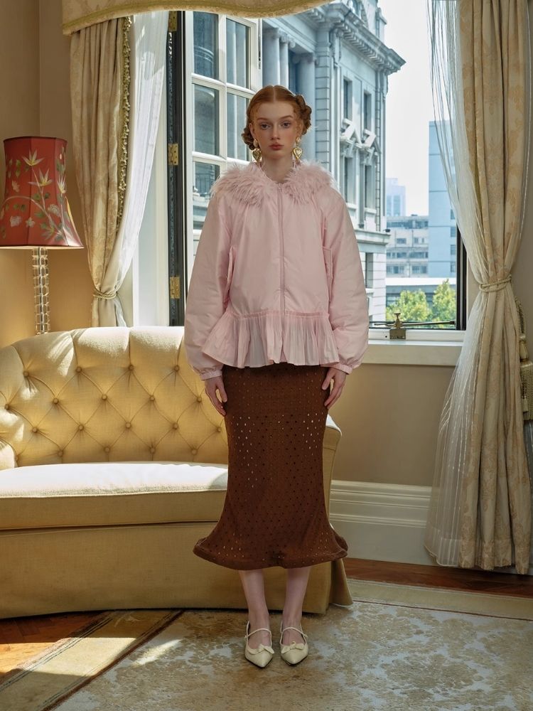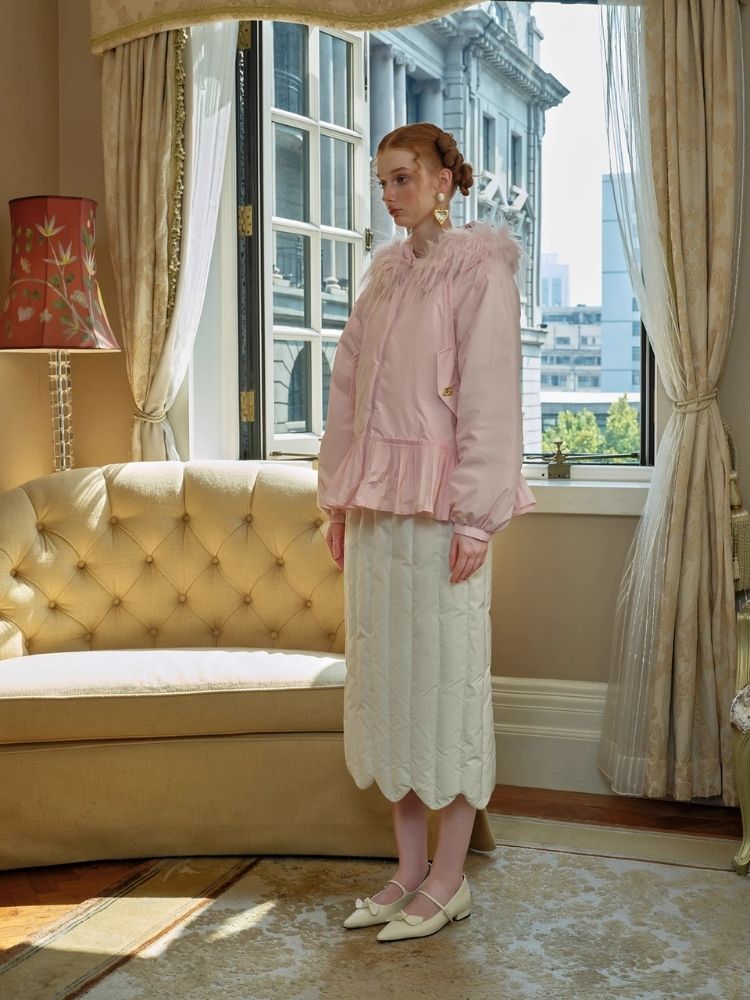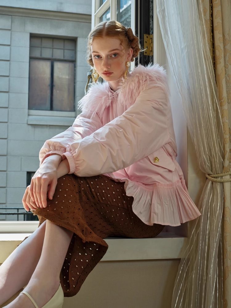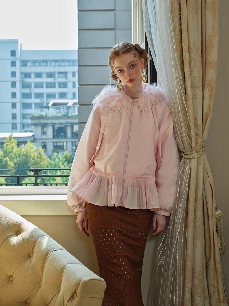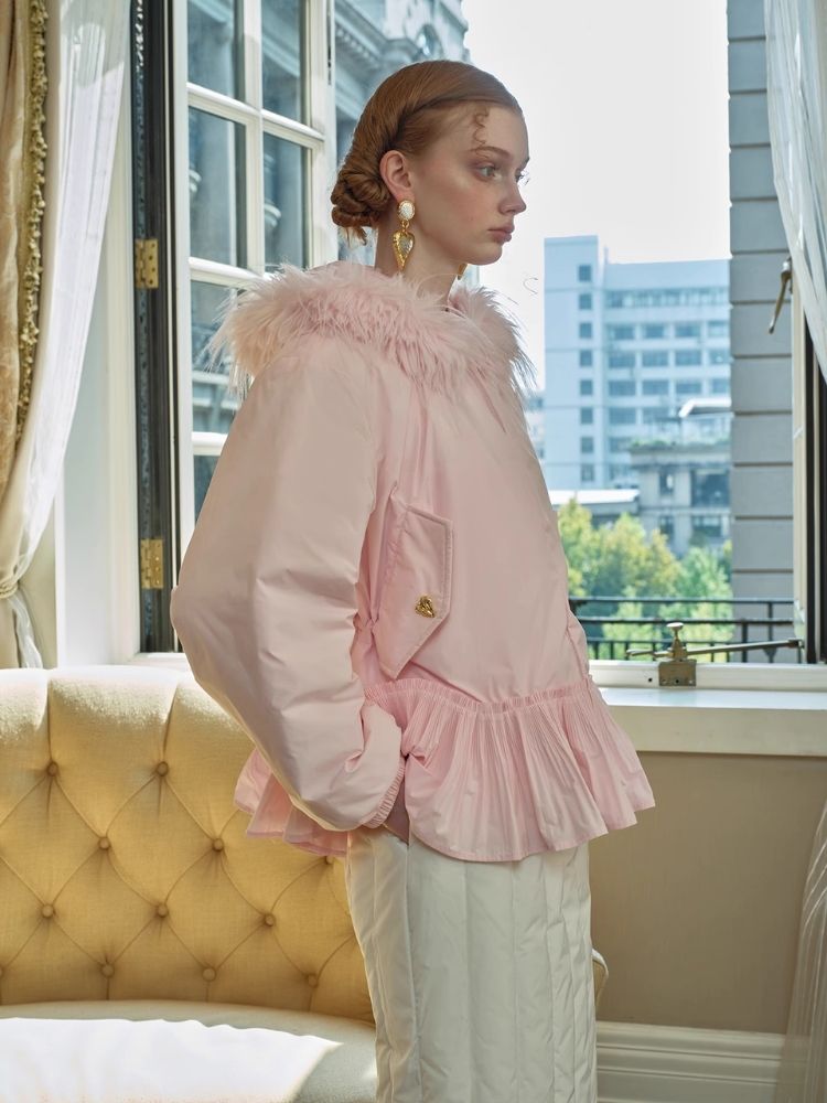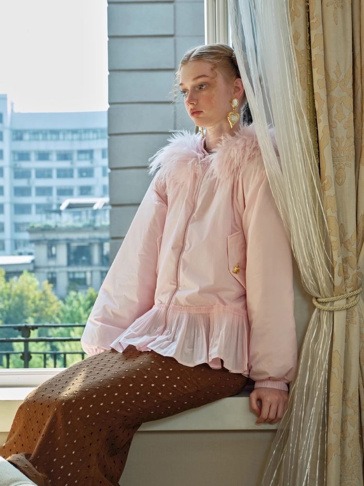 Pink Fur Collar Pressure Pleat Down Jacket【s0000005424】