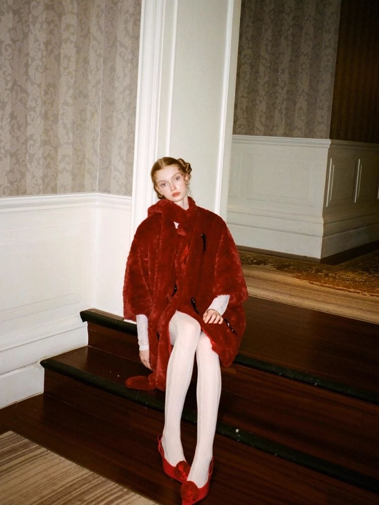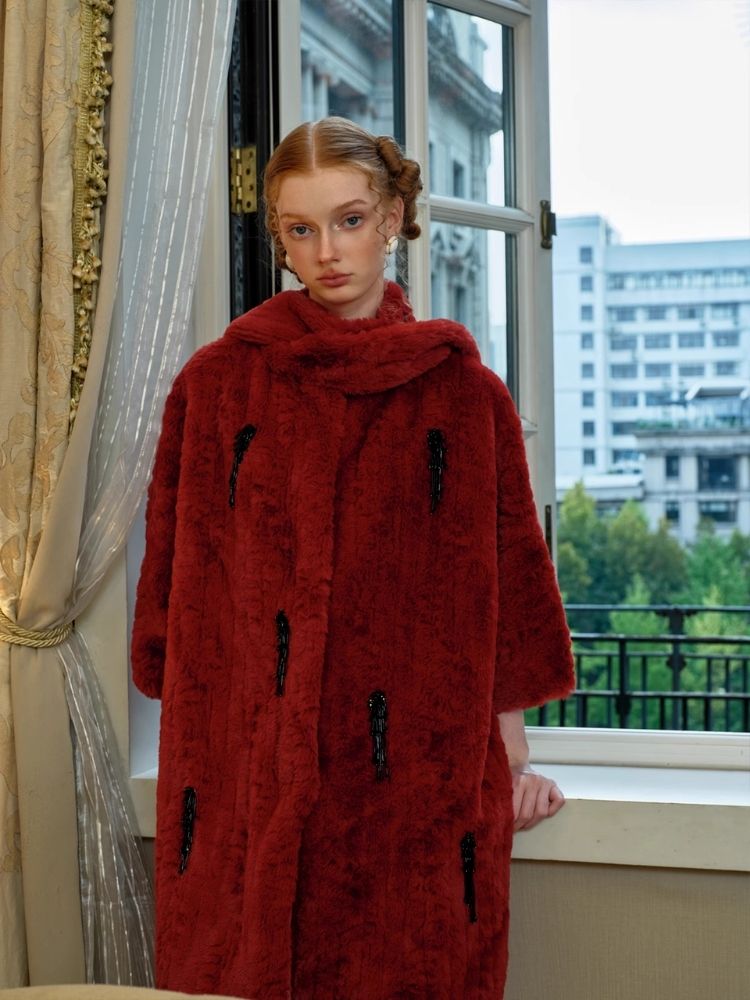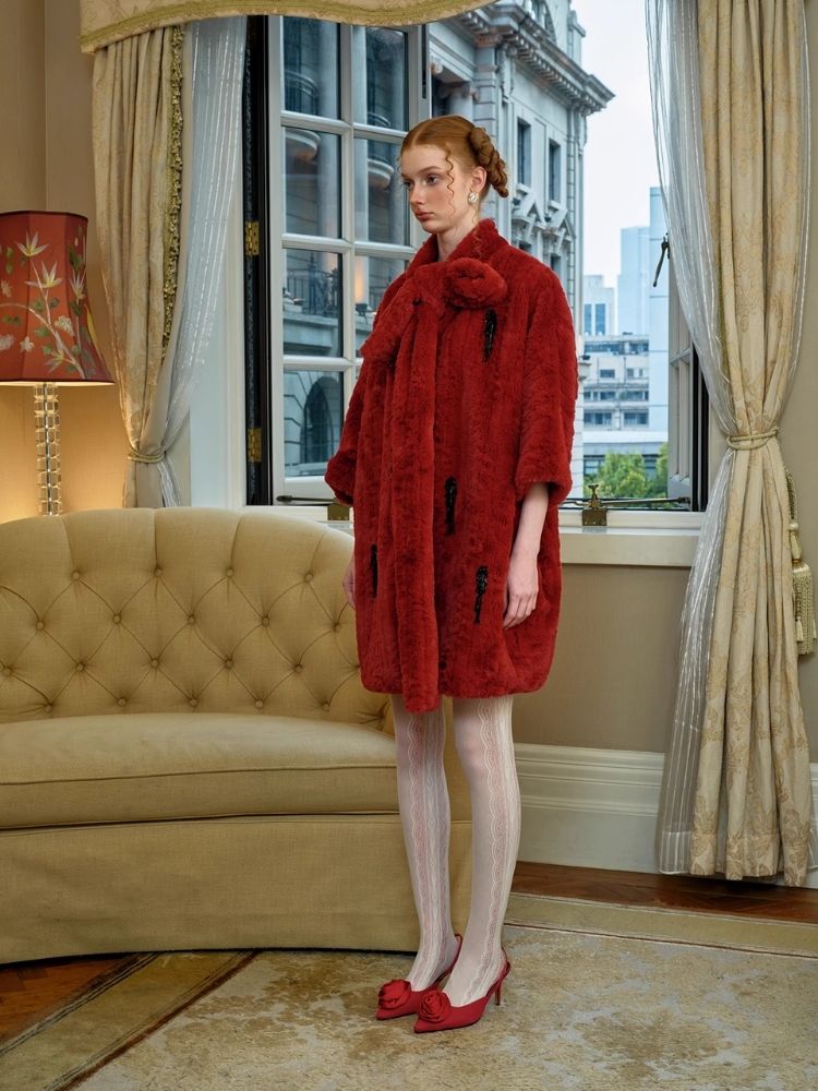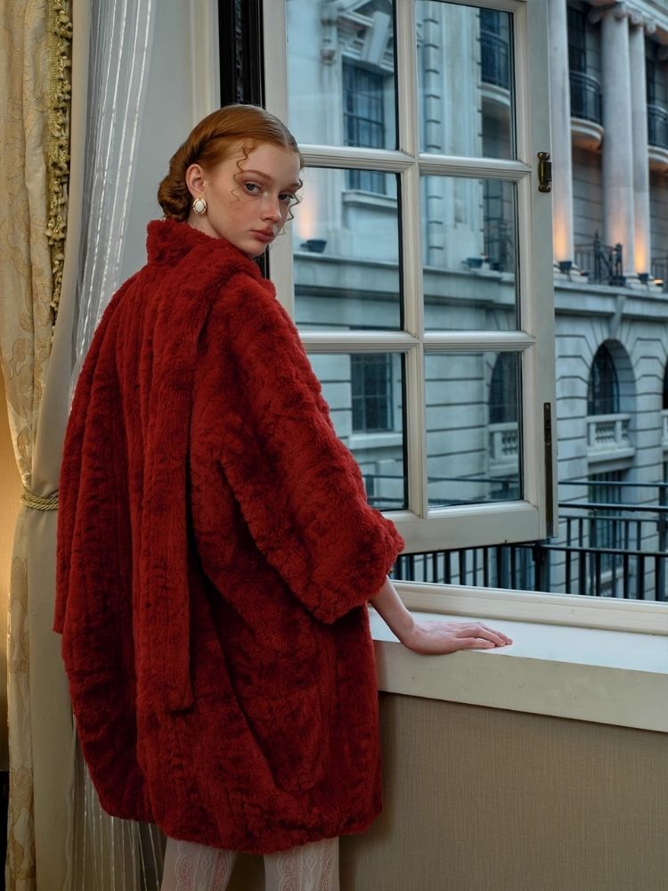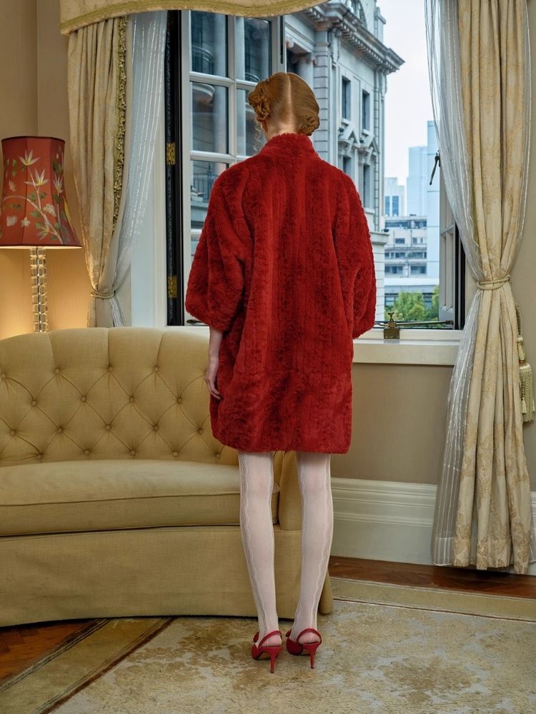 Red Faux Fur Mid-Length Coat【s0000005445】