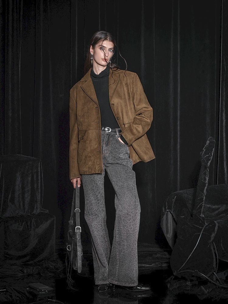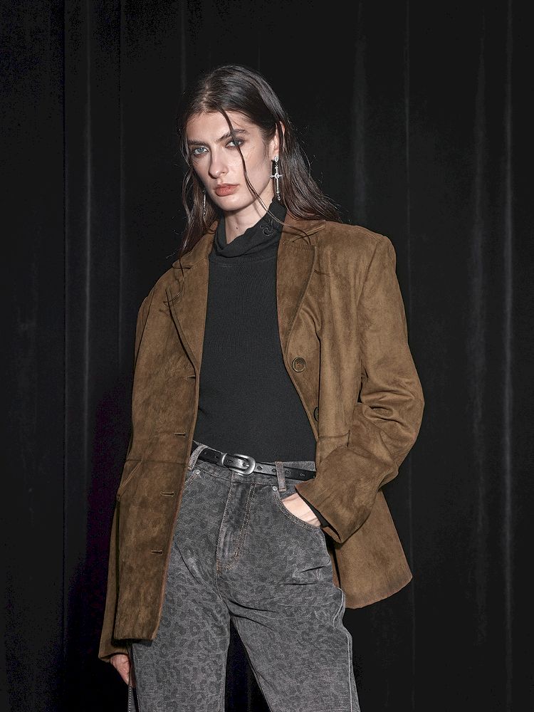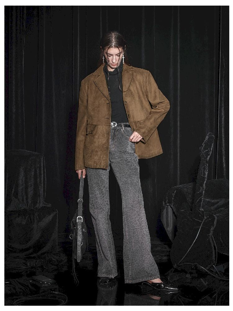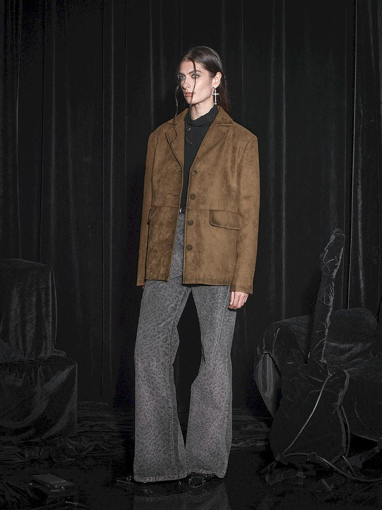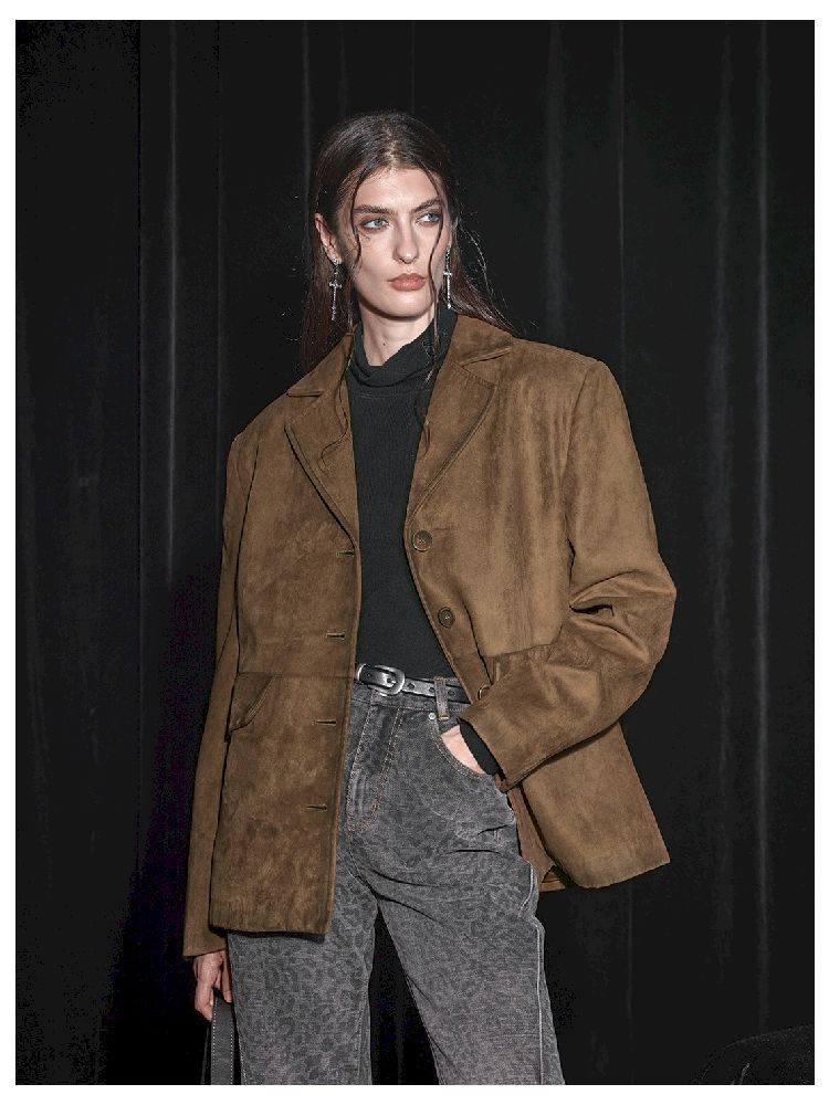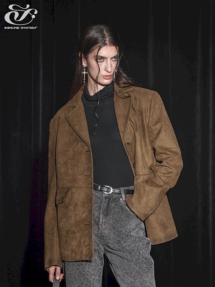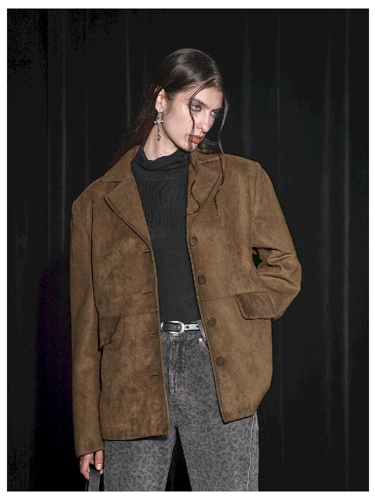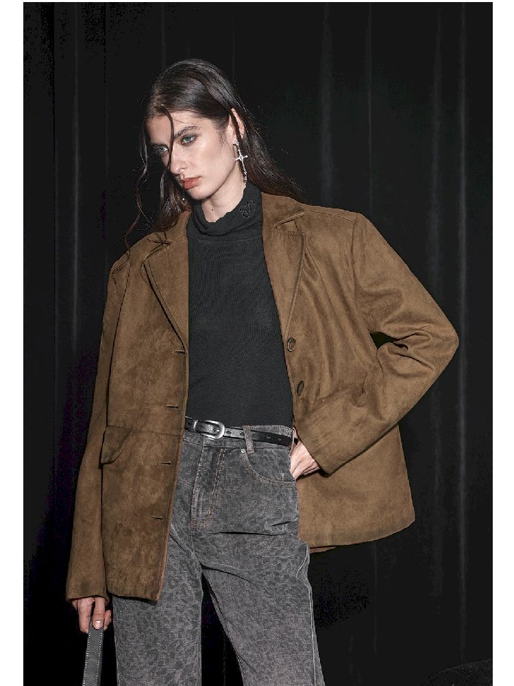 Suede Spray Color Padded Shoulder Melard Blazer【s0000005461】