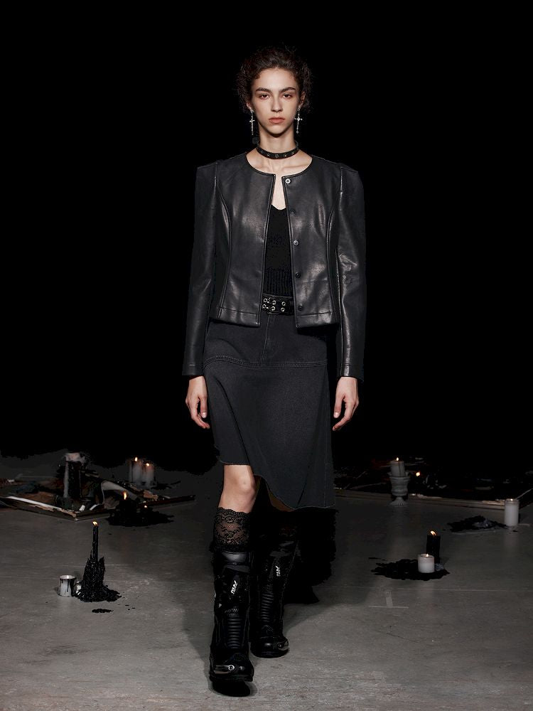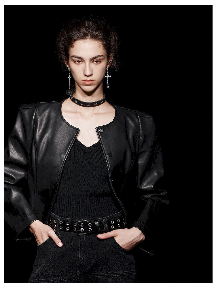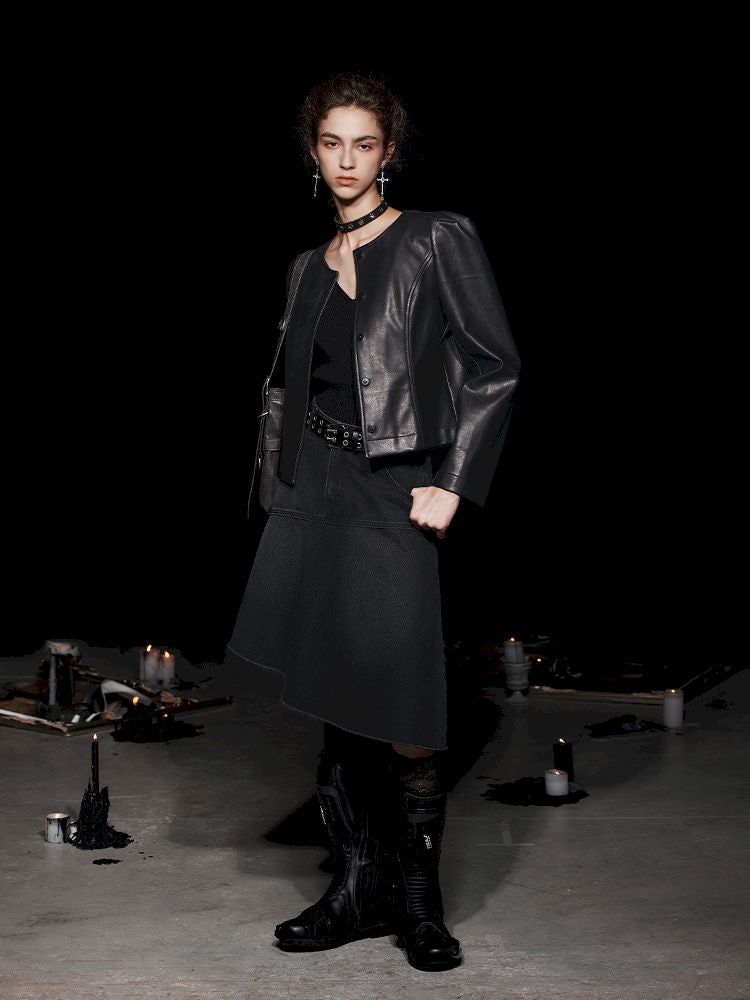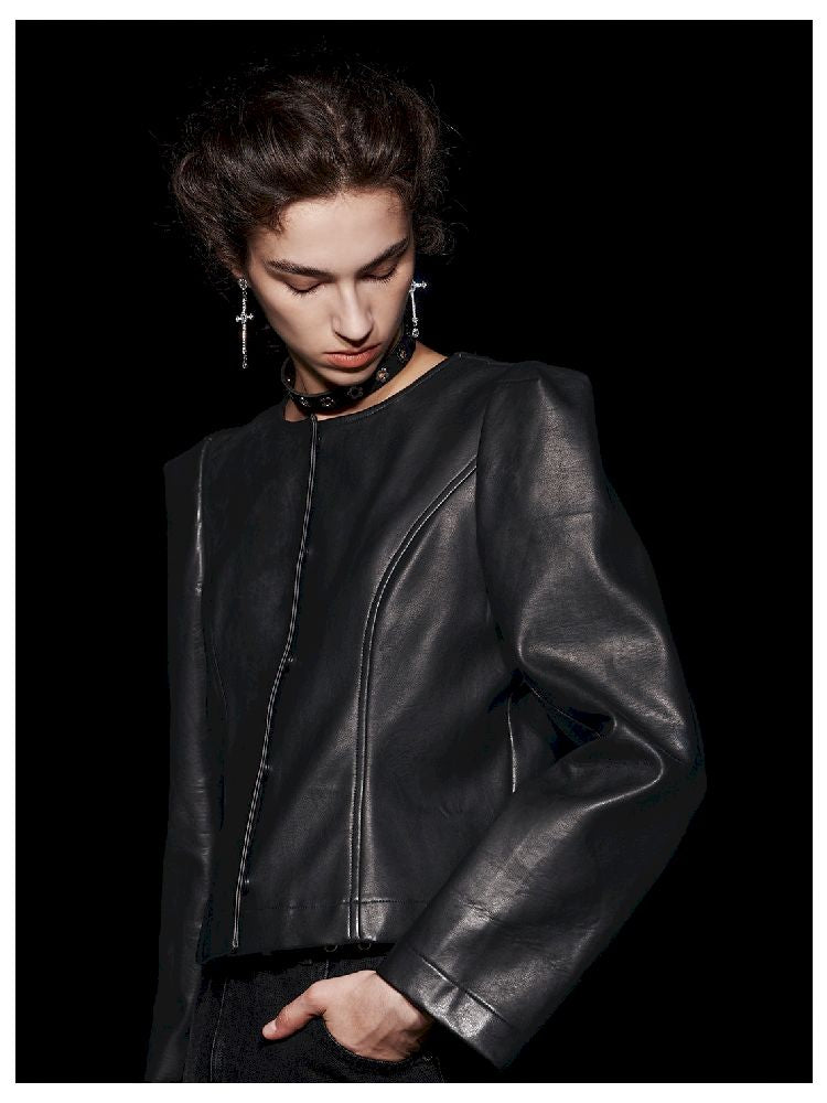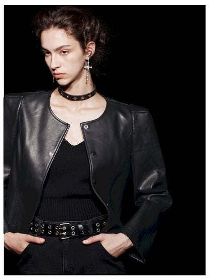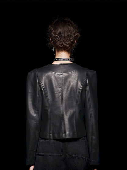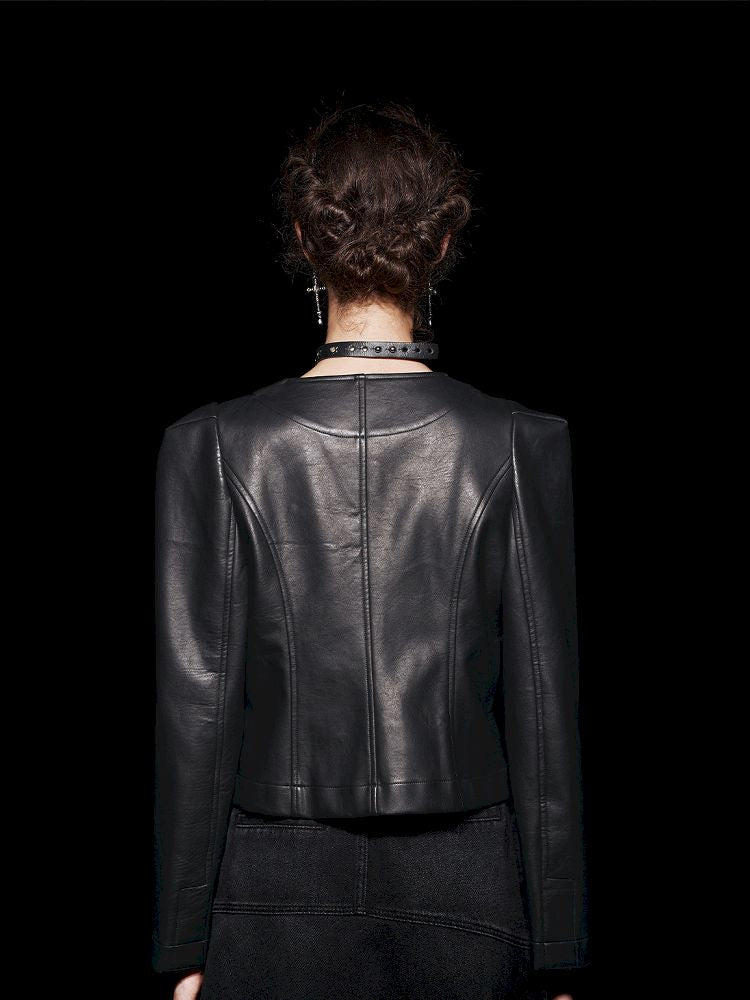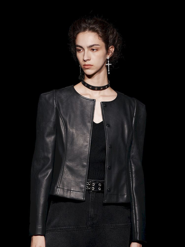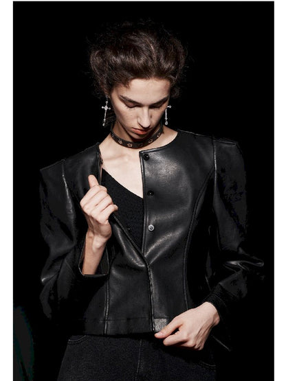 Magnetic snap styling waist slimming leather jacket【s0000005480】