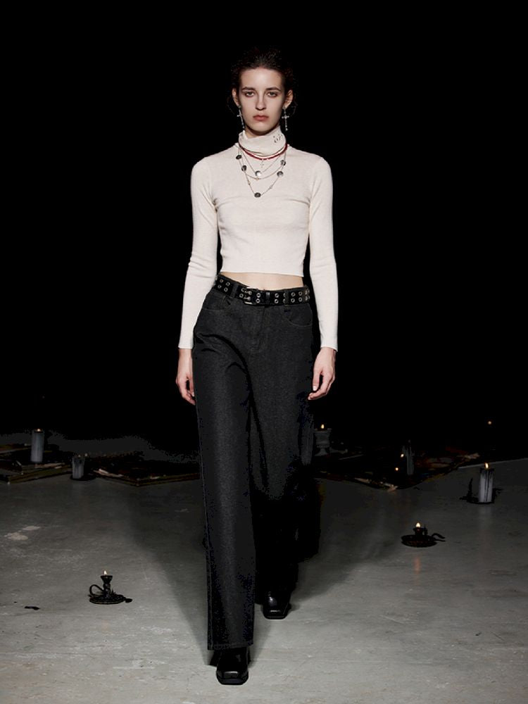 High Neck Skinny Woolen T-Shirt【s0000005498】