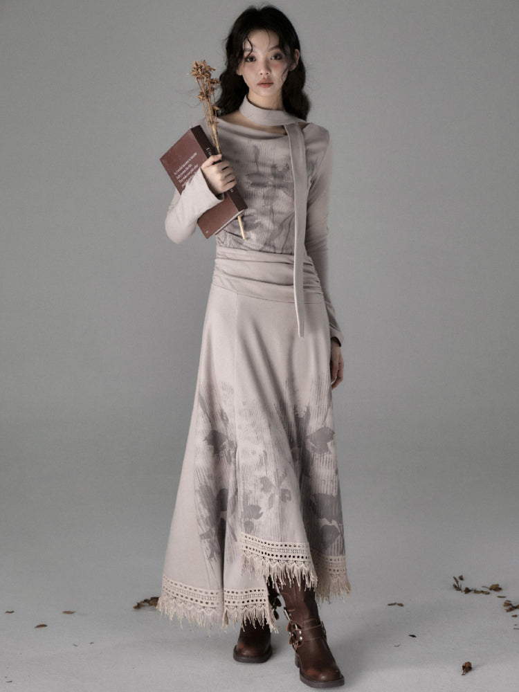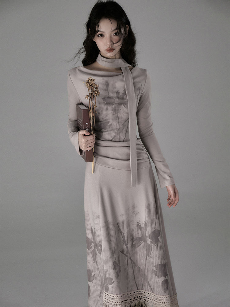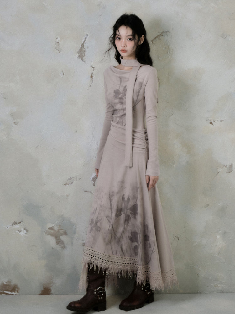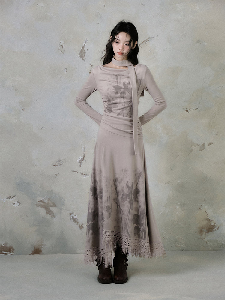 Retro Print Waist Slim Fit Dress【s0000005553】