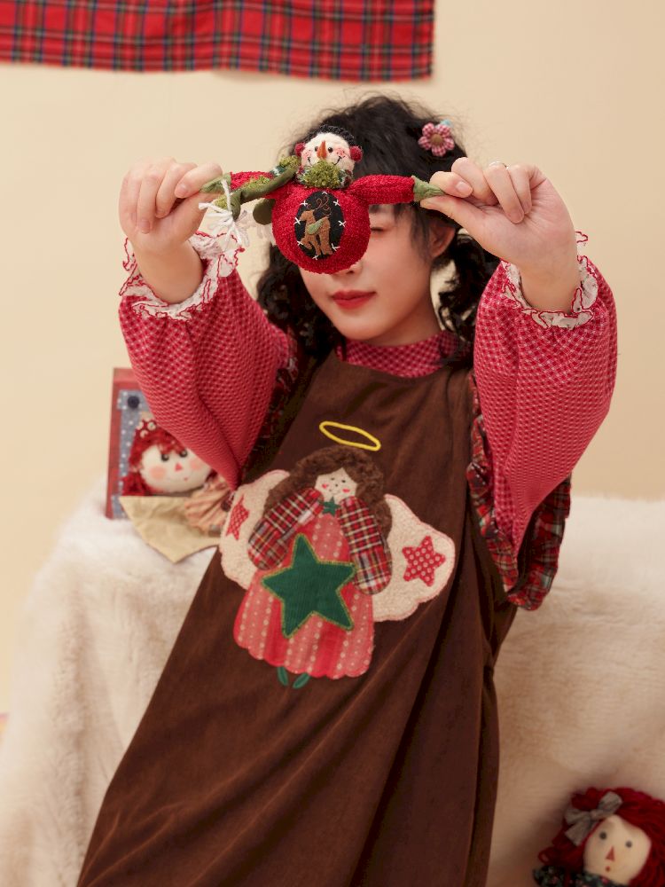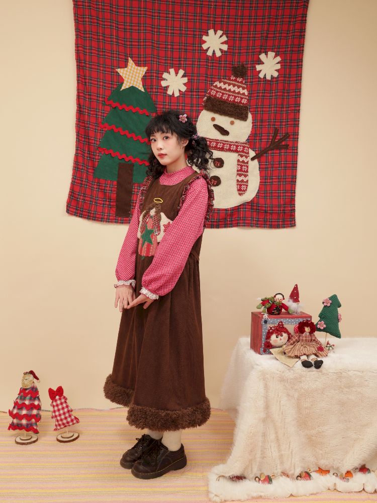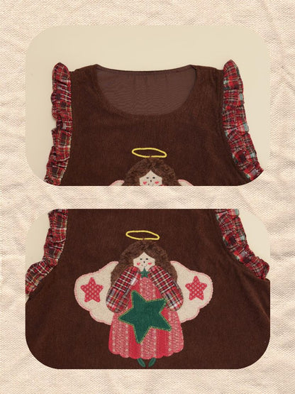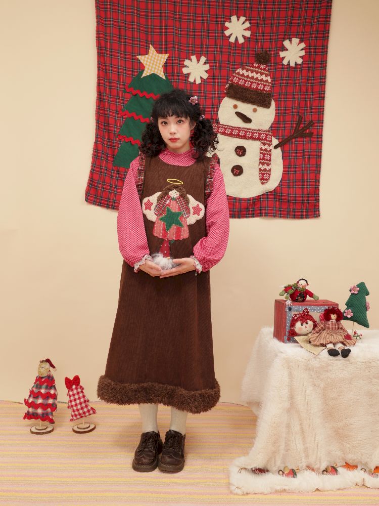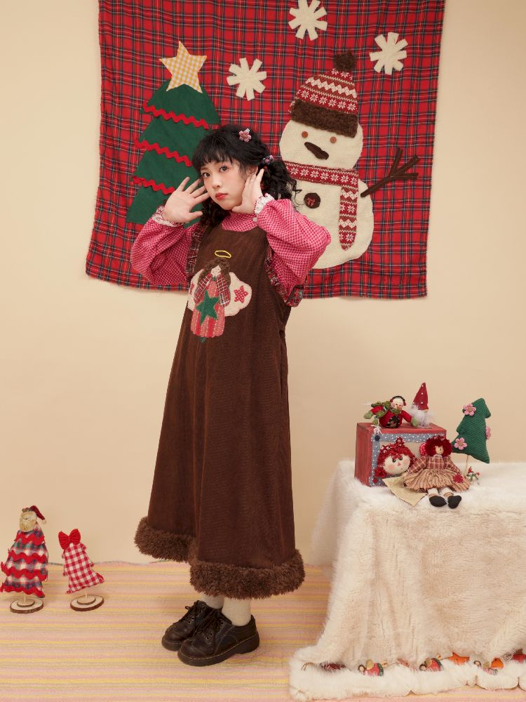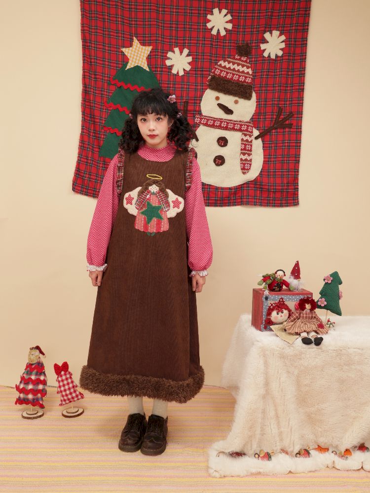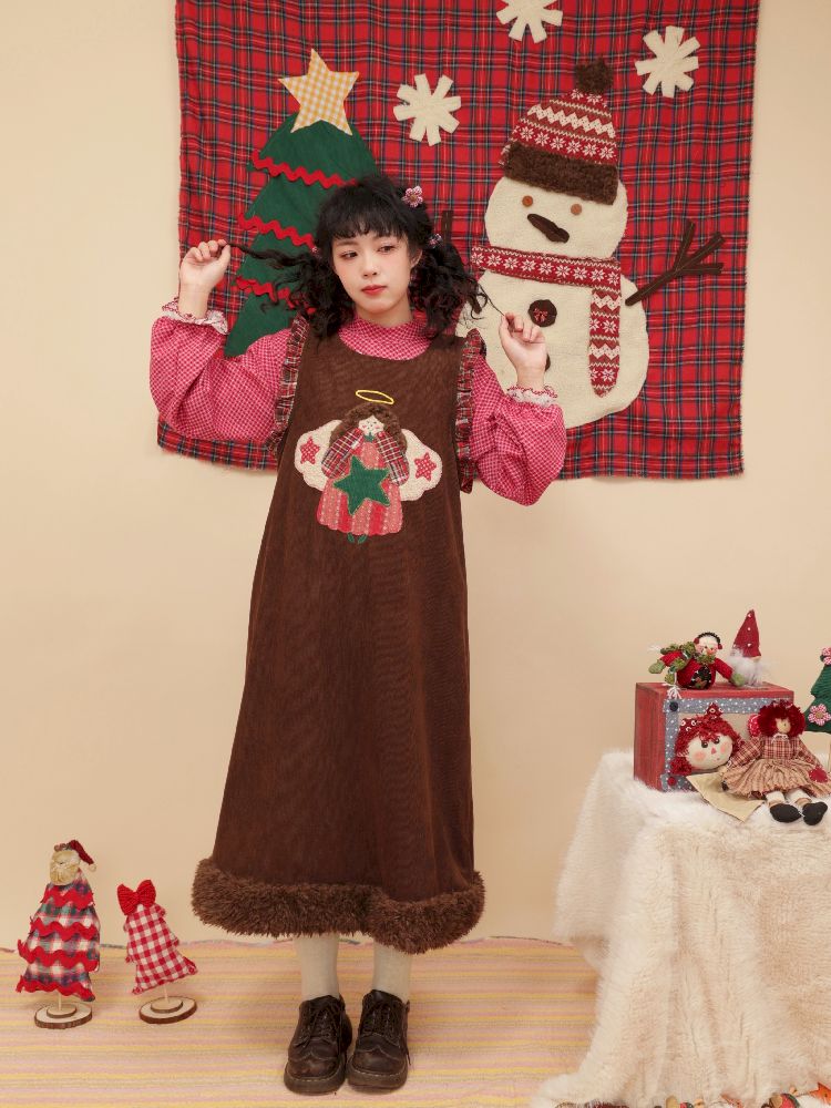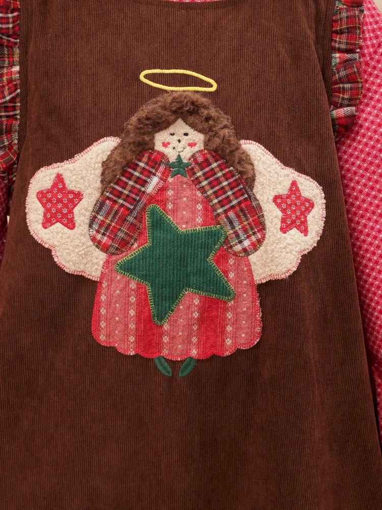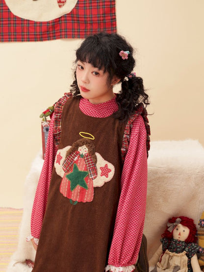 Cherub Color Plaid Appliqué Corduroy Vest Dress【s0000005577】