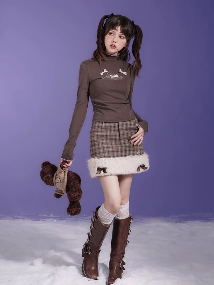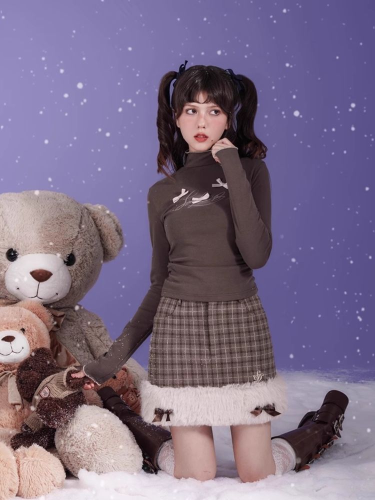 Little Princess Brown Plaid Raw Edge Half-body Skirt【s0000005588】