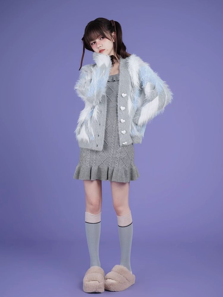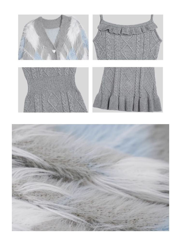 Diamond lattice lazy pure desire romantic dress sweater set【s0000005593】